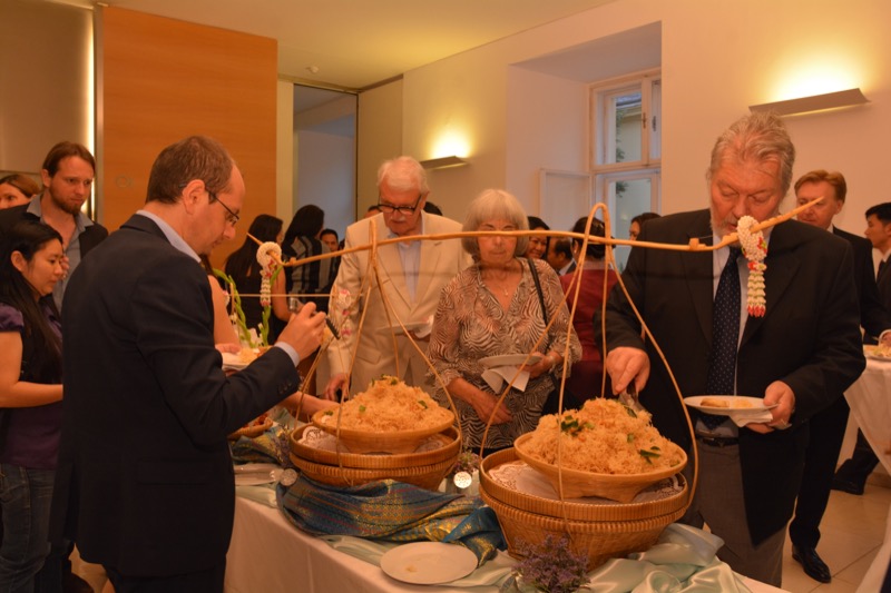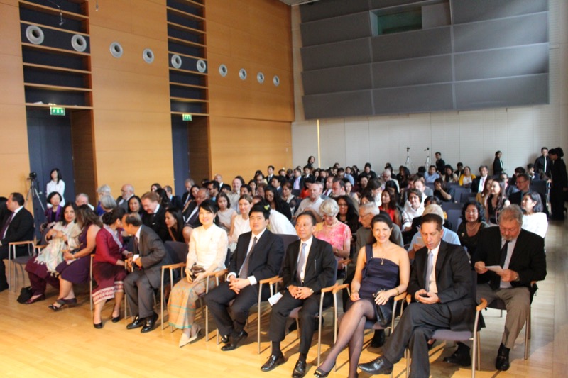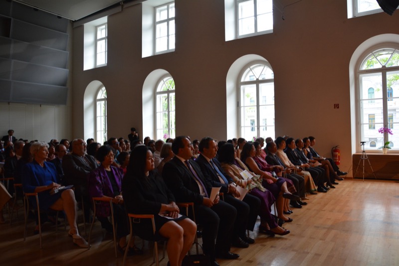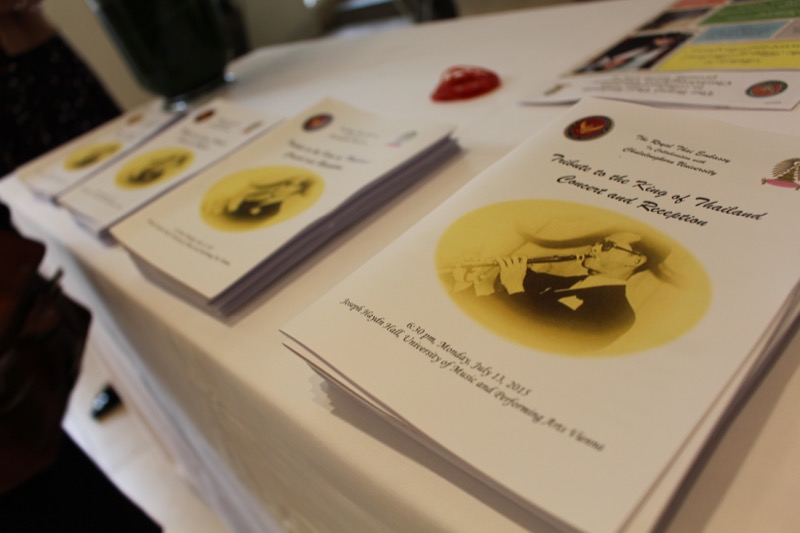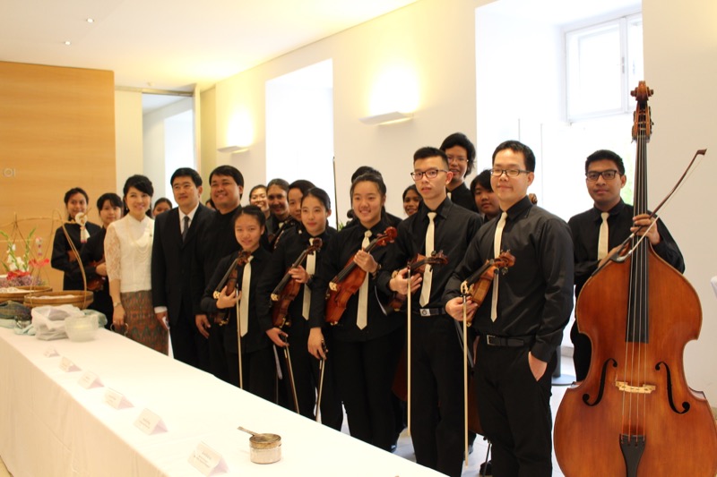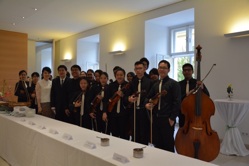 The concert at the Joseph Haydn Hall at the University of Music and Performing Arts of Vienna was performed by Thai students from Chulalongkorn University Clarinet Ensemble and the Sunrise String Orchestra of Thailand to commemorate His Majesty King Bhumibol Adulyadej’s great musical talent, which was recognized by the world-renowned Institute of Music and Arts of Vienna, or the University of Music and Performing Arts of Vienna as it is known today, and conferred His Majesty the King of Thailand on October 5, 1964, with the Institute’s 23rd Honorary Membership, the first Asian composer to receive such an honour.
