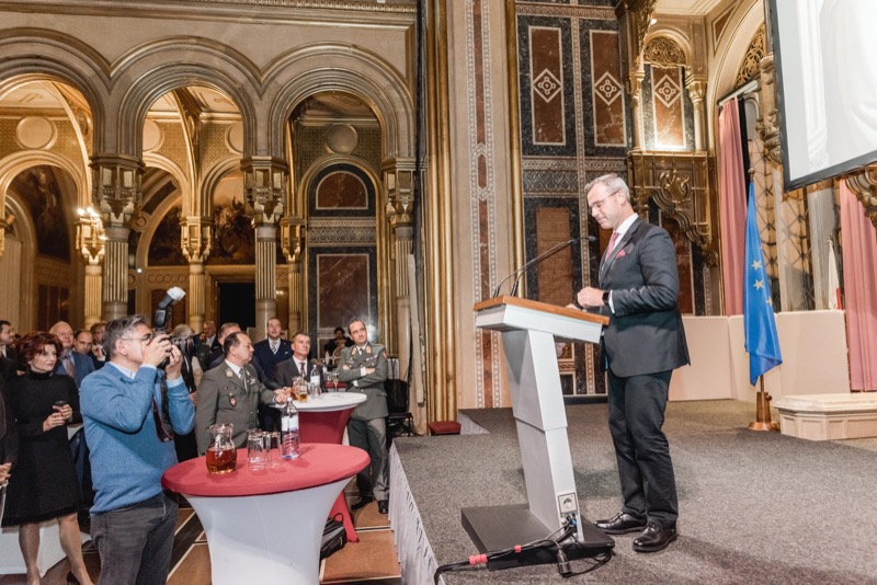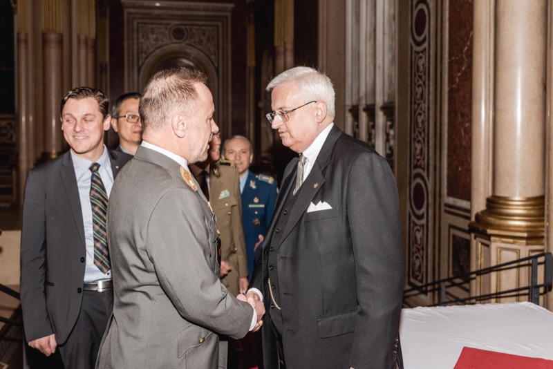 Der Obmann des Landesverteidigungsausschusses, NAbg. Reinhard Eugen Bösch, lud anlässlich des Geburtstages von Cav. Marco Mercuri zu einem Empfang für Diplomaten und Militärs in die Ruhmeshalle des Heeresgeschichtlichen Museums.