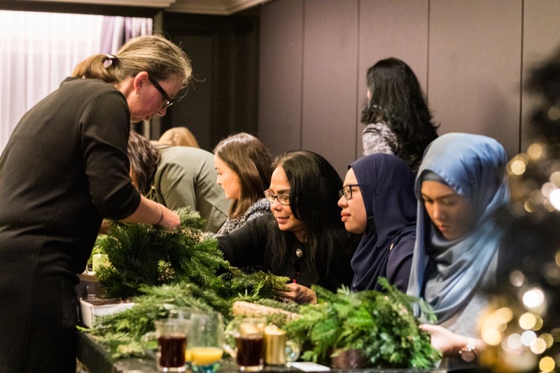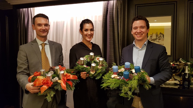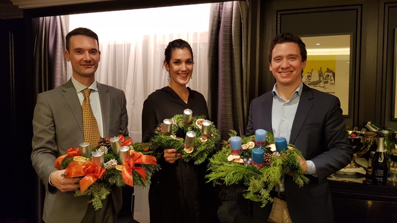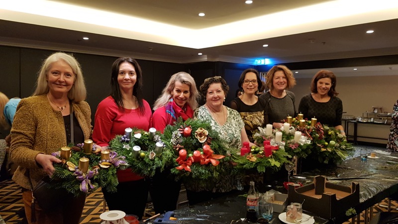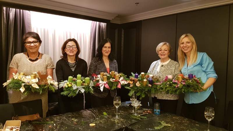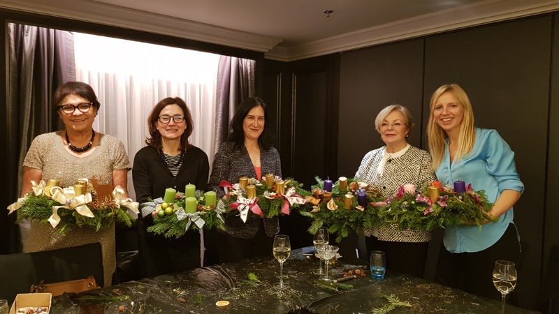 CERCLE DIPLOMATIQUE lud gemeinsam mit dem Hilton Vienna Plaza die persönlichen AssistentInnen der Botschaften zu einem vorweihnachtlichen Event. Neben "Welcome Punsch" & "Christmas Dinner" konnten die Gäste in Zusammenarbeit mit BLUMEN KALCH ihre eigenen Adventkränze binden und rechtzeitig vor dem 1. Advent mit nach Hause nehmen.