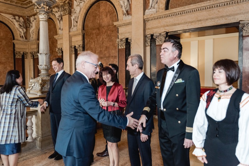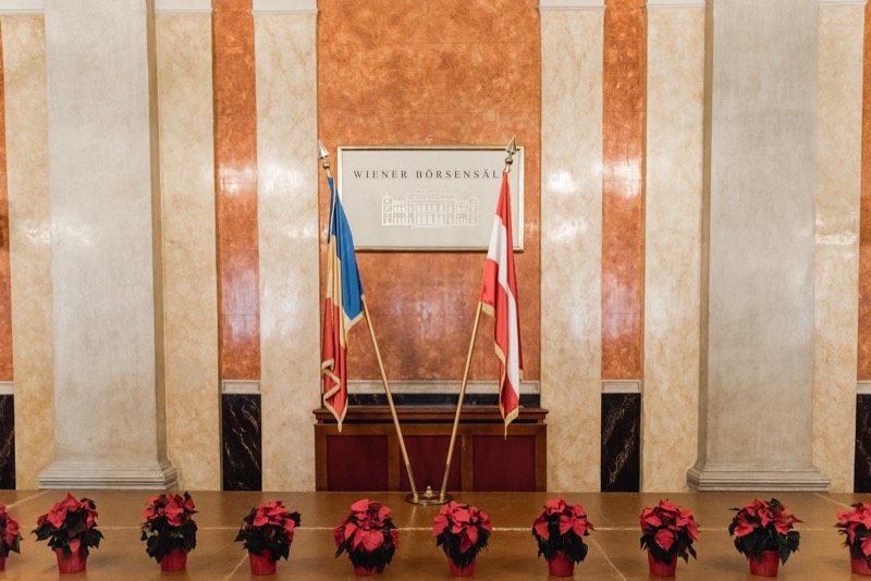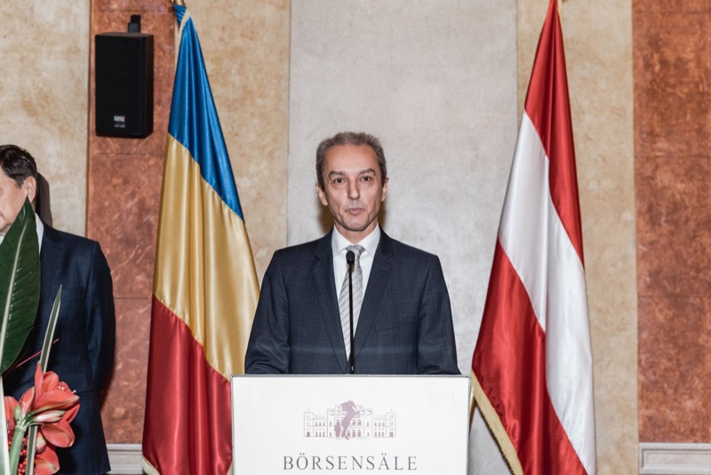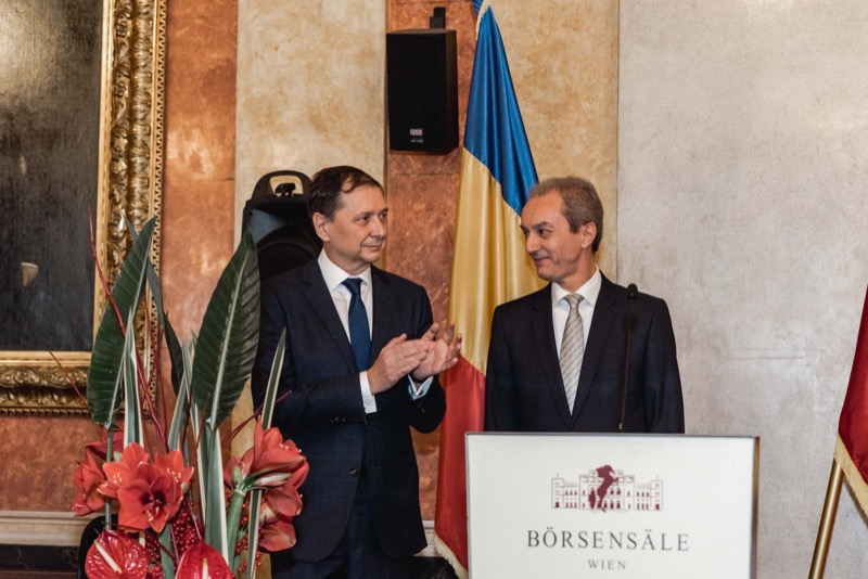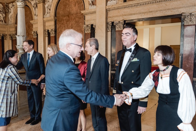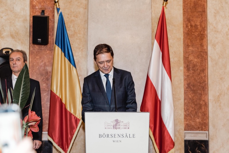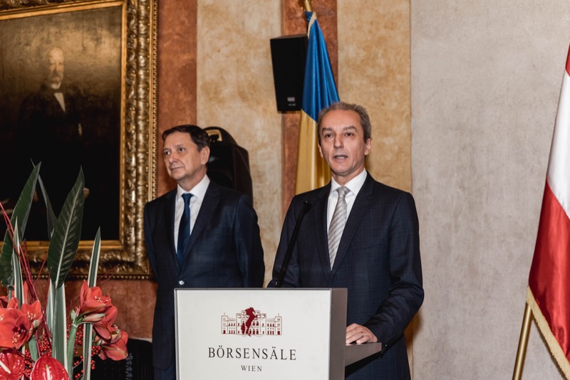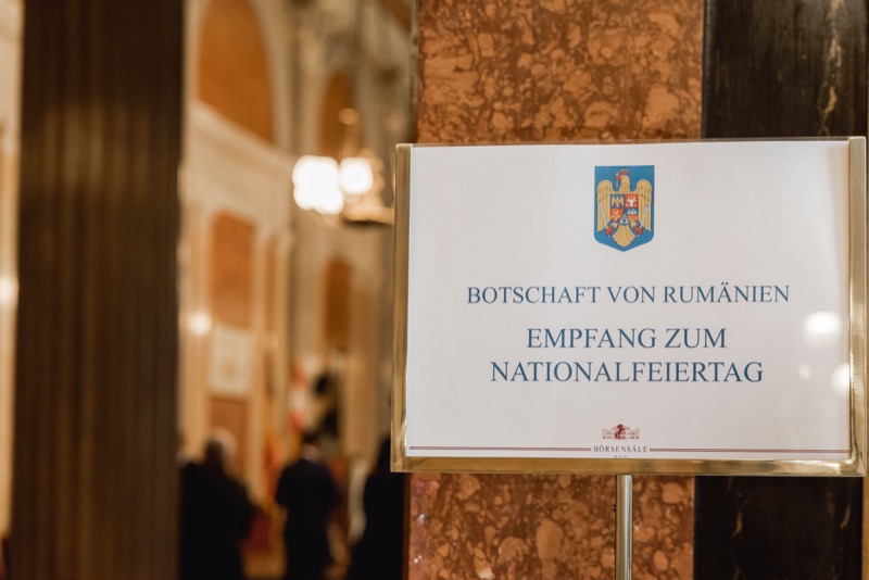 Anlässlich des Nationalfeiertags luden S.E Bogdan Mazuru, Botschafter von Rumänien in der Republik Österreich, und Frau Emilia Mazuru sowie der ständige Vertreter von Rumänien bei der OSZE und den Vereinten Nationen Botschafter Cristian Istrate und Frau Gabriela Carmen Istrate zu einem Empfang in die Wiener Börsensäle.