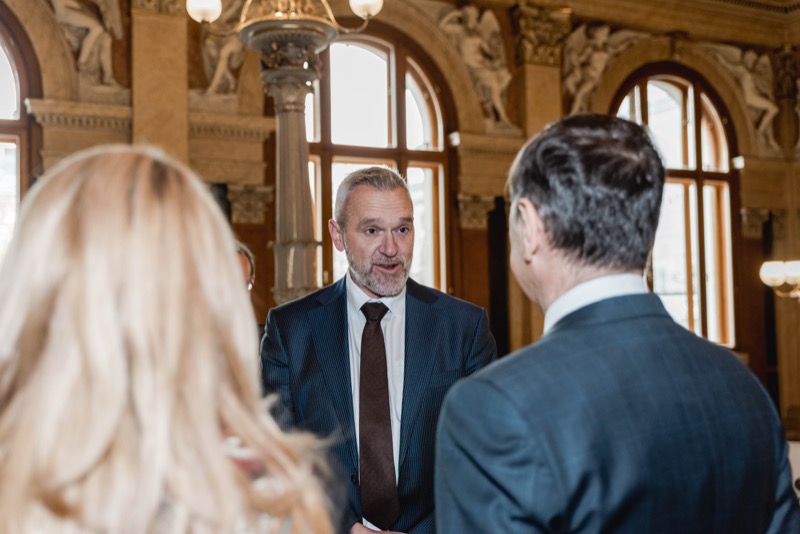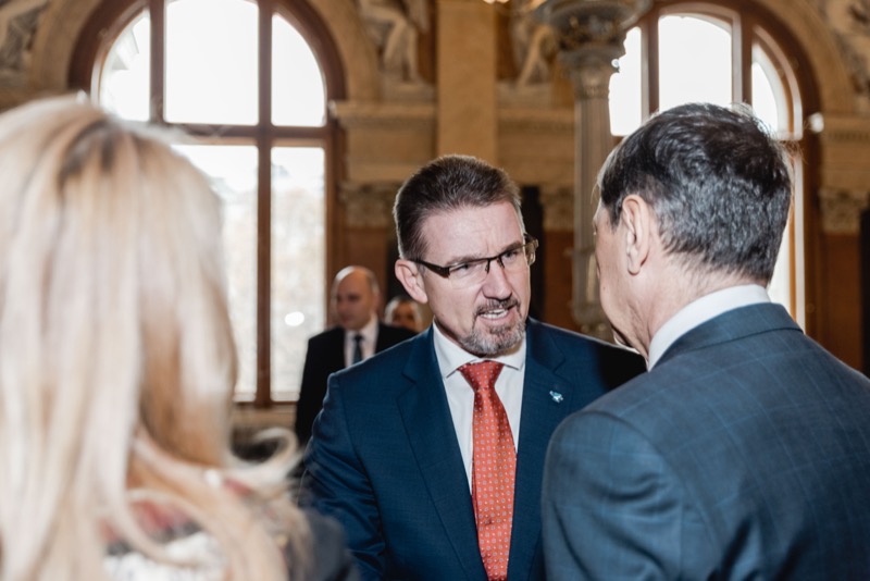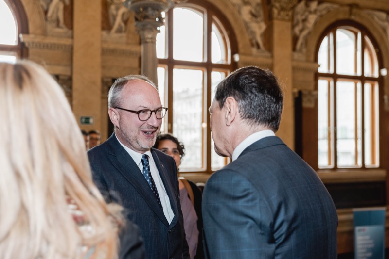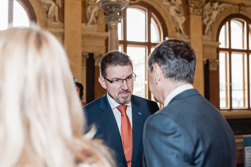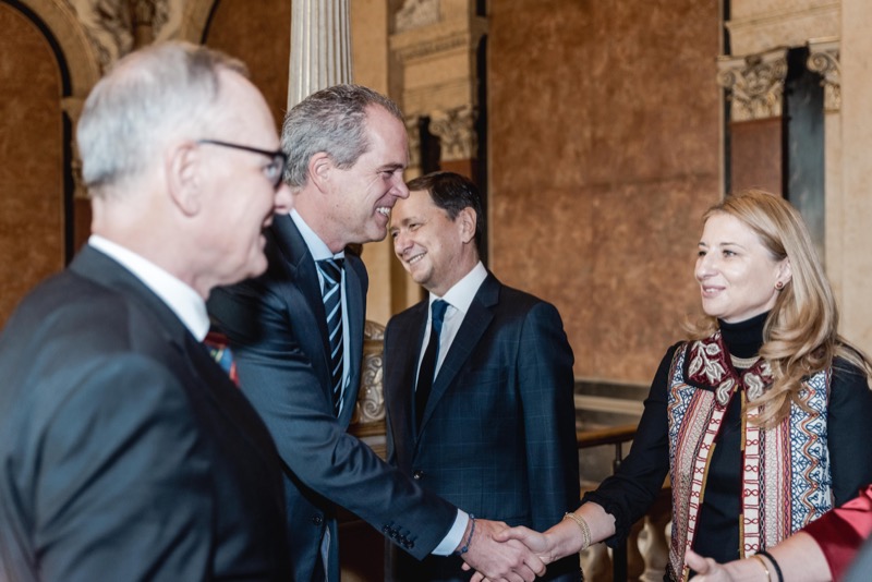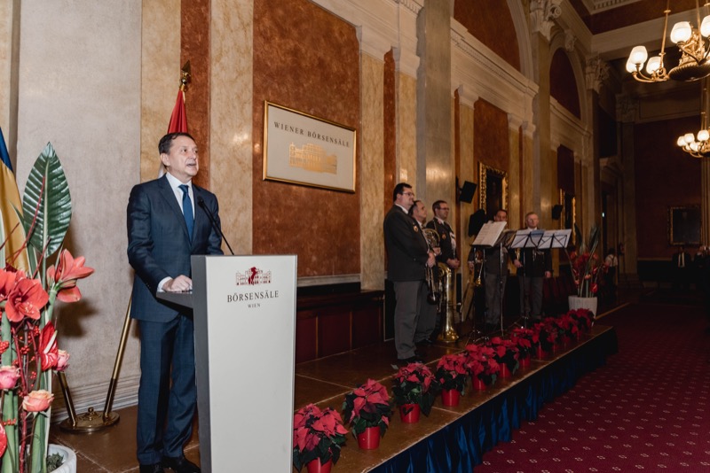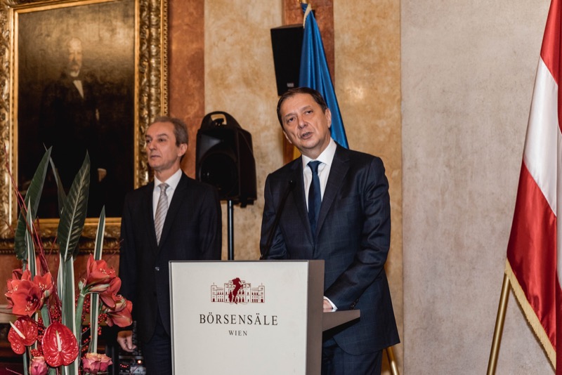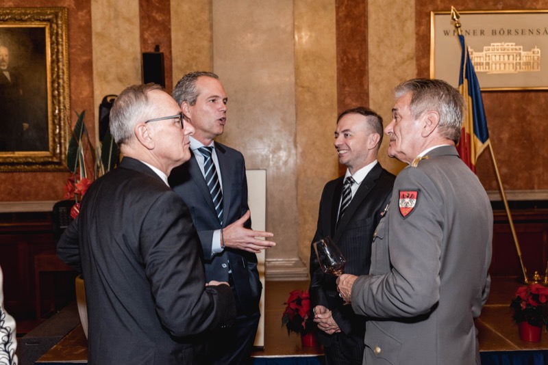 Anlässlich des Nationalfeiertags luden S.E Bogdan Mazuru, Botschafter von Rumänien in der Republik Österreich, und Frau Emilia Mazuru sowie der ständige Vertreter von Rumänien bei der OSZE und den Vereinten Nationen Botschafter Cristian Istrate und Frau Gabriela Carmen Istrate zu einem Empfang in die Wiener Börsensäle.