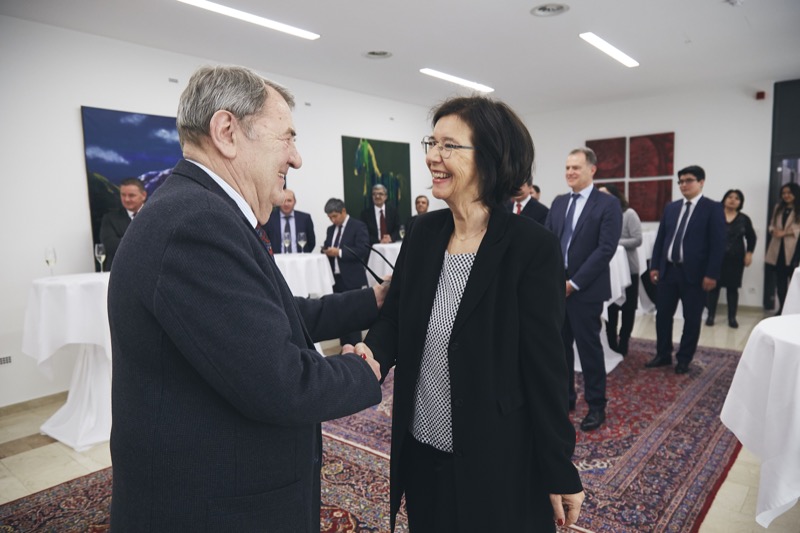 Der Botschafter der Republik Kasachstan und ständige Vertreter beiden Internationalen Organisationen, S.E. Kairat Sarybay, lud anlässlich der Überreichung des "Dostyk-Ordens" an die ehemalige Präsidentin der Parlamentarischen Versammlung der OSZE, Frau Christina Muttonen, zu einem Empfang in die Botschaft. Zur Eröffnung der Zeremonie betonte Botschafter Kairat Sarybay, dass der Orden „Dostyk“ an ausländische Bürger verliehen wird, die einen bedeutenden Beitrag zur Stärkung der Freundschaft und Zusammenarbeit zwischen ihrem und dem kasachischen Staat geleistet haben.