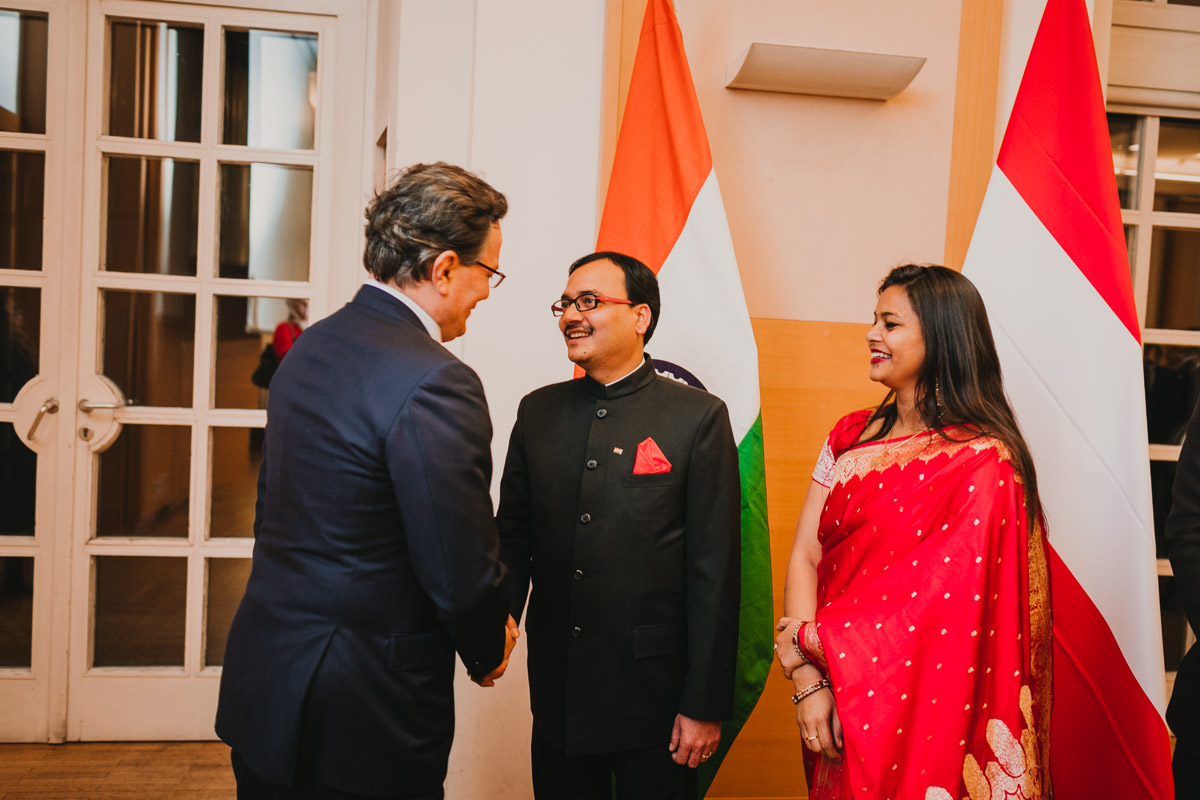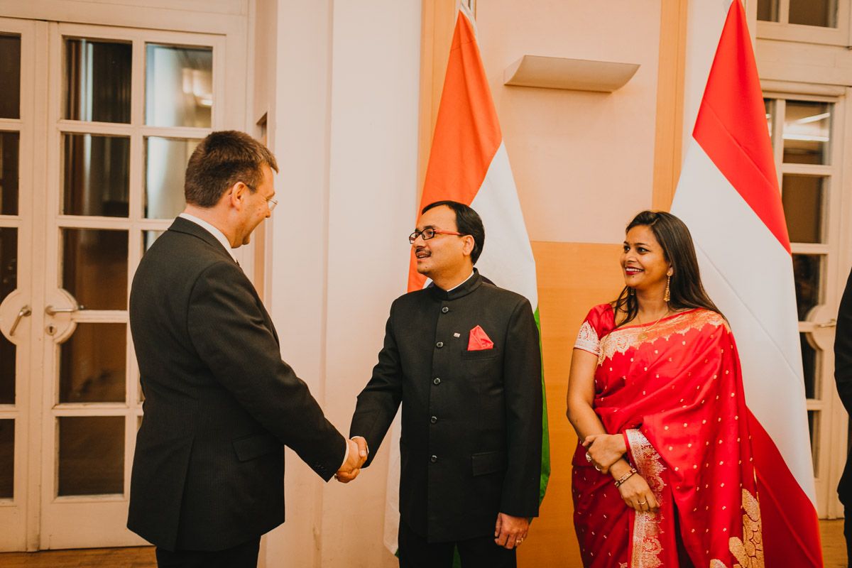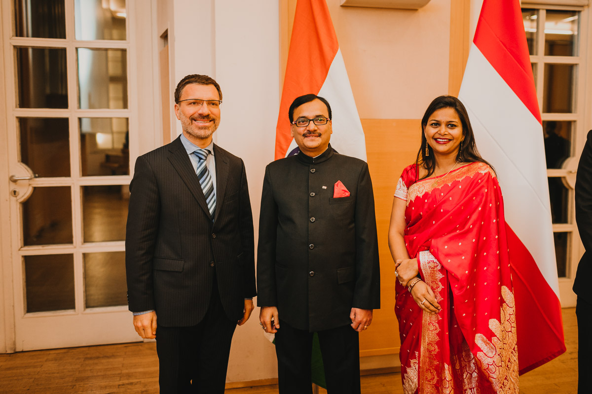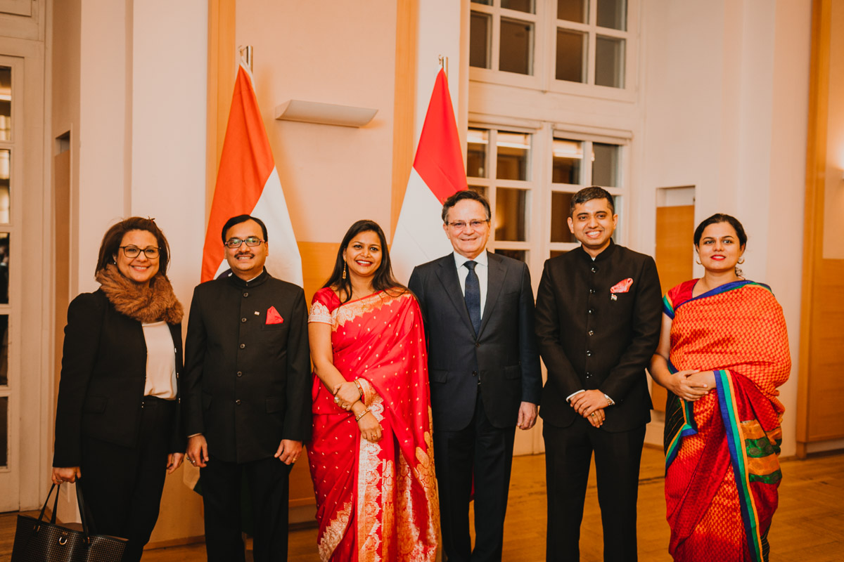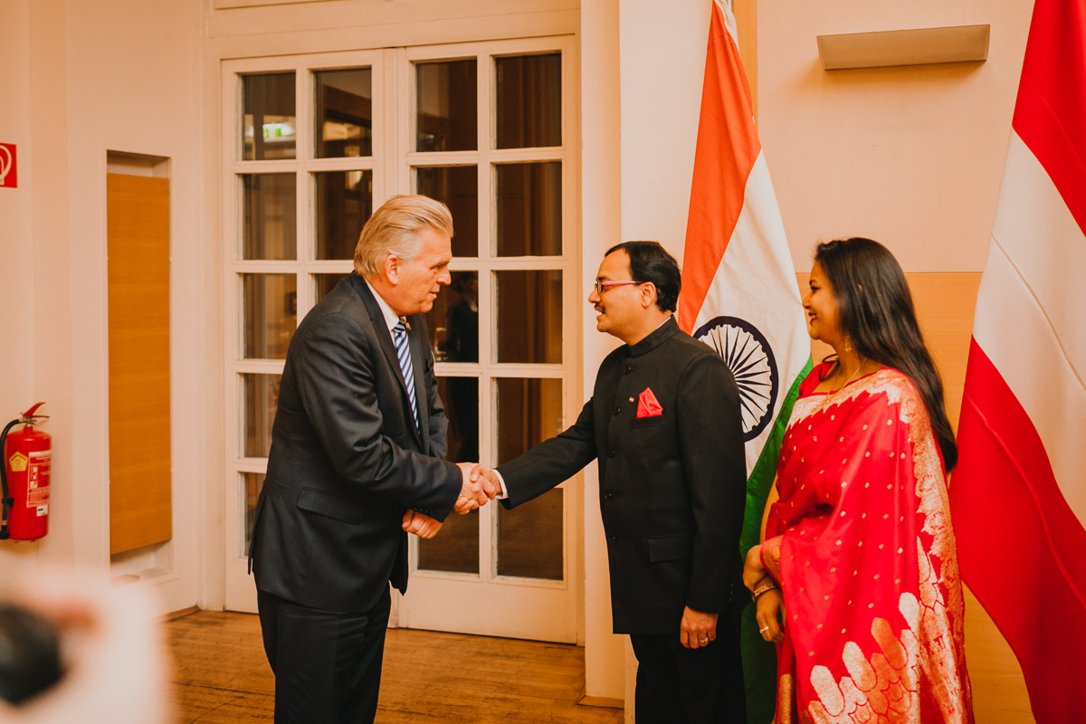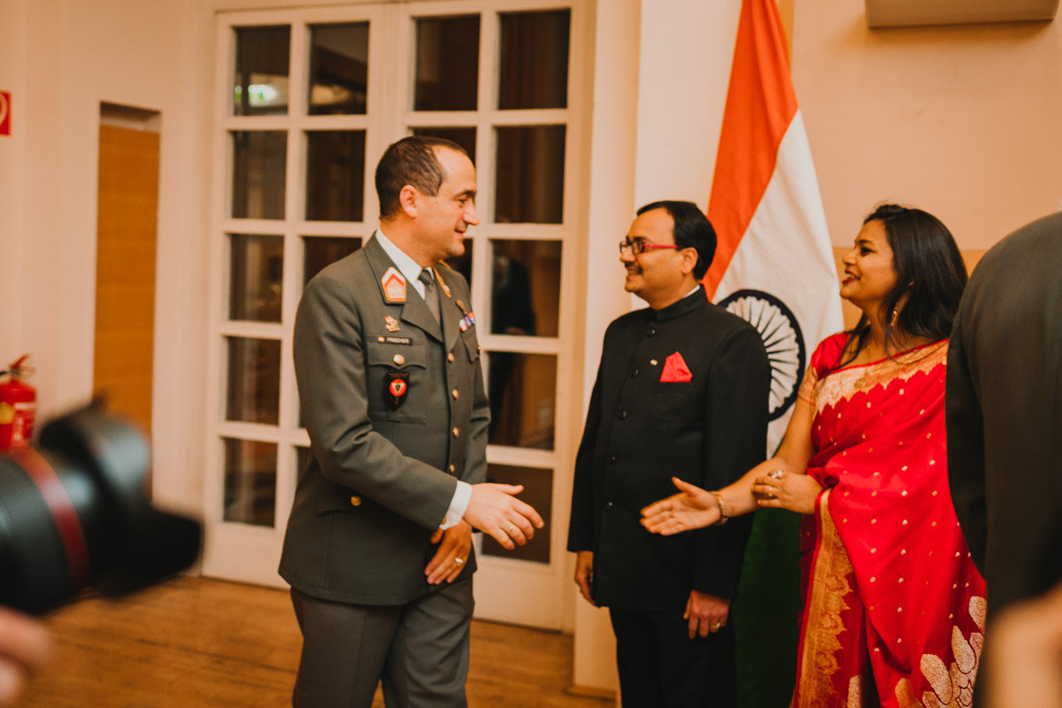 Der Charge d'Affaires der Indischen Botschaft, Subash Gupta, und Frau Dr. Ruchi Gupta, luden anlässlich des Nationalfeiertages zu einem Empfang in die Diplomatische Akademie.