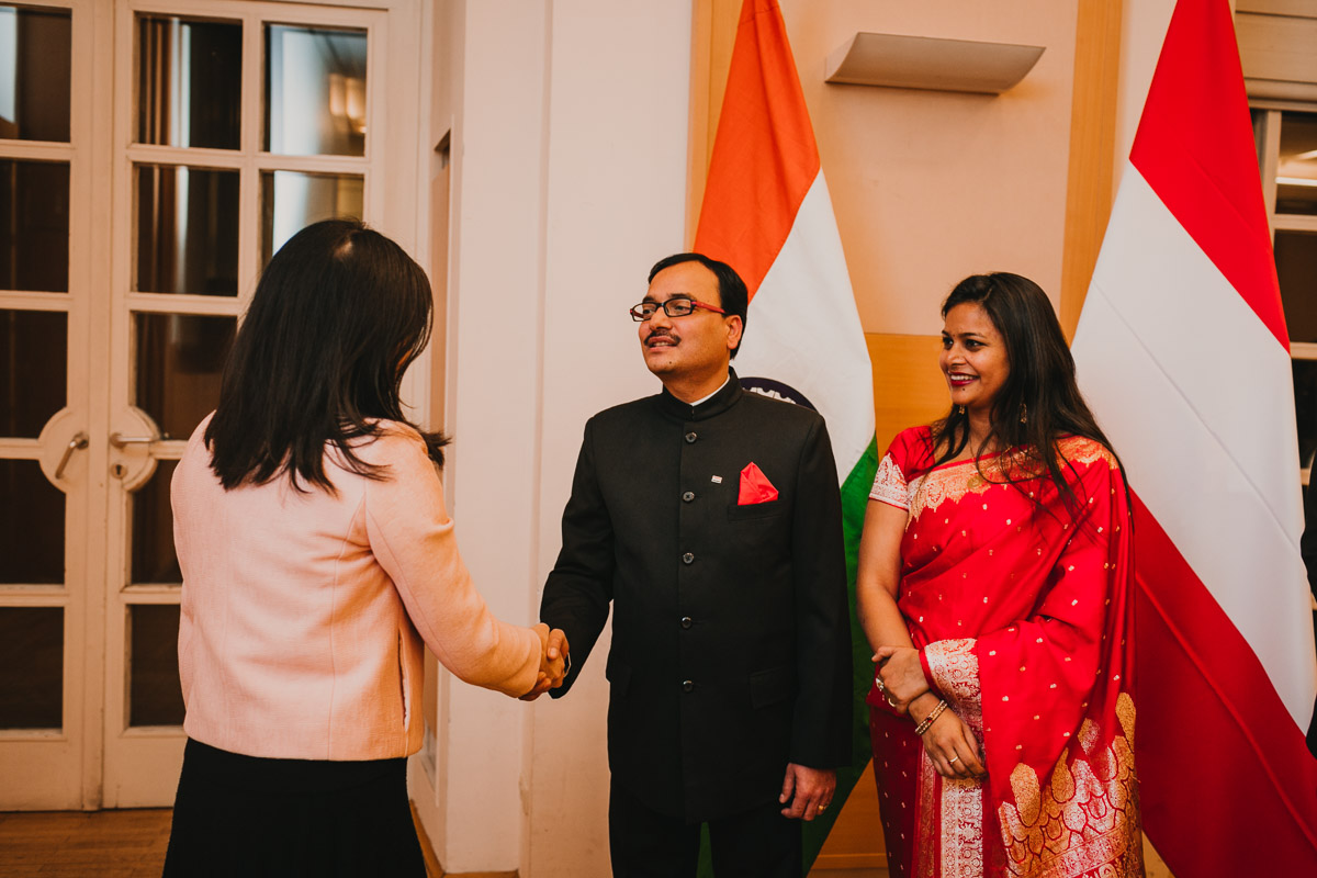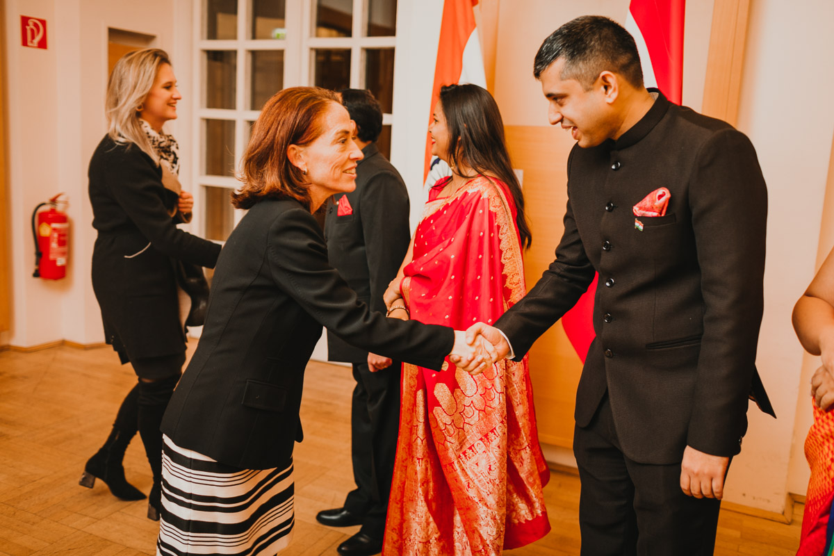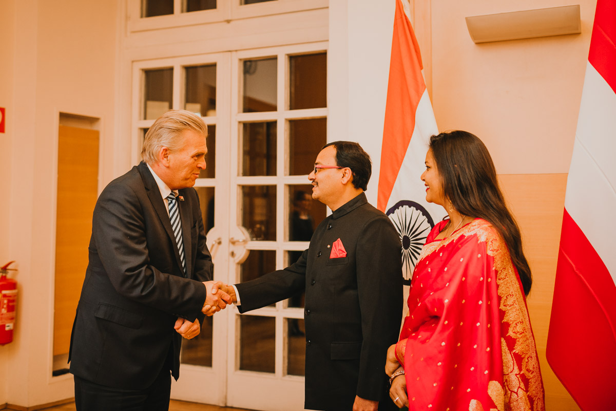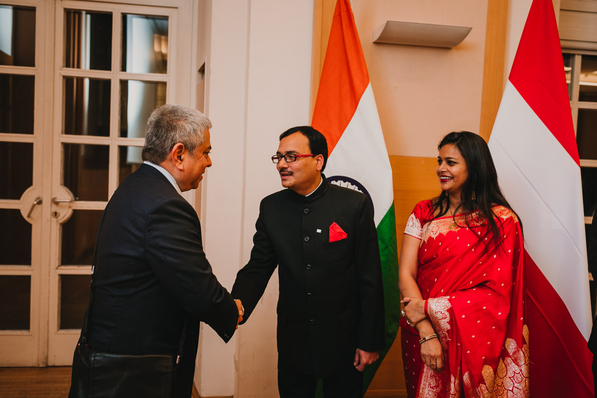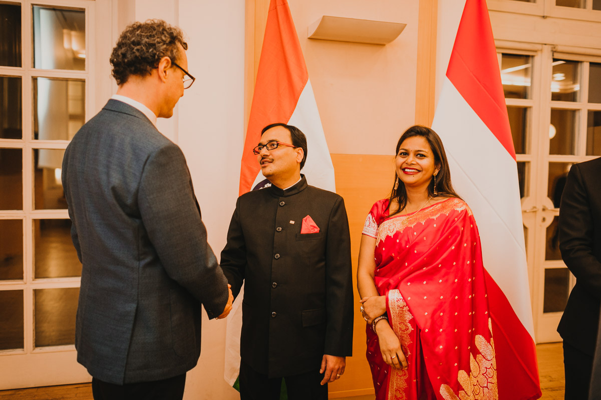 Der Charge d'Affaires der Indischen Botschaft, Subash Gupta, und Frau Dr. Ruchi Gupta, luden anlässlich des Nationalfeiertages zu einem Empfang in die Diplomatische Akademie.