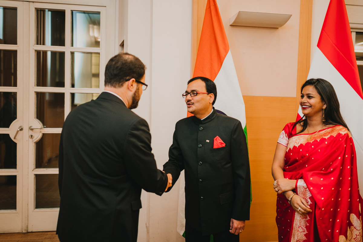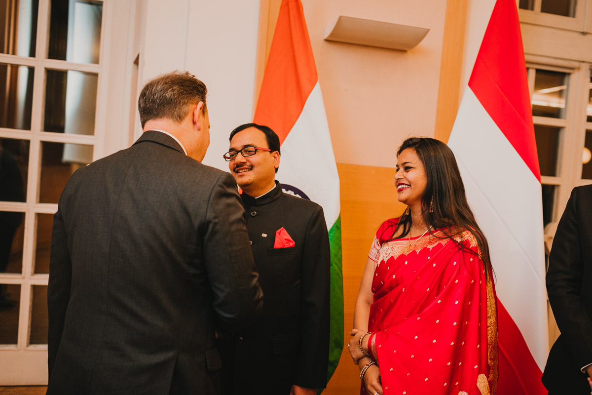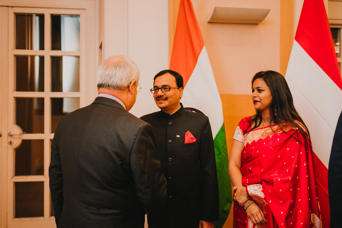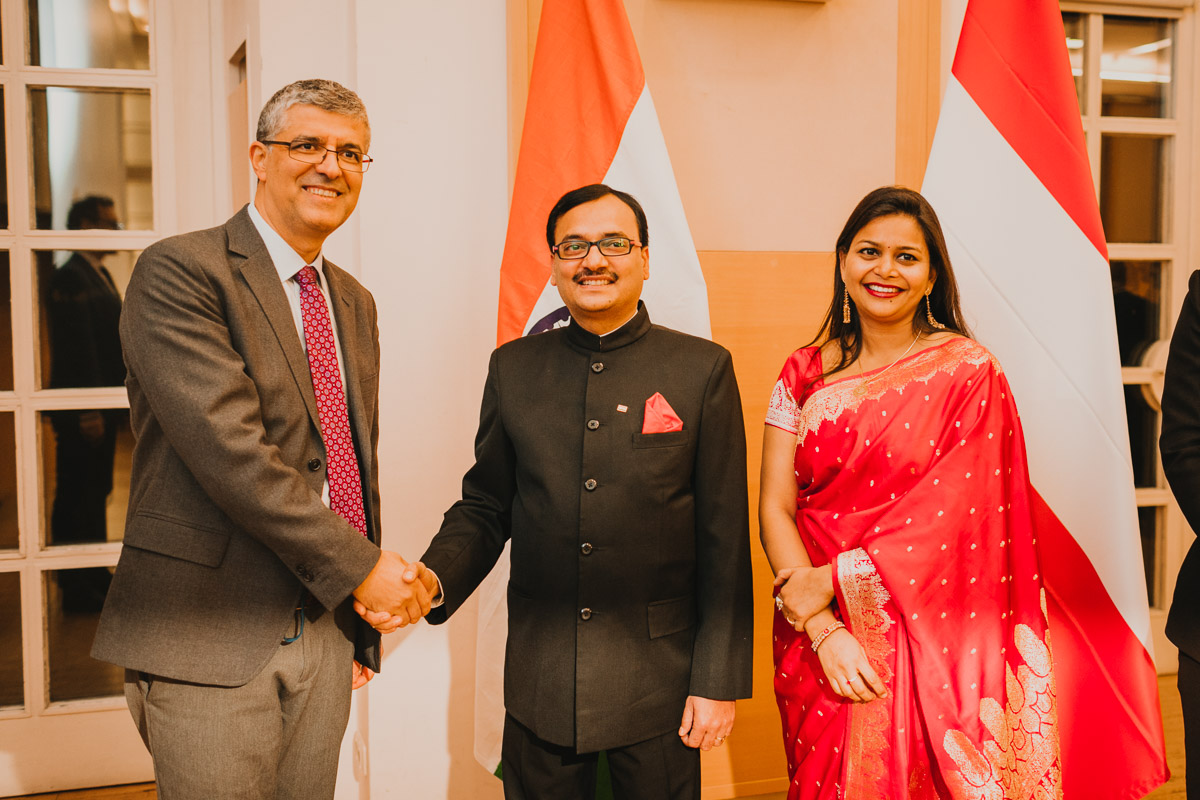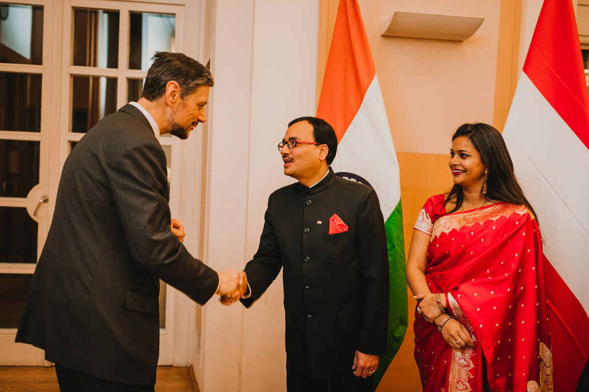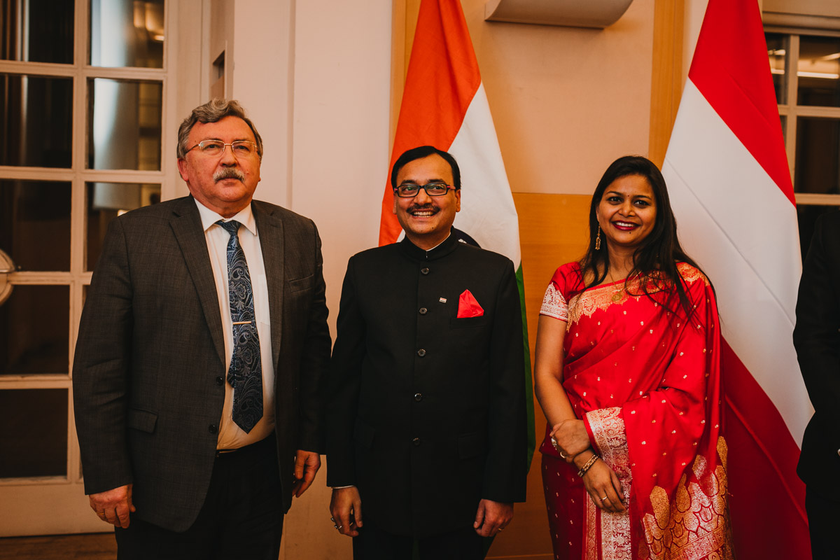 Der Charge d'Affaires der Indischen Botschaft, Subash Gupta, und Frau Dr. Ruchi Gupta, luden anlässlich des Nationalfeiertages zu einem Empfang in die Diplomatische Akademie.