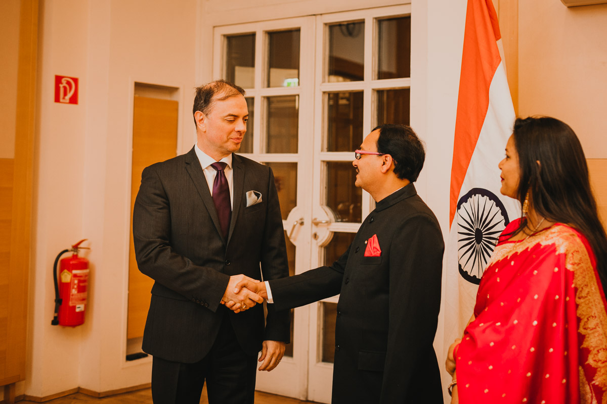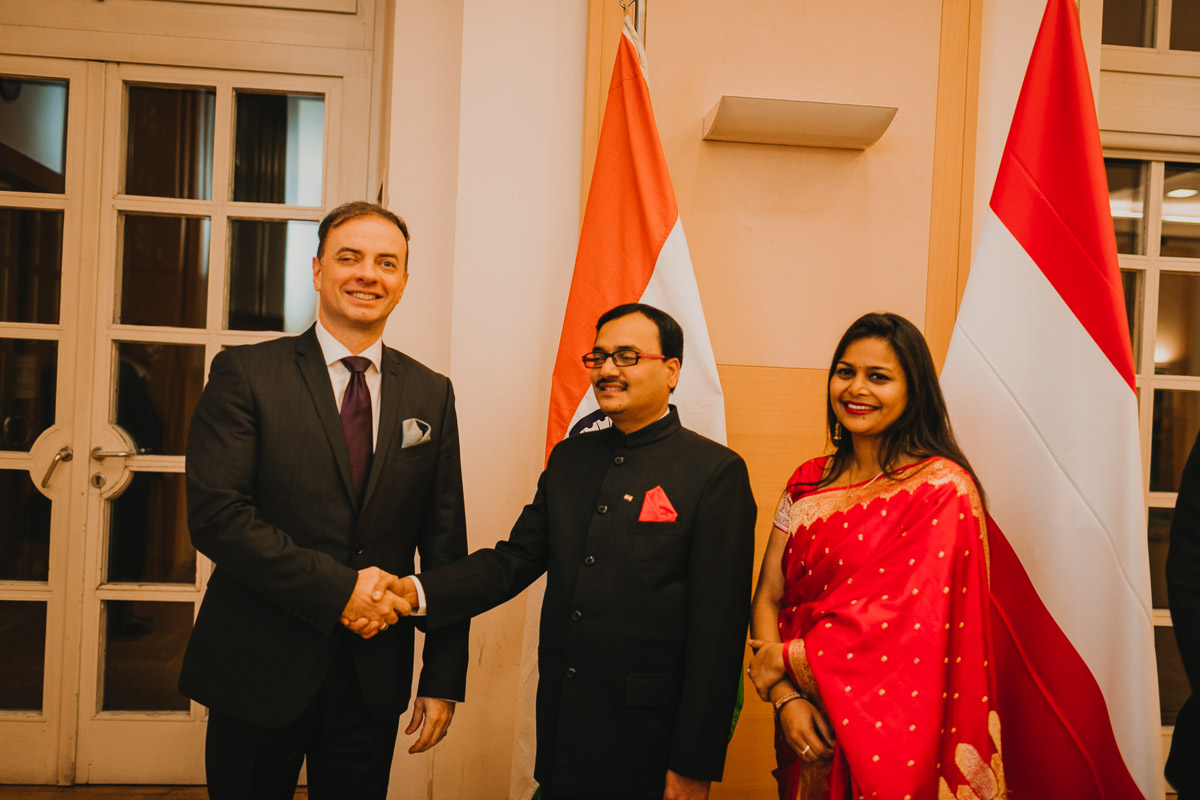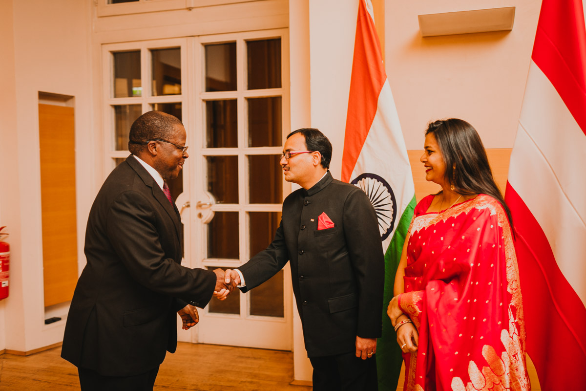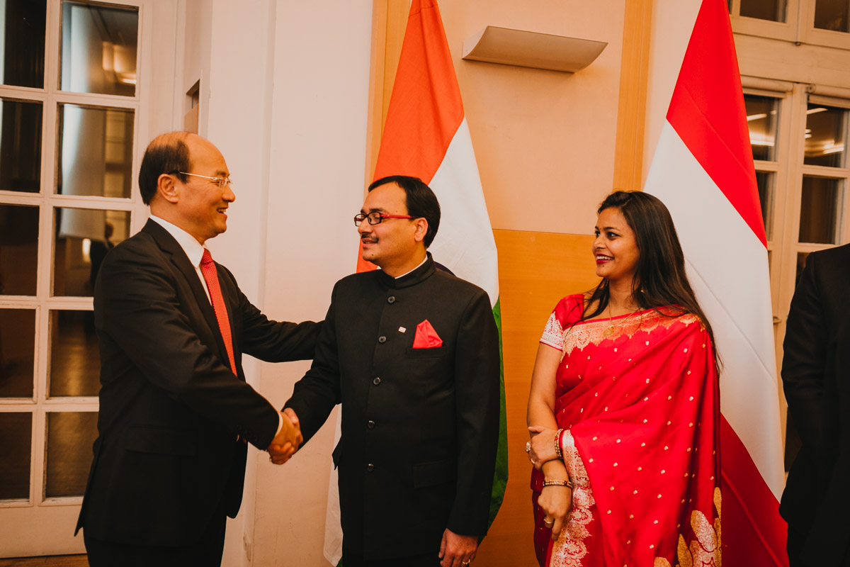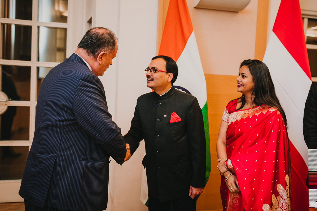 Der Charge d'Affaires der Indischen Botschaft, Subash Gupta, und Frau Dr. Ruchi Gupta, luden anlässlich des Nationalfeiertages zu einem Empfang in die Diplomatische Akademie.