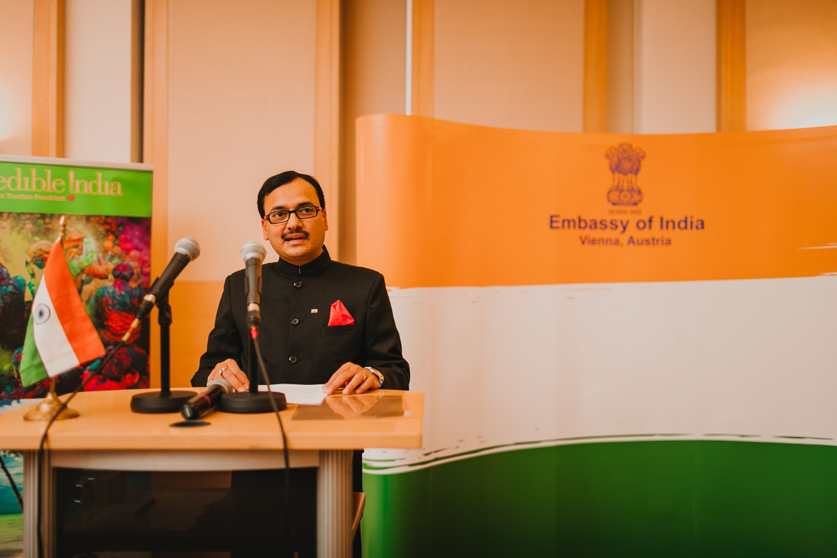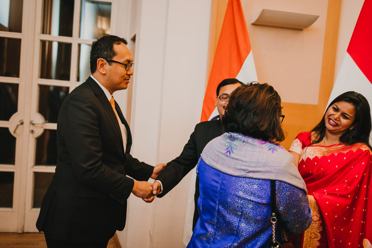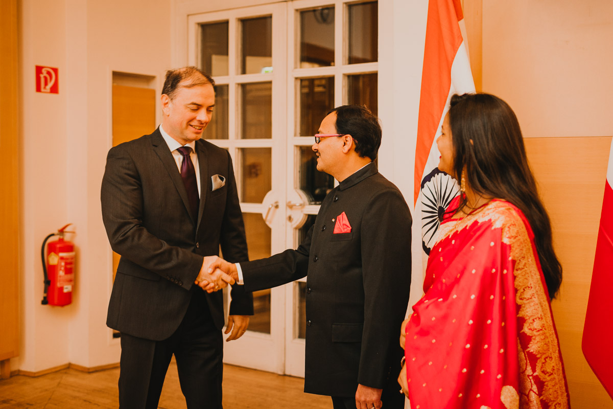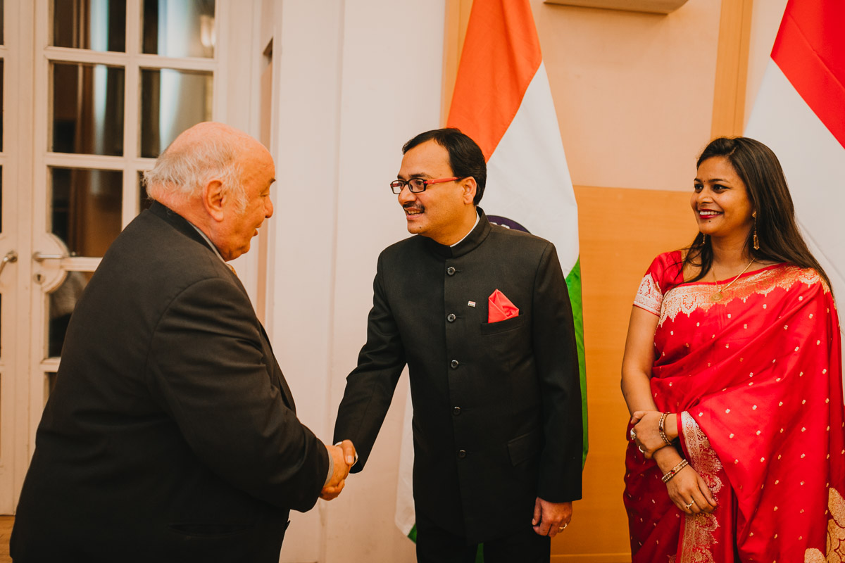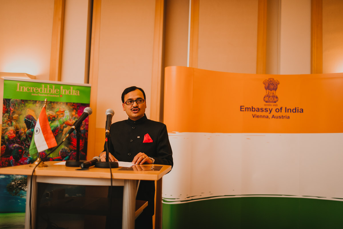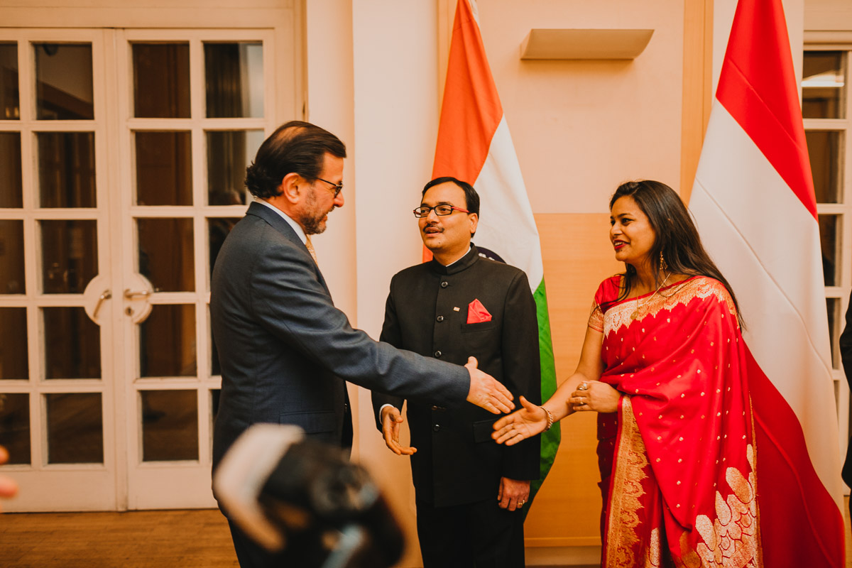 Der Charge d'Affaires der Indischen Botschaft, Subash Gupta, und Frau Dr. Ruchi Gupta, luden anlässlich des Nationalfeiertages zu einem Empfang in die Diplomatische Akademie.