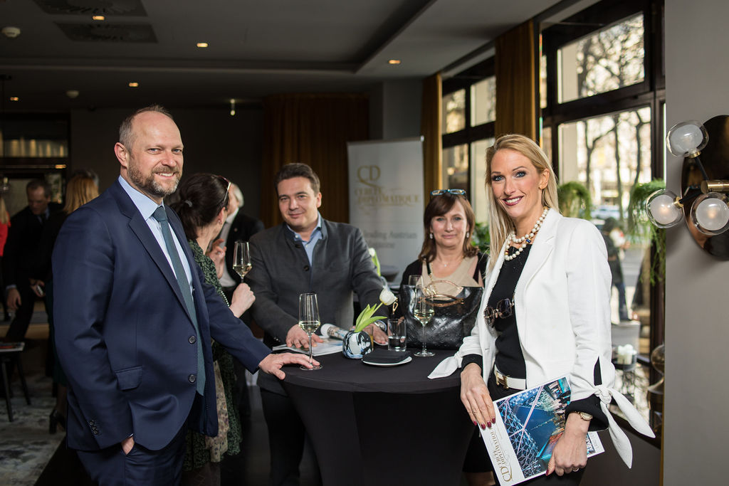 Die Herausgeber von CERCLE DIPLOMATIQUE Andrea Fürnweger und Alexander Bursky luden gemeinsam mit Nicole Zandt, Generaldirektorin des prachtvollen The Ring Hotel - Relais & Chateaux, zur Präsentation der Frühjahrs-Ausgabe in das hoteleigene Restaurant 'at eight'.