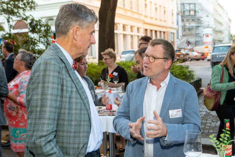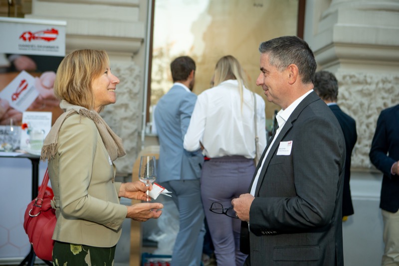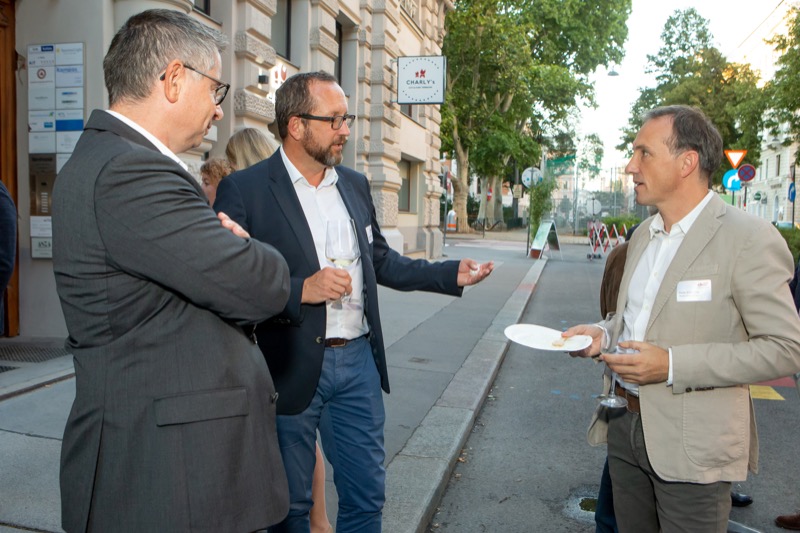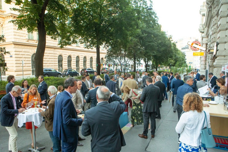 Der 21. Friends 4 Friends Netzwerkabend der Handelskammer Schweiz-Österreich-Liechtenstein fand dieses Mal beim Gastgeber, der Buerofreunde GmbH, in Wien statt. Eine ausgezeichnete Gelegenheit zum Networking bot der Außenbereich vor den Räumlichkeiten der Buerofreunde. Bei feinstem Schweizer Käse von Emmi Österreich und österreichischen Weinen hatten die Top-ManagerInnen aus verschiedenen Branchen eine ausgezeichnete Möglichkeit zum Netzwerken.