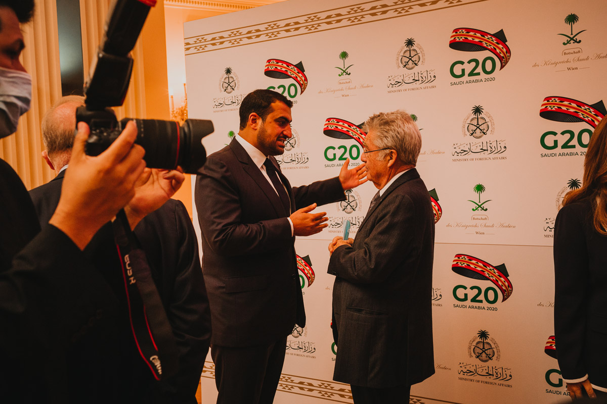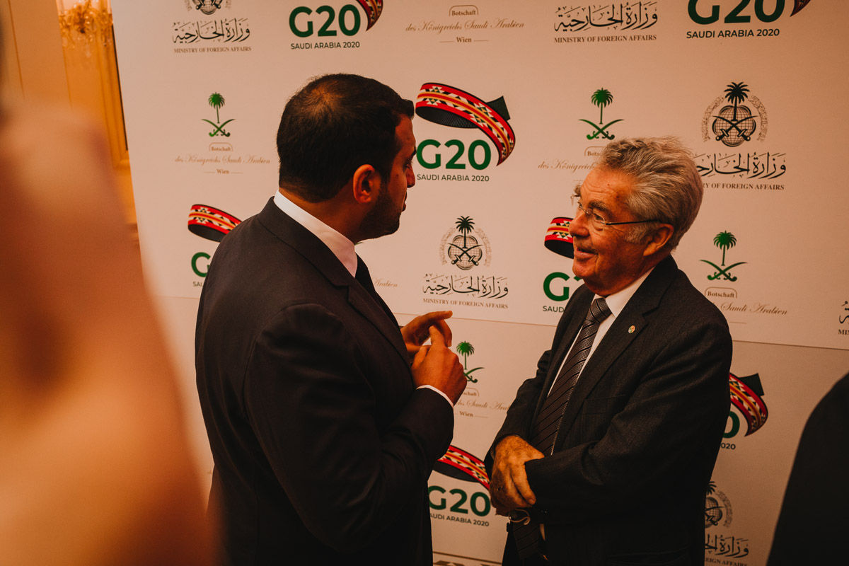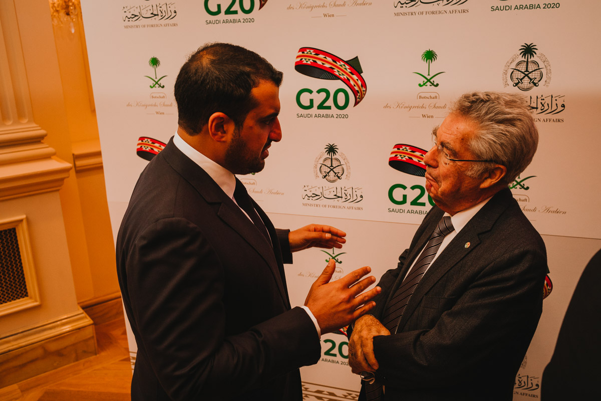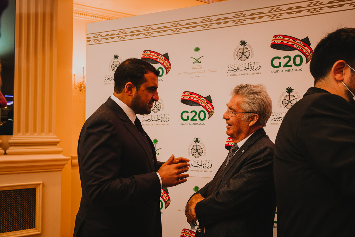 Seine Königliche Hoheit, Prinz Abdullah Bin Khaled Bin Sultan Bin Abdulaziz Al Saud, Botschafter und Ständiger Vertreter von Saudi Arabien in Österreich, lud anlässlich der Präsidentschaft Saudi Arabiens beim G-20 Gipfel in Riad zu einem Empfang in das Grand Hotel Wien.