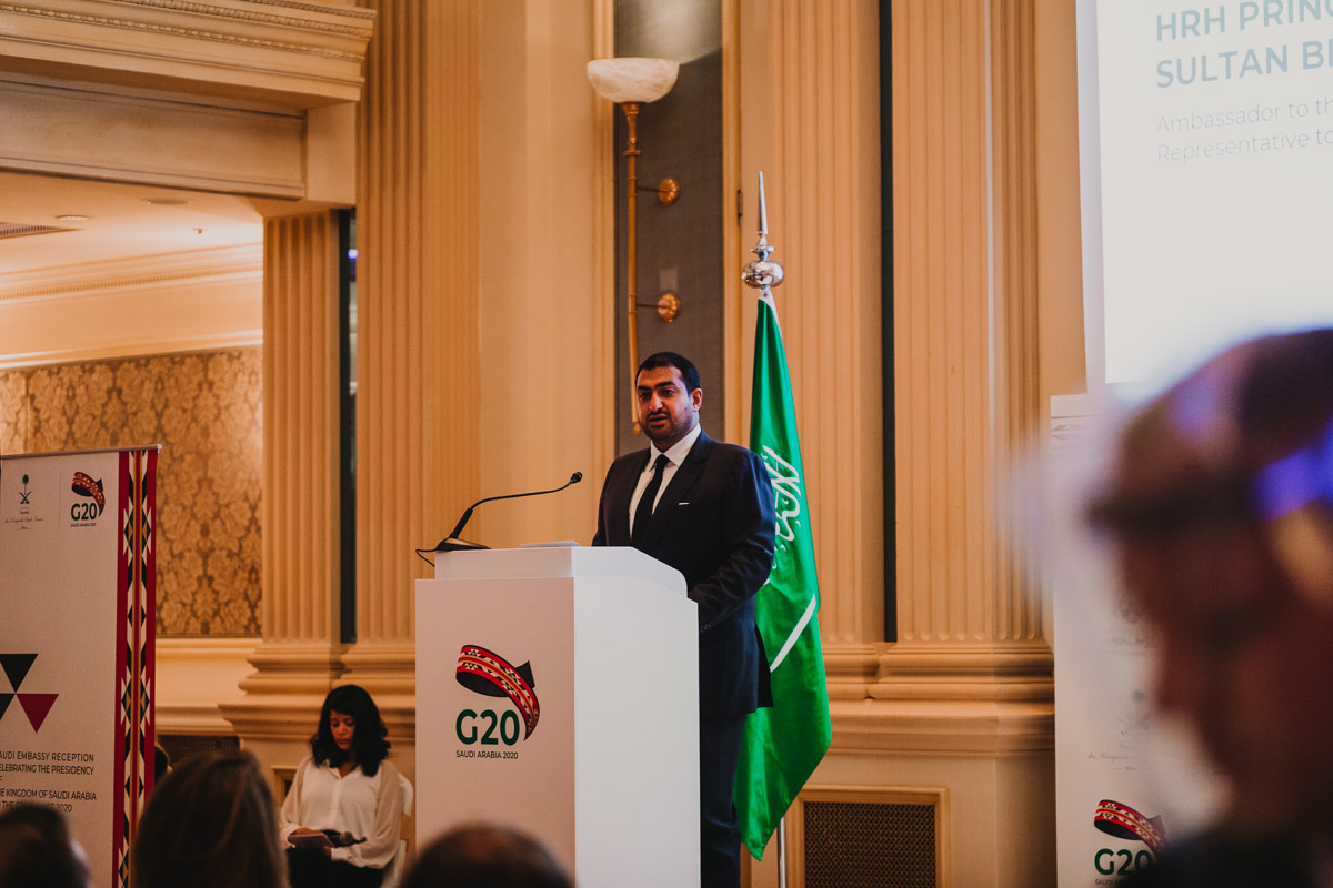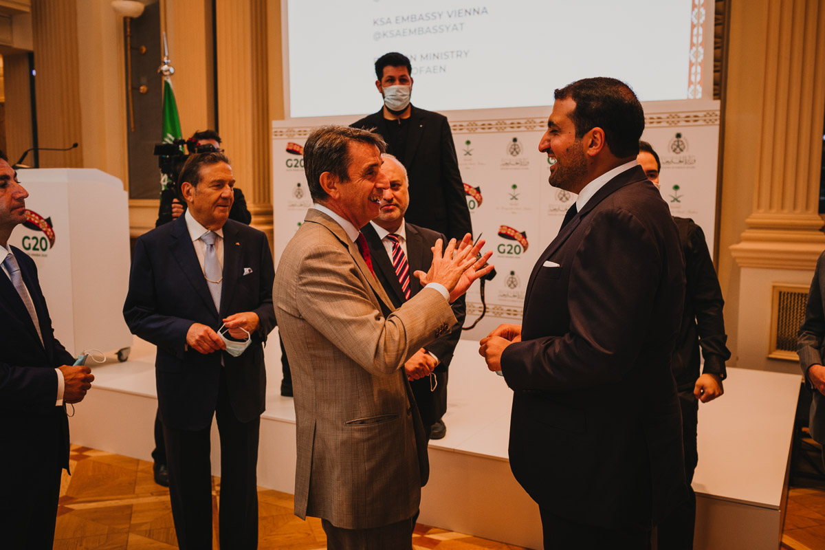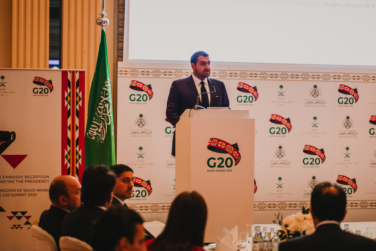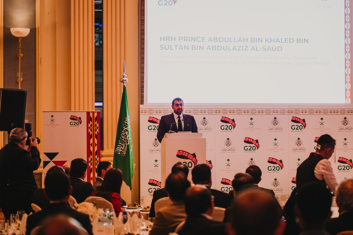 Seine Königliche Hoheit, Prinz Abdullah Bin Khaled Bin Sultan Bin Abdulaziz Al Saud, Botschafter und Ständiger Vertreter von Saudi Arabien in Österreich, lud anlässlich der Präsidentschaft Saudi Arabiens beim G-20 Gipfel in Riad zu einem Empfang in das Grand Hotel Wien.