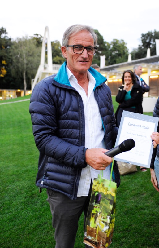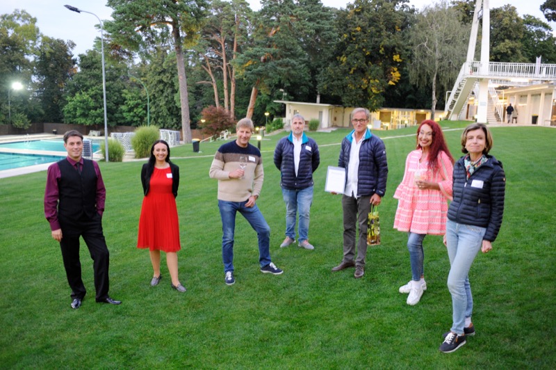 „Wir freuen uns über unser erstes Präsenztreffen seit Anfang März“, begrüßte Club Tirol Vizepräsidentin Renate Danler die streng nach „Corona-Vorschrift“ auf 100 Teilnehmer begrenzte Gästeschar. Bestens versorgt mit Getränken und köstlichem Fingerfood vom Team des „Luv Beachclub“ durften die Gäste anschließend dem einzigen hochoffiziellen Akt des Abends lauschen. Club Tirol Präsident Julian Hadschieff überreichte dem Gastgeber und Hausherren des Schönbrunner Bades, Sepp Ebenbichler, eine „Ehrenurkunde“.