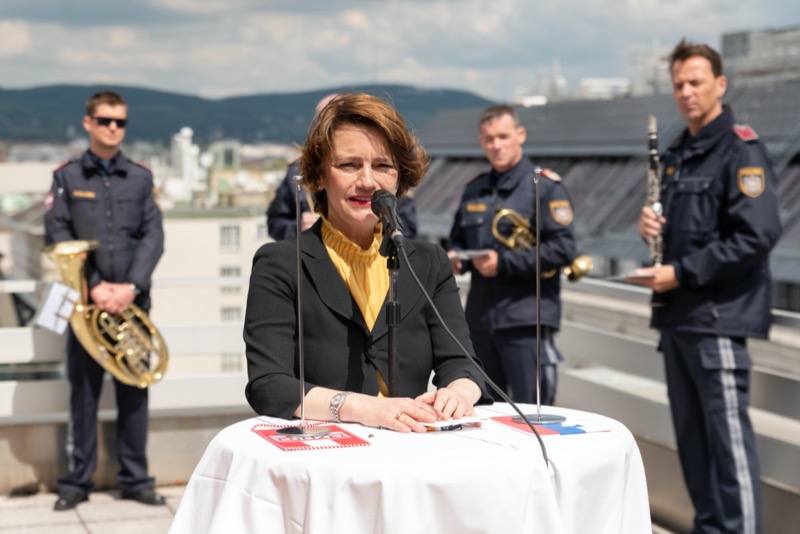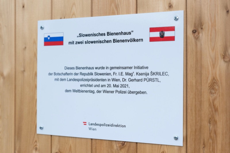Am diesjährigen Weltbienentag übergab die Botschafterin der Republik Slowenien, I.E. Ksenija Škrilec, dem Präsidenten der Landespolizeidirektion Wien, Dr. Gerhard Pürstl, auf dem Dach des Polizeipräsidiums einen slowenischen Bienenstock, der zwei Bienenvölkern der Carnica-Biene aus Slowenien ein Zuhause bieten wird.