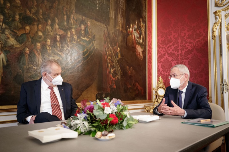 Der Präsident der Tschechischen Republik, Miloš Zeman, kam zu einem Arbeitsbesuch nach Wien. Im Gespräch mit Bundespräsident Alexander Van der Bellen haben sich beide für bessere Beziehungen zu Russland ausgesprochen. Präsident Zeman sagte bei einer gemeinsamen Pressekonferenz, er stimme mit Bundespräsident Van der Bellen in Bezug auf die "Unlust, die Stimmung à la Kalter Krieg zu erneuern" vollkommen überein. Der tschechische Präsident lobte auch die "ausgewogene Einstellung" Alexander Van der Bellens zu Russland.