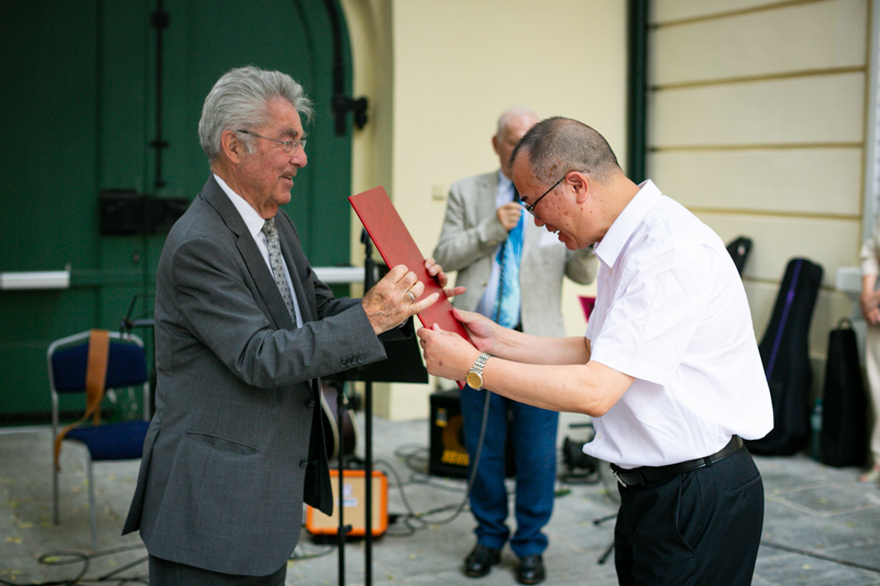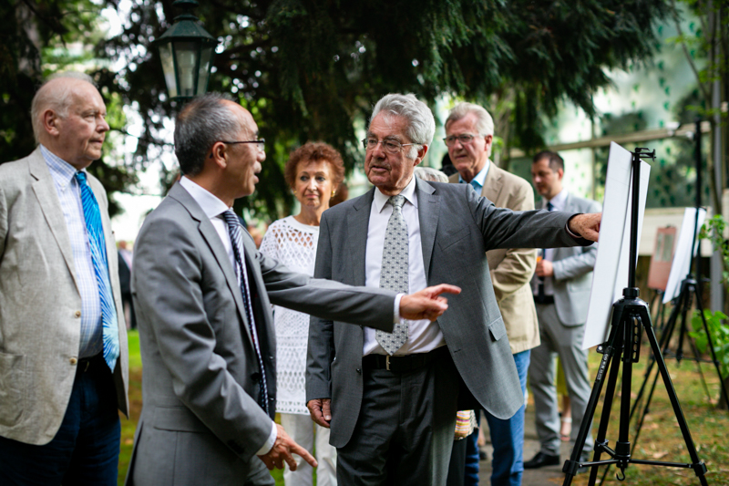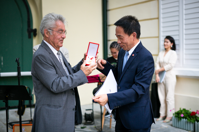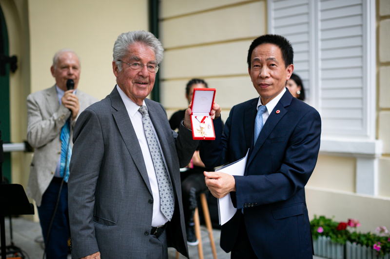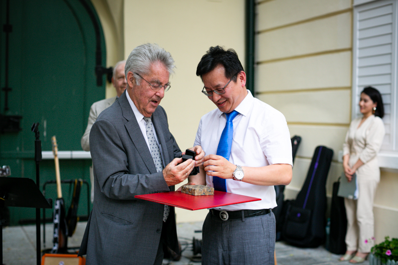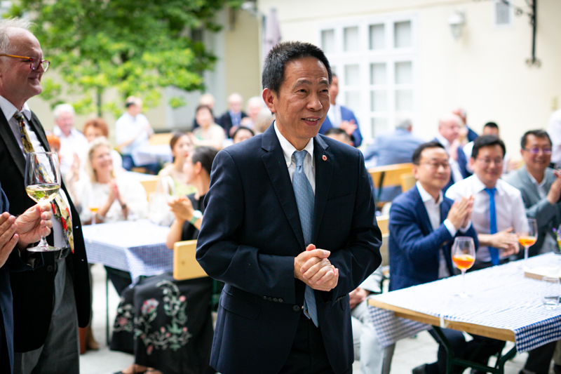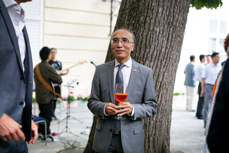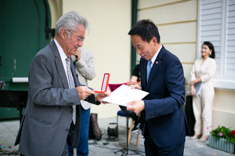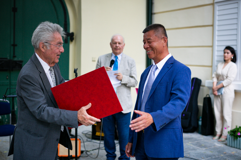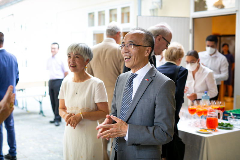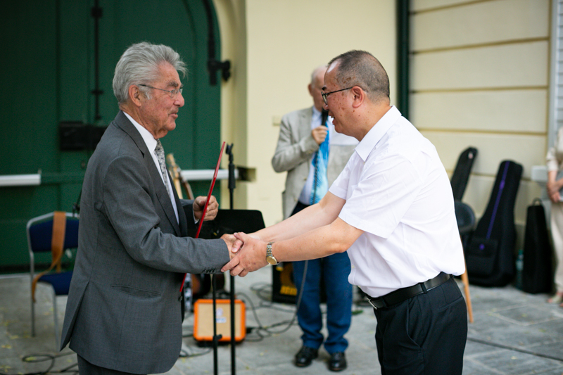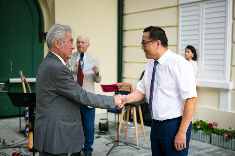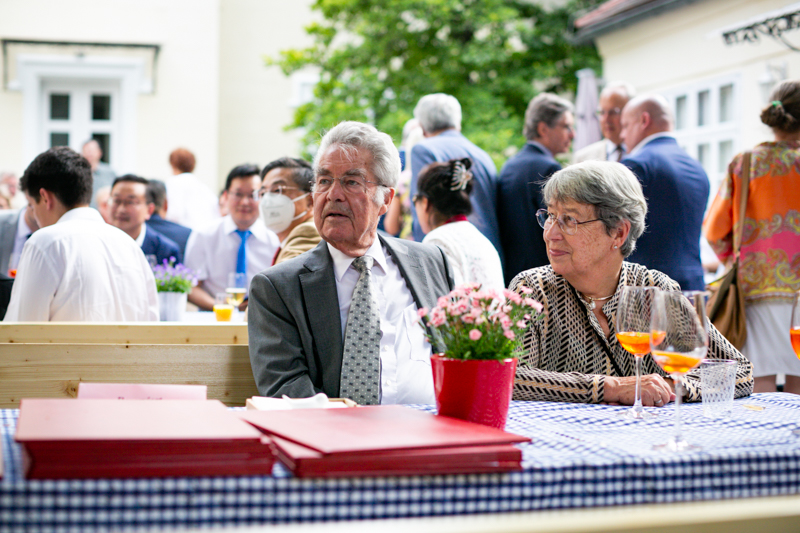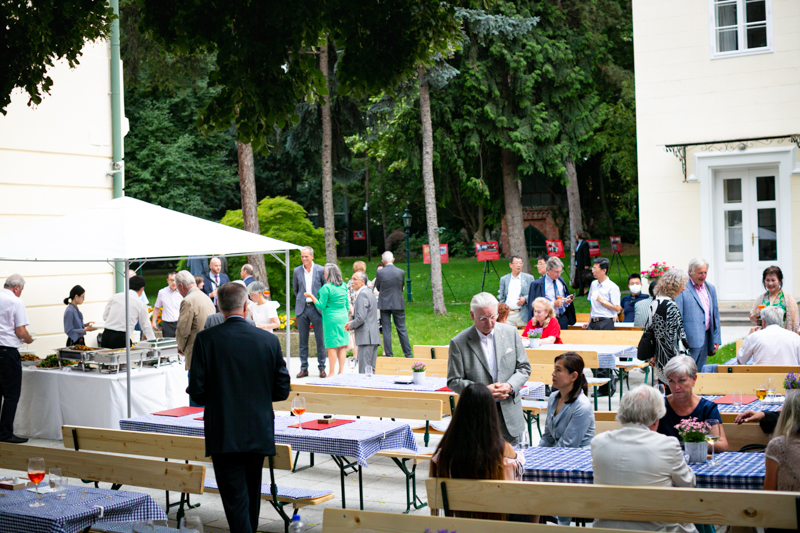 Der Botschafter der VR China, S.E. Li Xiaosi, lud gemeinsam mit der ÖGCF (Österreichisch-Chinesische Gesellschaft) zu einem Sommerfest in den prachtvollen Garten der Residenz. Im Rahmen der Veranstaltung wurden auch verdiente Persönlichkeiten beider Länder geehrt und eine Fotoausstellung über 100 Jahre KP Chinas konnte besichtigt werden.