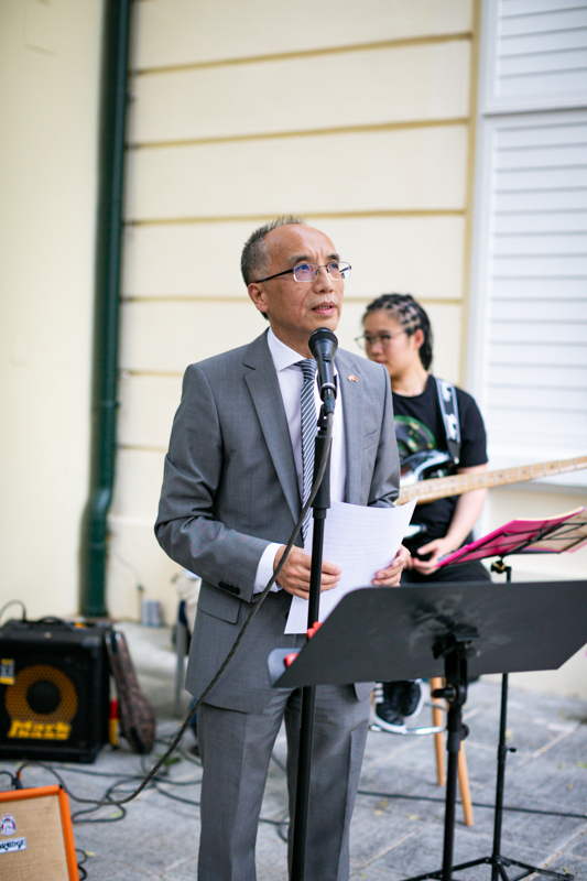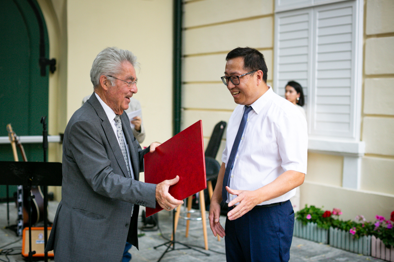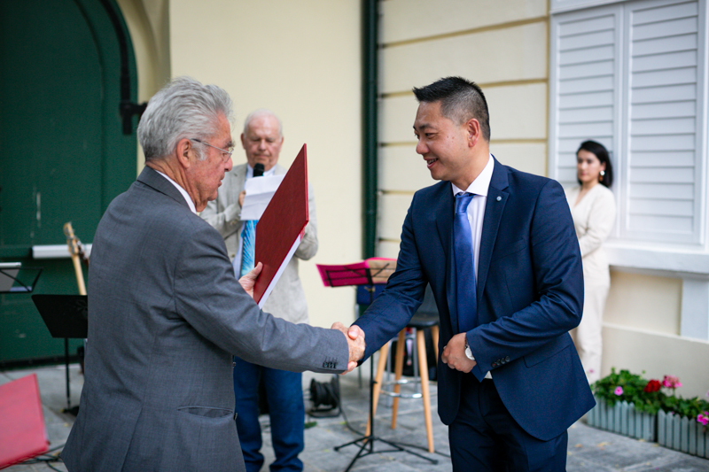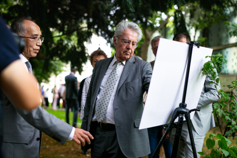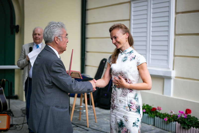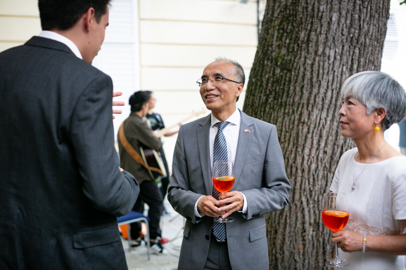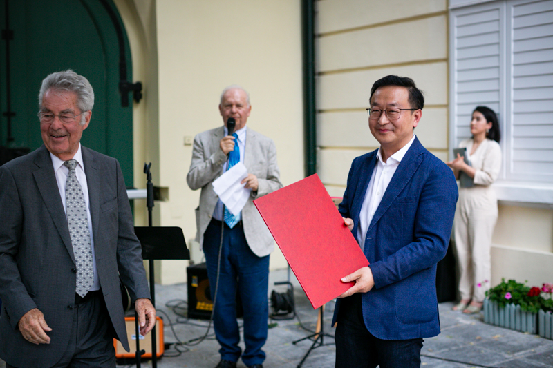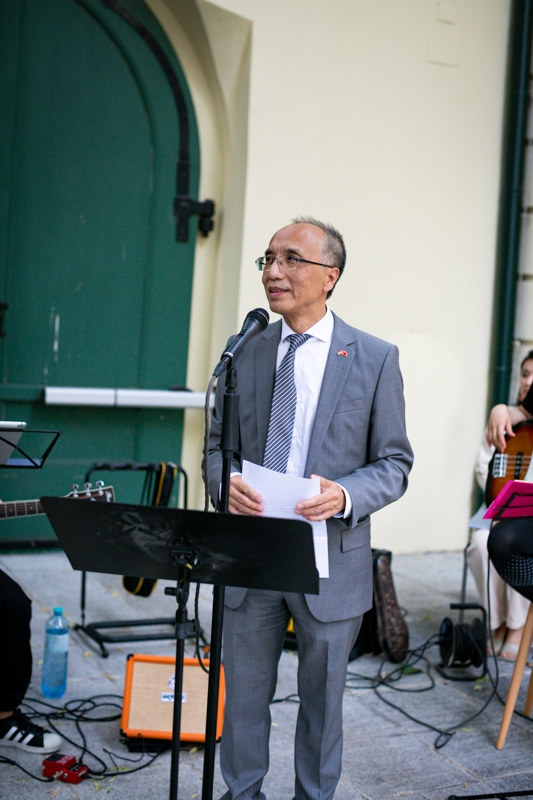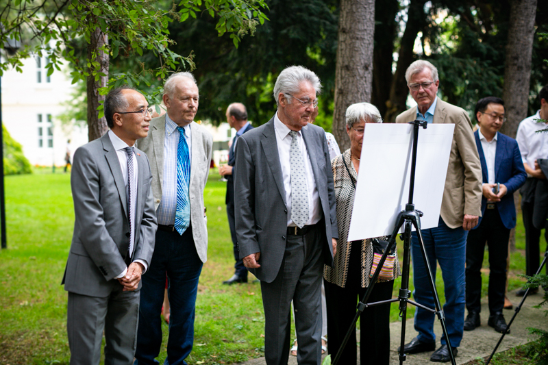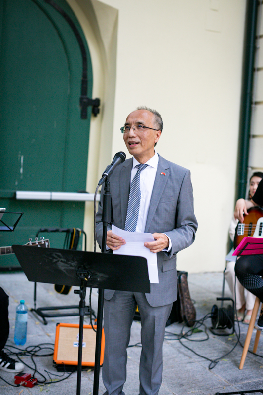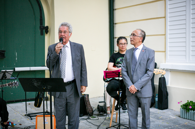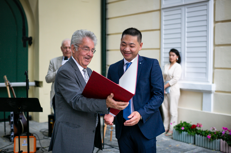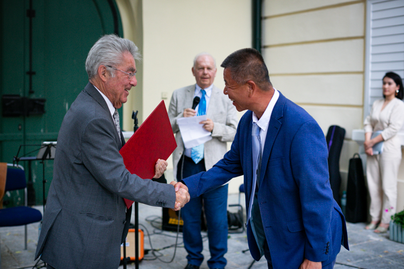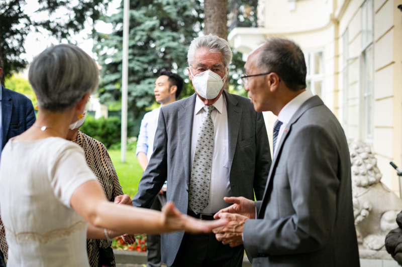 Der Botschafter der VR China, S.E. Li Xiaosi, lud gemeinsam mit der ÖGCF (Österreichisch-Chinesische Gesellschaft) zu einem Sommerfest in den prachtvollen Garten der Residenz. Im Rahmen der Veranstaltung wurden auch verdiente Persönlichkeiten beider Länder geehrt und eine Fotoausstellung über 100 Jahre KP Chinas konnte besichtigt werden.