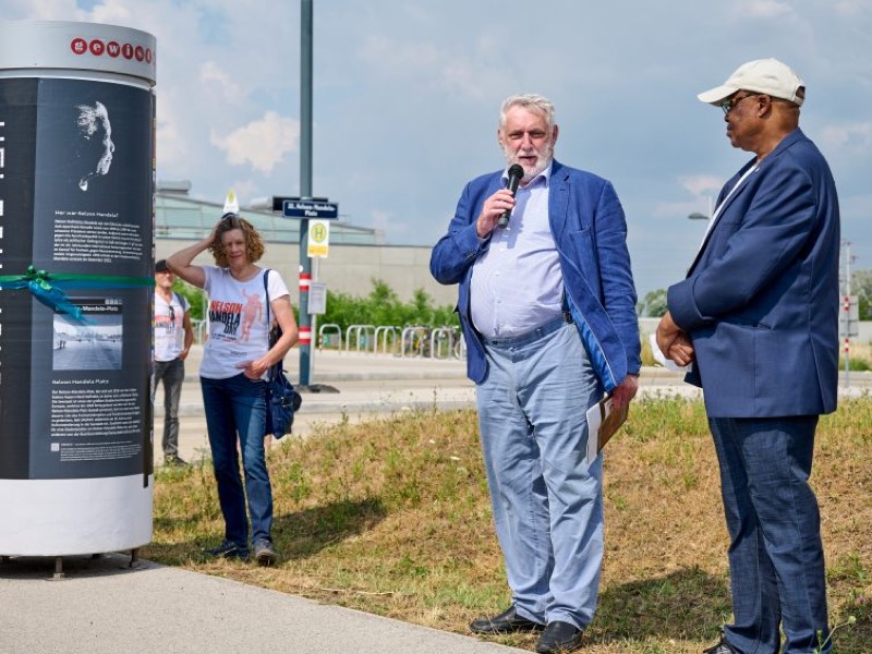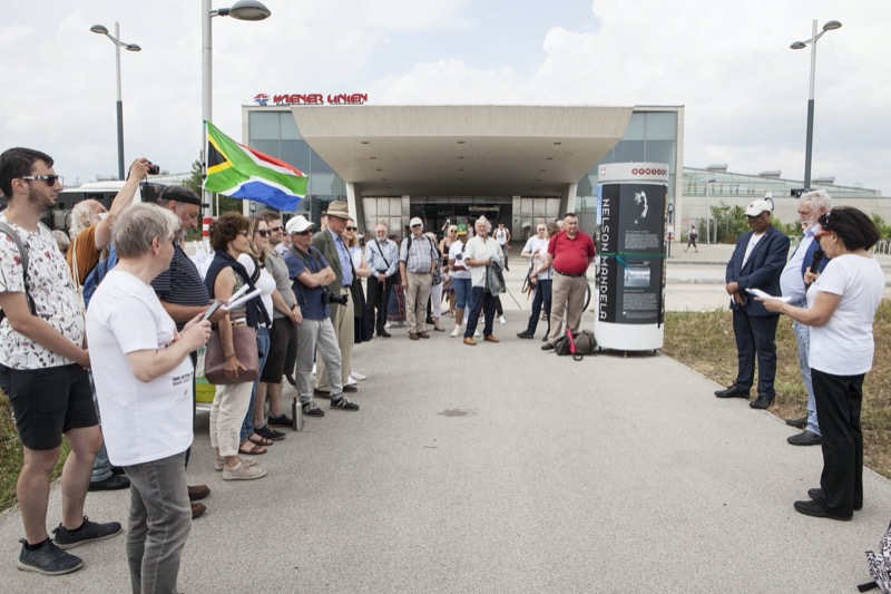 Zum 5. Mal in Folge lud SADOCC anlässlich des von den Vereinten Nationen proklamierten internationalen Nelson-Mandela-Tages zu einer interaktiven Kulturwanderung ein. Dieses Jahres wurde die Kulturwanderung den Errungenschaften beider Friedensnobelpreisträger, Nelson Mandela und Erzbischof Desmond Tutu, welcher heuer seinen 90. Geburtstag feiert gewidmet. Seit 2016 gibt es den Nelson-Mandela-Platz vor der U-Bahn-Station Aspern Nord, im noch gänzlich unbebauten Teil der Seestadt. Inspiriert vom Slogan des internationalen Mandela-Gedenktages “Take Action – Inspire Change”, fand heuer die Einweihung eines provisorischen Denkmals für den Friedensnobelpreisträger statt.