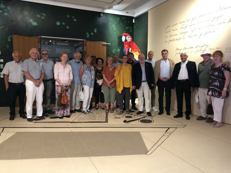Für einen ausgewählten Kreis von Vorstandsmitgliedern aus dem Netzwerk der bilateralen Freundschaftsgesellschaften in Österreich, fand am 28. Juli eine Exklusivführung auf der Schallaburg statt, wo sich derzeit die Ausstellung „Sehnsucht Ferne – Aufbruch in neue Welten“ multiperspektivisch den europäisch-überseeischen Beziehungen widmet. PaN-Präsident Hermann Mückler sowie der Kulturvermittler Georg Clam-Martinic – beide waren bei der Ausstellungsgestaltung beratend sowie als Leihgeber involviert, letzterer sogar mit familiären Bezügen zur Weltreise des Erzherzog Franz Ferdinand – gingen in ihren Ausführungen z.T. weit über das Gezeigte hinaus und beleuchteten anekdotisch interessante und kuriose historische Details.
