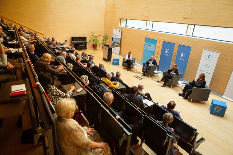 Die Diskutanten waren der Vizepräsident des Europäischen Parlaments Othmar KARAS, Bundesministerin Leonore GEWESSLER und der Vorstandsdirektor der Flughafen Wien AG Günther OFNER.