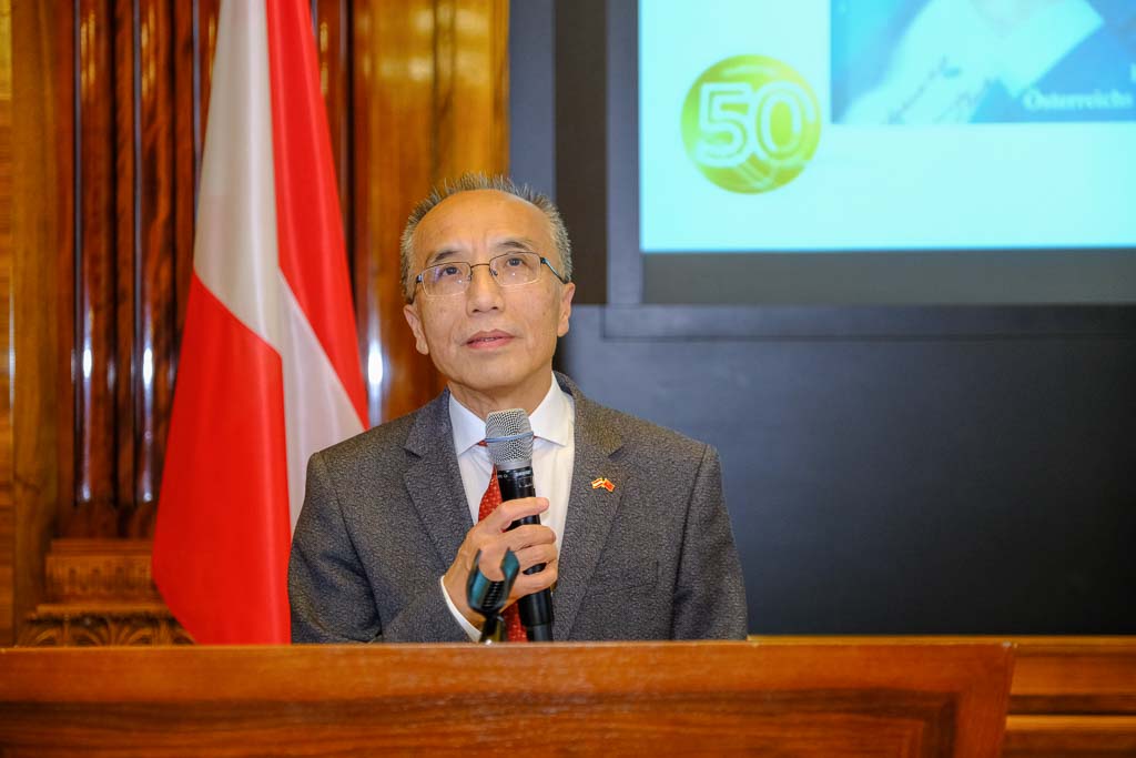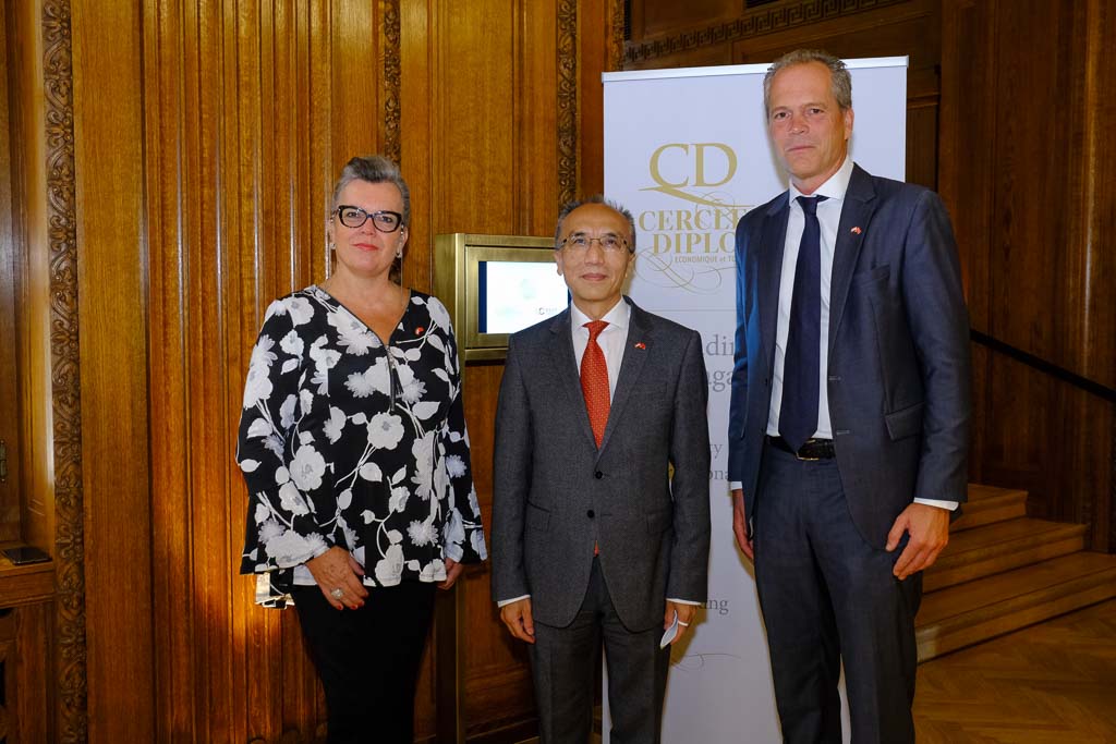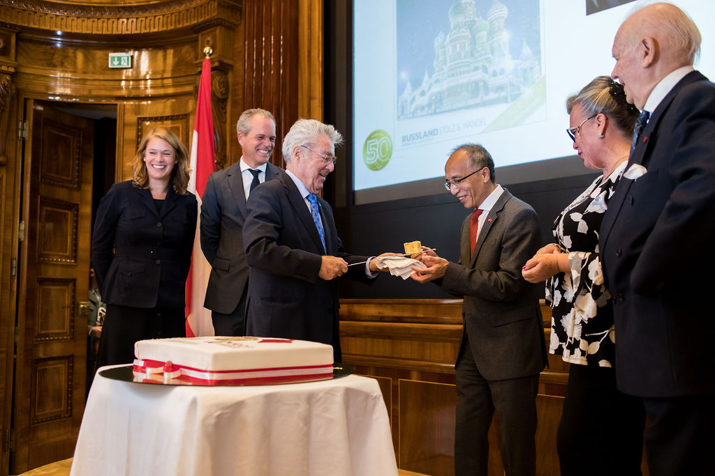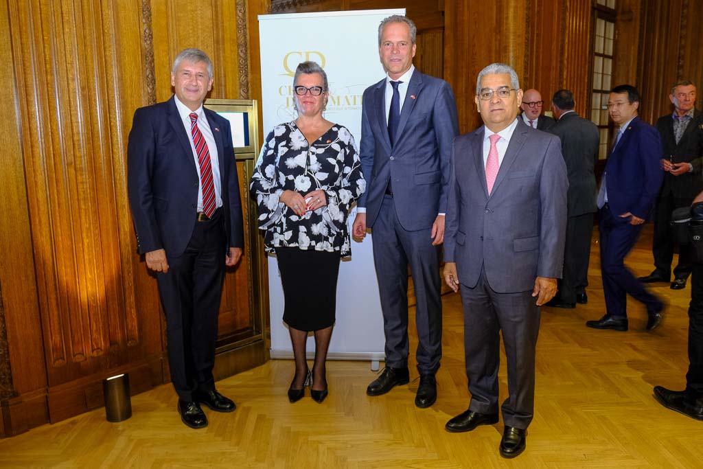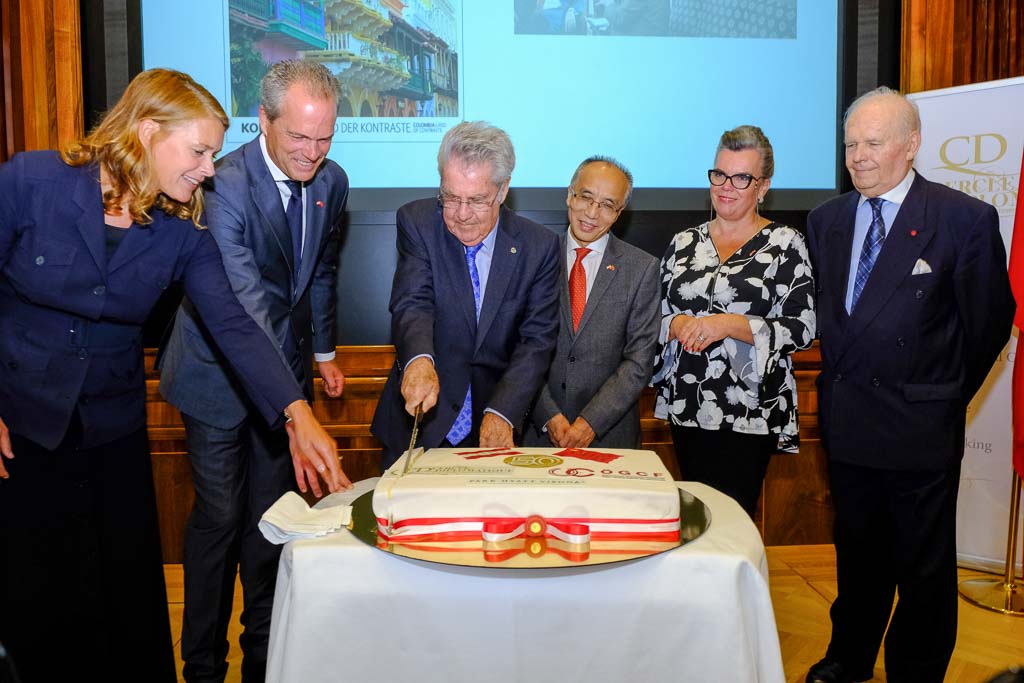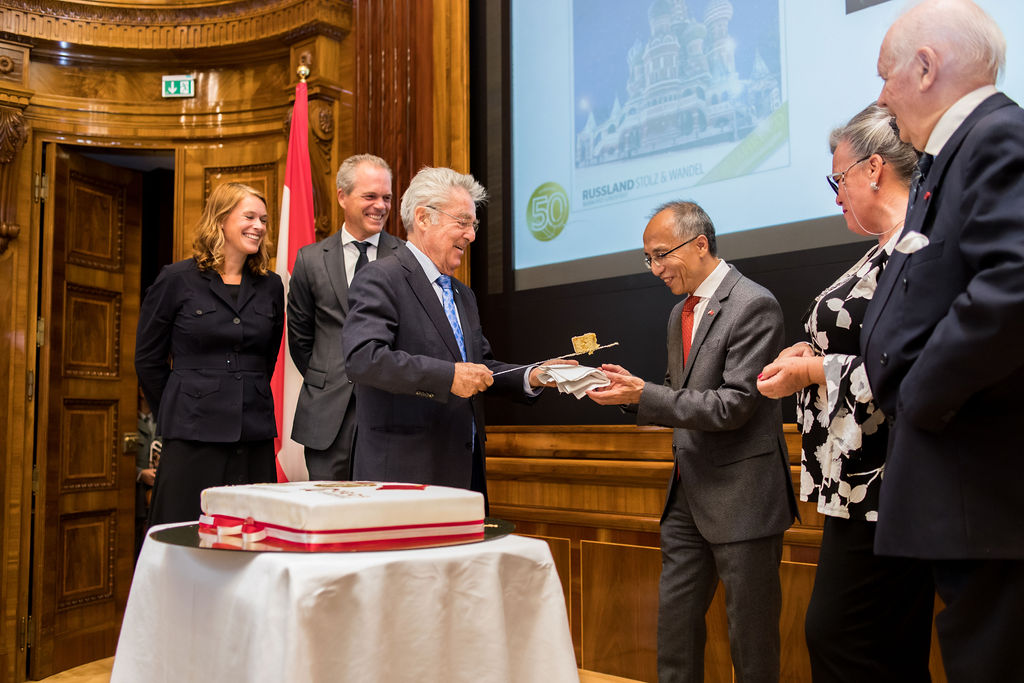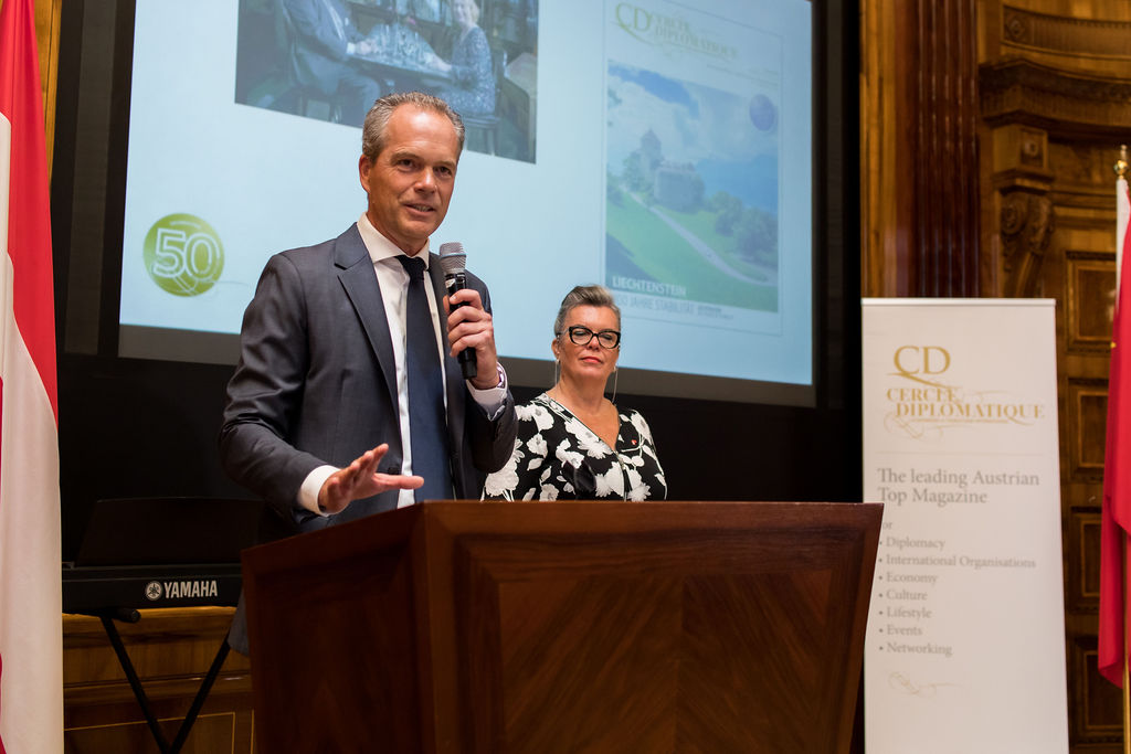 Gleich drei runde Jubiläen wurden gestern gemeinsam im Park Hyatt Vienna gefeiert - 50 Jahre diplomatische Beziehungen zw. der VR China und Österreich, 50 Jahre ÖGCF (Österr.-Chinesische Gesellschaft) und 50 Jahre Cercle Diplomatique Magazin. Den rund 200 geladenen Gästen aus Diplomatie, Wirtschaft, Politik & Gesellschaft wurde in diesem eleganten Rahmen dann auch die 244-Seiten starke Jubiläumsausgabe von Cercle Diplomatique mit einer umfangreichen Coverstory über die VR China präsentiert.