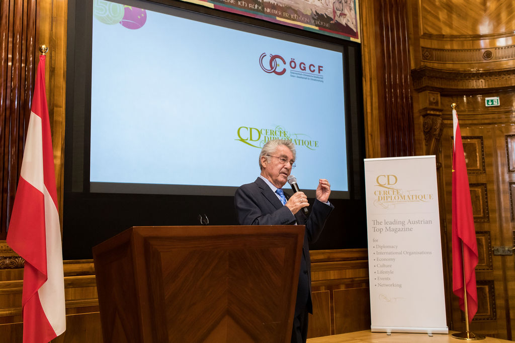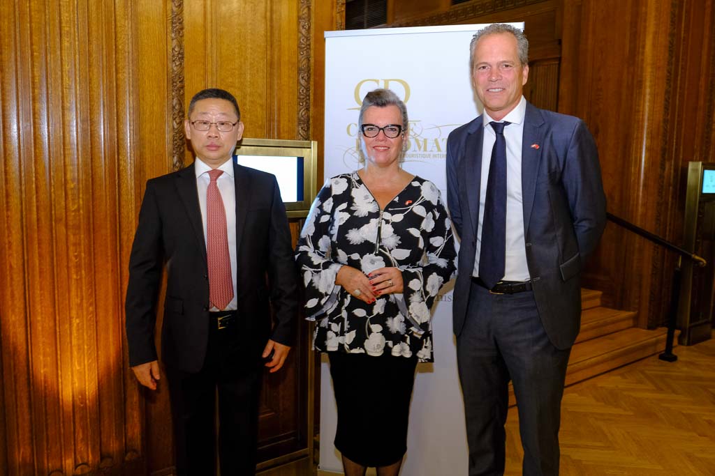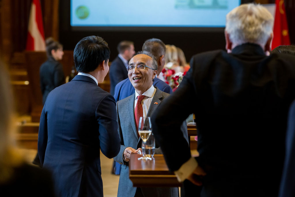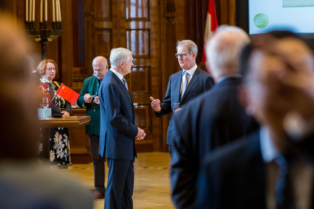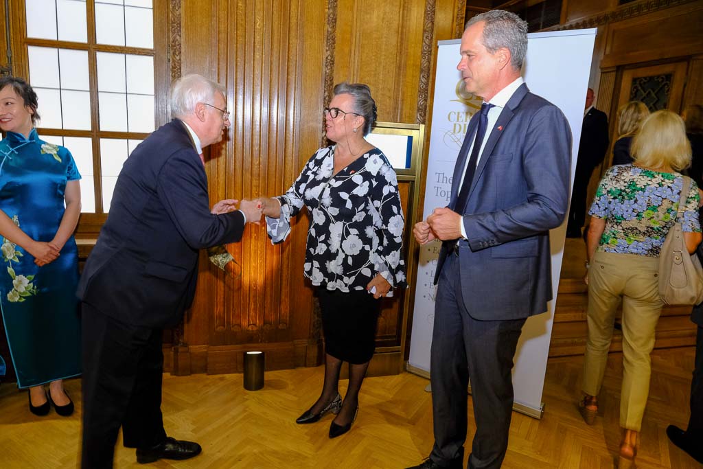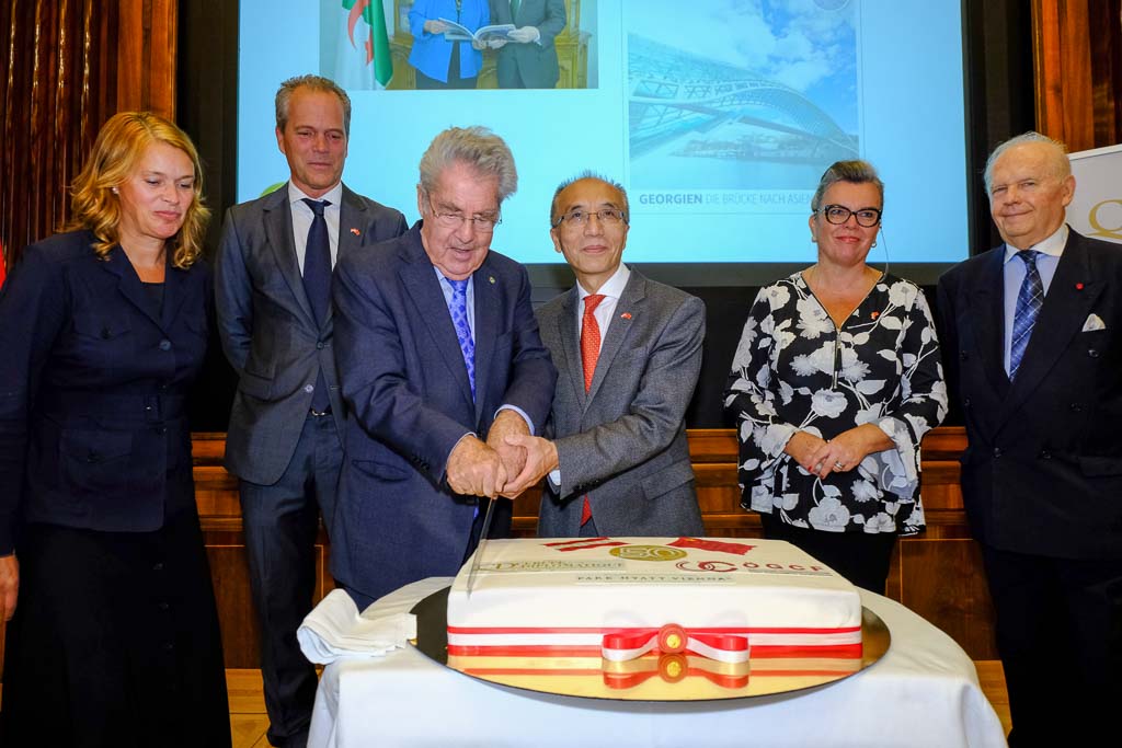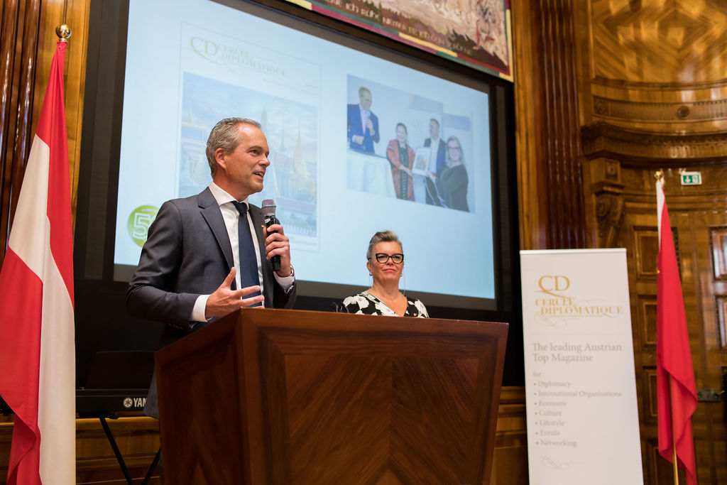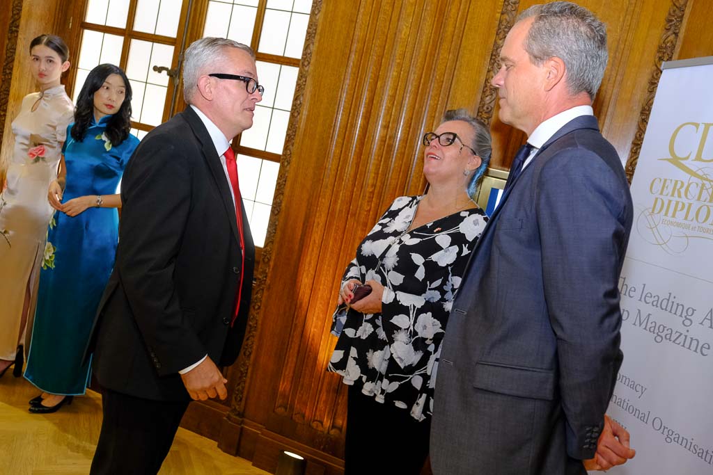Gleich drei runde Jubiläen wurden gestern gemeinsam im Park Hyatt Vienna gefeiert - 50 Jahre diplomatische Beziehungen zw. der VR China und Österreich, 50 Jahre ÖGCF (Österr.-Chinesische Gesellschaft) und 50 Jahre Cercle Diplomatique Magazin. Den rund 200 geladenen Gästen aus Diplomatie, Wirtschaft, Politik & Gesellschaft wurde in diesem eleganten Rahmen dann auch die 244-Seiten starke Jubiläumsausgabe von Cercle Diplomatique mit einer umfangreichen Coverstory über die VR China präsentiert.