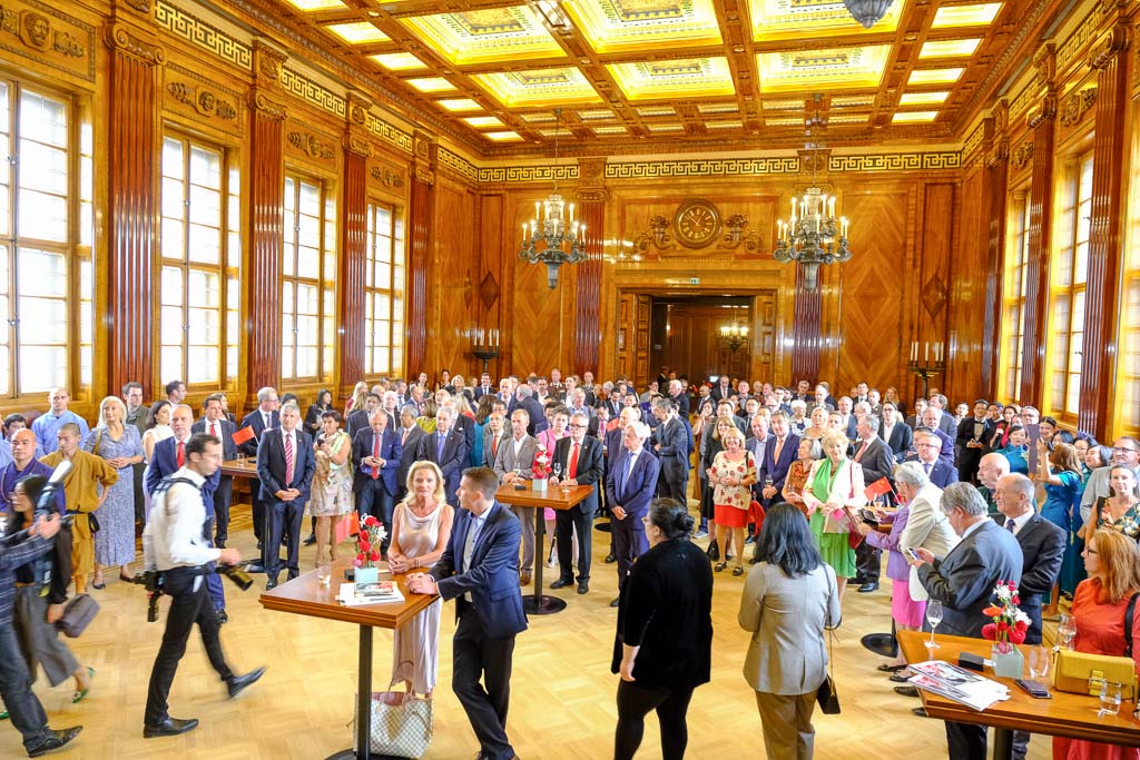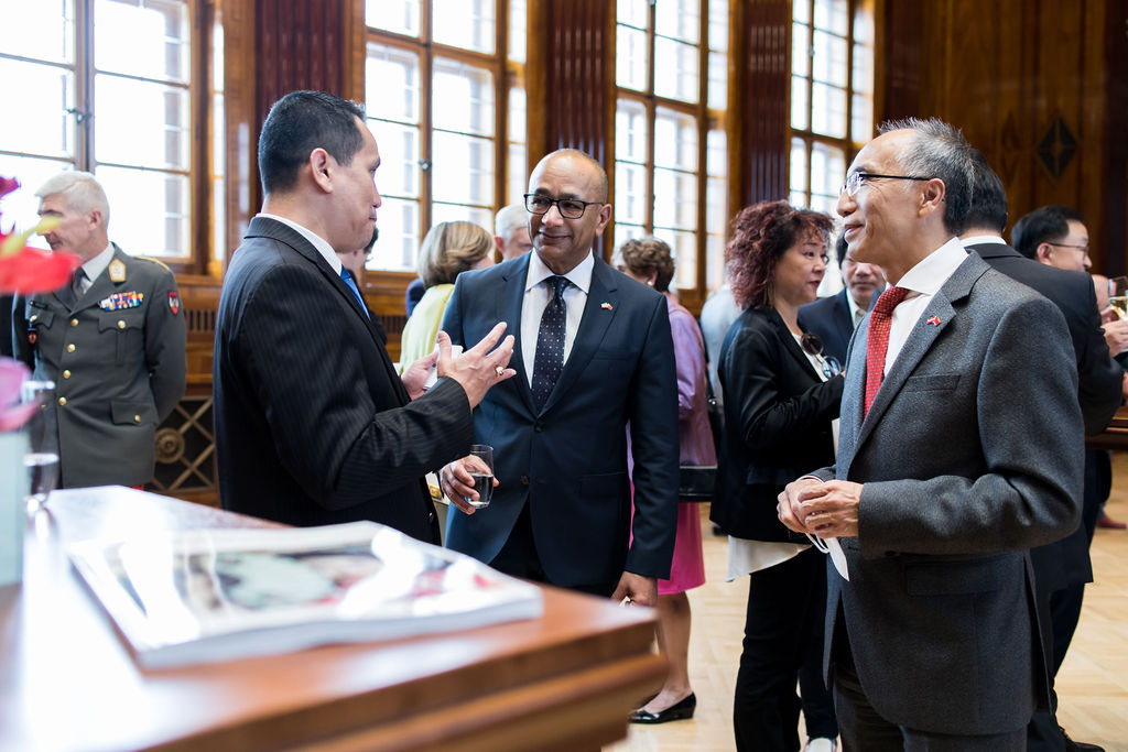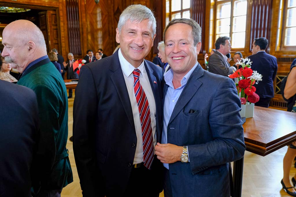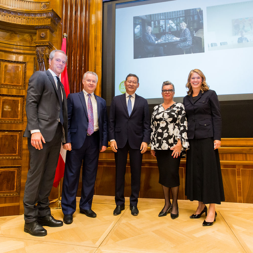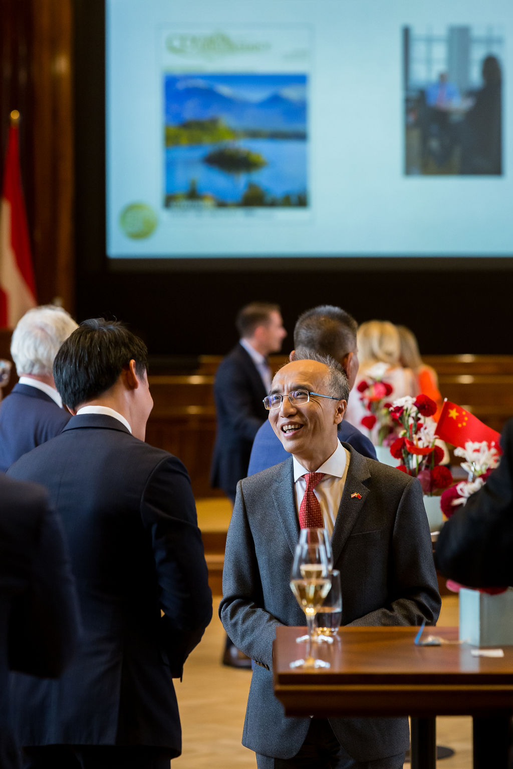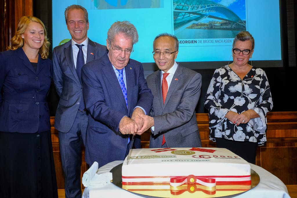 Gleich drei runde Jubiläen wurden gestern gemeinsam im Park Hyatt Vienna gefeiert - 50 Jahre diplomatische Beziehungen zw. der VR China und Österreich, 50 Jahre ÖGCF (Österr.-Chinesische Gesellschaft) und 50 Jahre Cercle Diplomatique Magazin. Den rund 200 geladenen Gästen aus Diplomatie, Wirtschaft, Politik & Gesellschaft wurde in diesem eleganten Rahmen dann auch die 244-Seiten starke Jubiläumsausgabe von Cercle Diplomatique mit einer umfangreichen Coverstory über die VR China präsentiert.