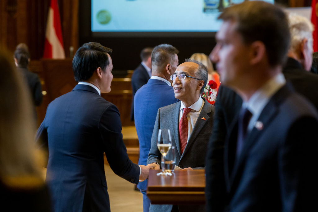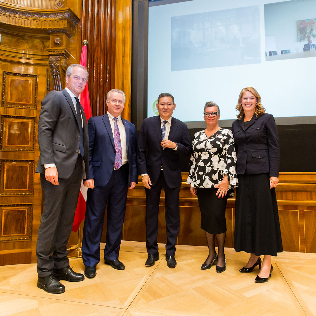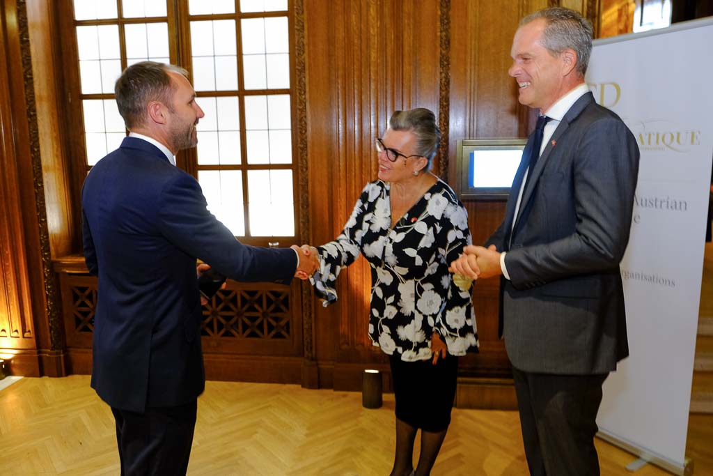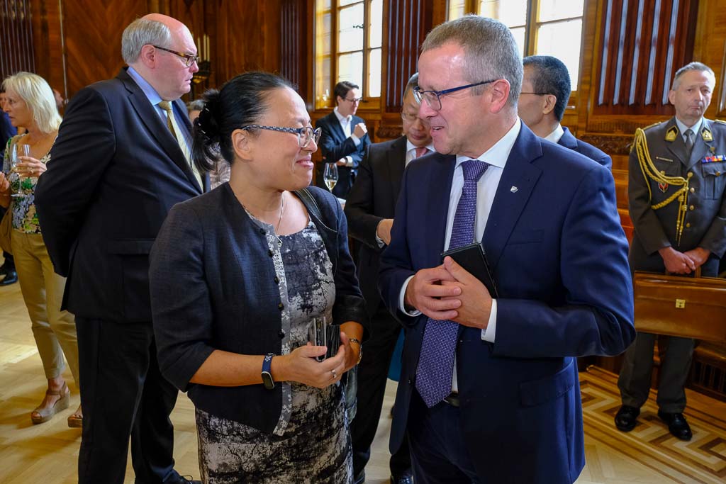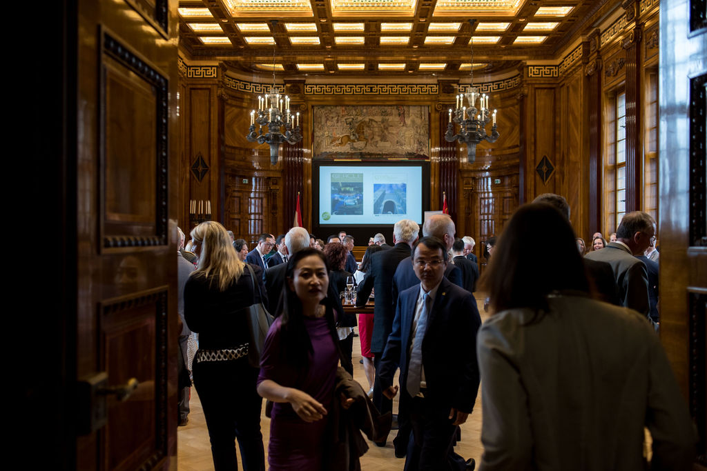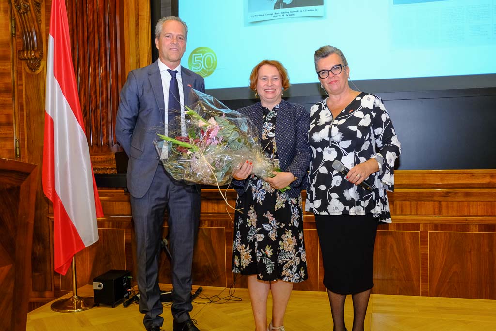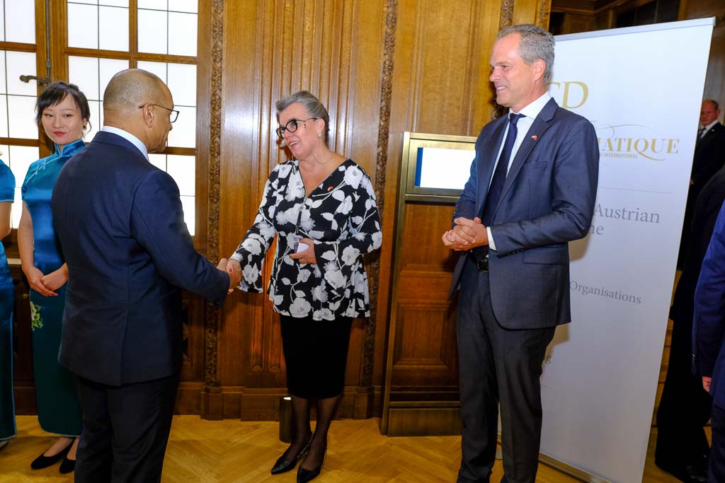 Gleich drei runde Jubiläen wurden gestern gemeinsam im Park Hyatt Vienna gefeiert - 50 Jahre diplomatische Beziehungen zw. der VR China und Österreich, 50 Jahre ÖGCF (Österr.-Chinesische Gesellschaft) und 50 Jahre Cercle Diplomatique Magazin. Den rund 200 geladenen Gästen aus Diplomatie, Wirtschaft, Politik & Gesellschaft wurde in diesem eleganten Rahmen dann auch die 244-Seiten starke Jubiläumsausgabe von Cercle Diplomatique mit einer umfangreichen Coverstory über die VR China präsentiert.