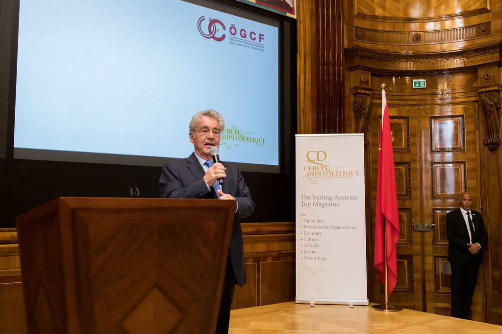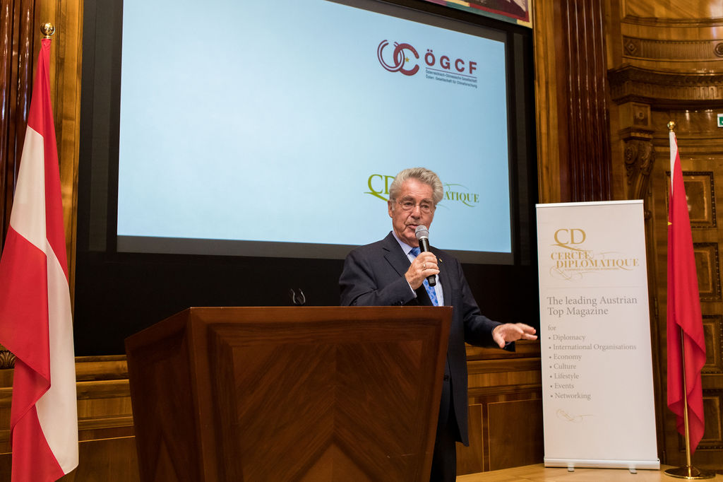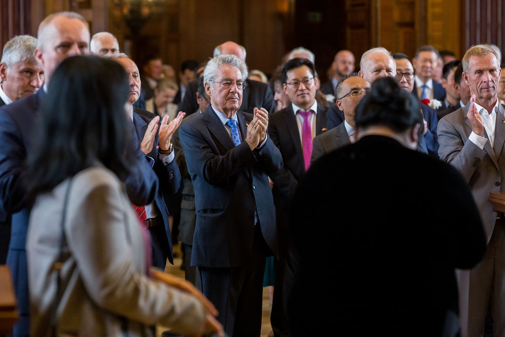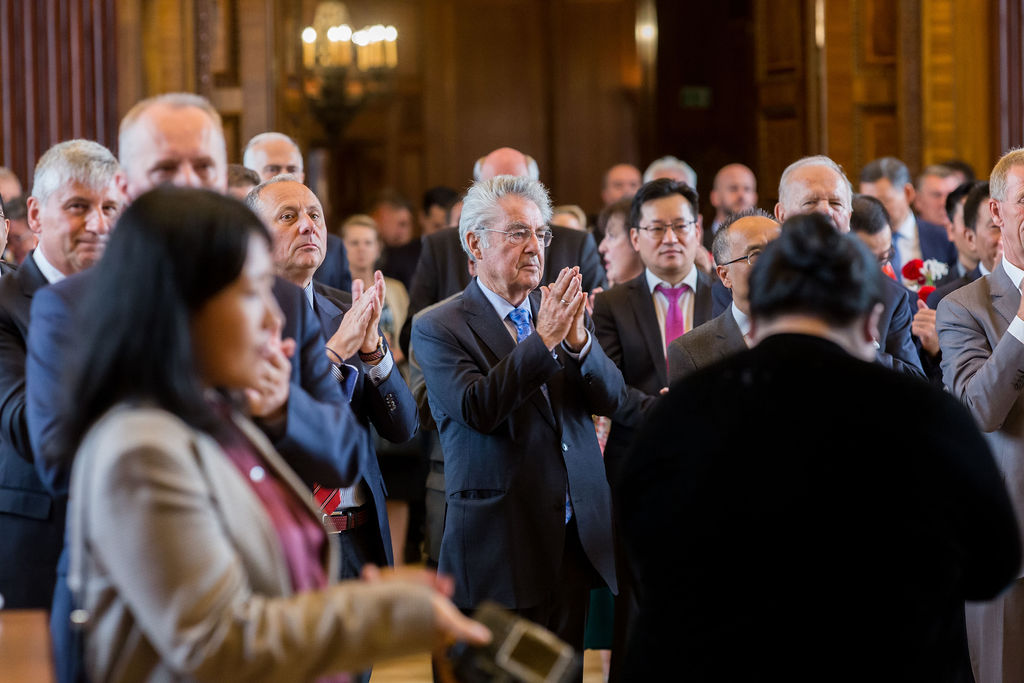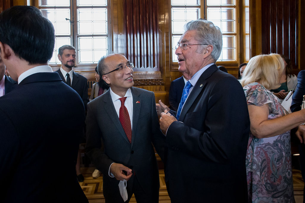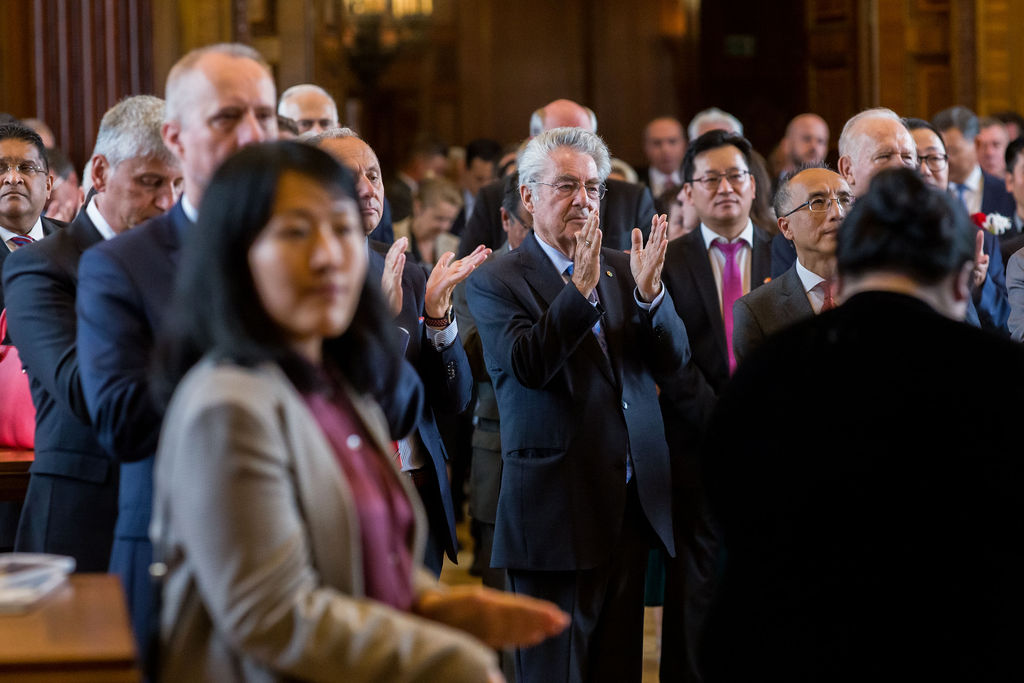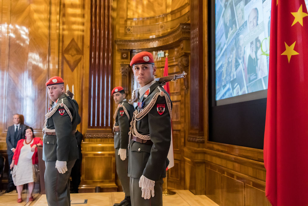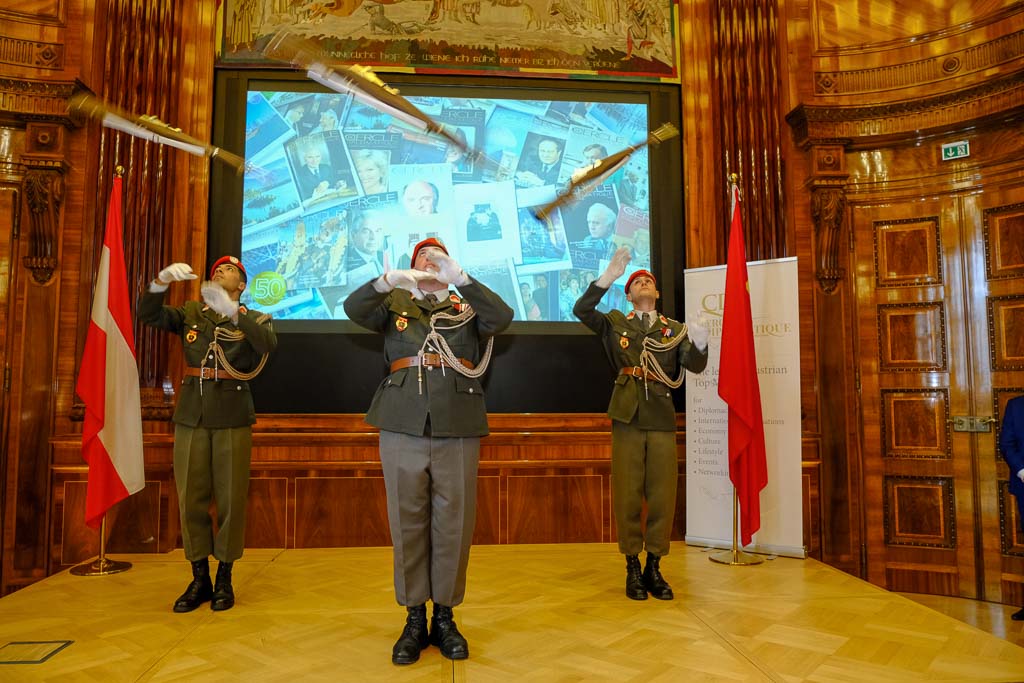 Nach der Begrüssung durch die CD-Herausgeber Andrea Fürnweger und Alexander Bursky sowie einer Grussbotschaft von General Robert Brieger, Chef des Generalstabes des österr. Bundesheeres, und einer Videobotschaft von Bundeskanzler Sebastian Kurz, gab es Festreden von Bundespräsident a.D. Heinz Fischer und S.E. LI Xiaosi, Botschafter der VR China in Österreich.
