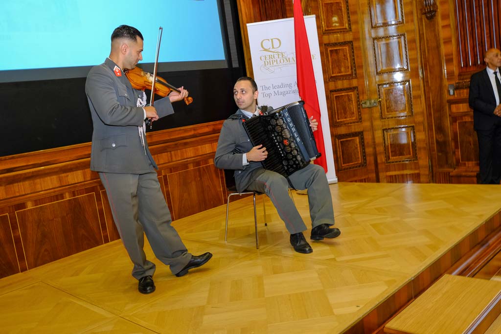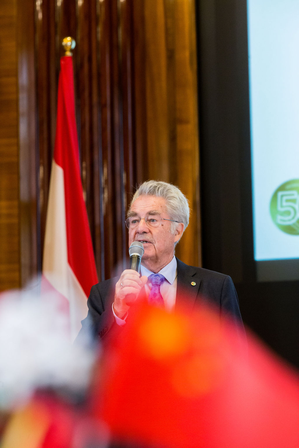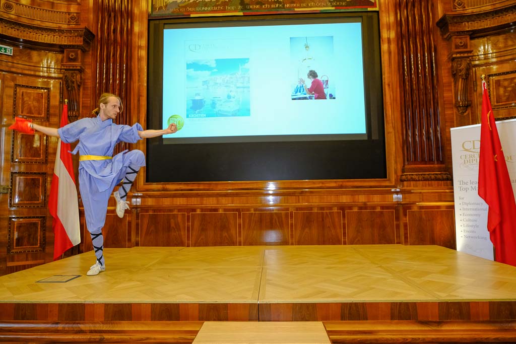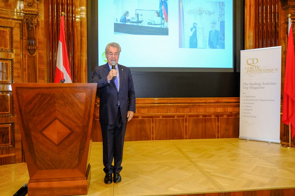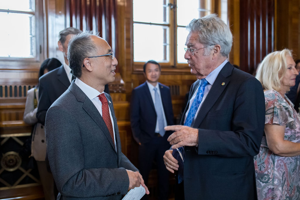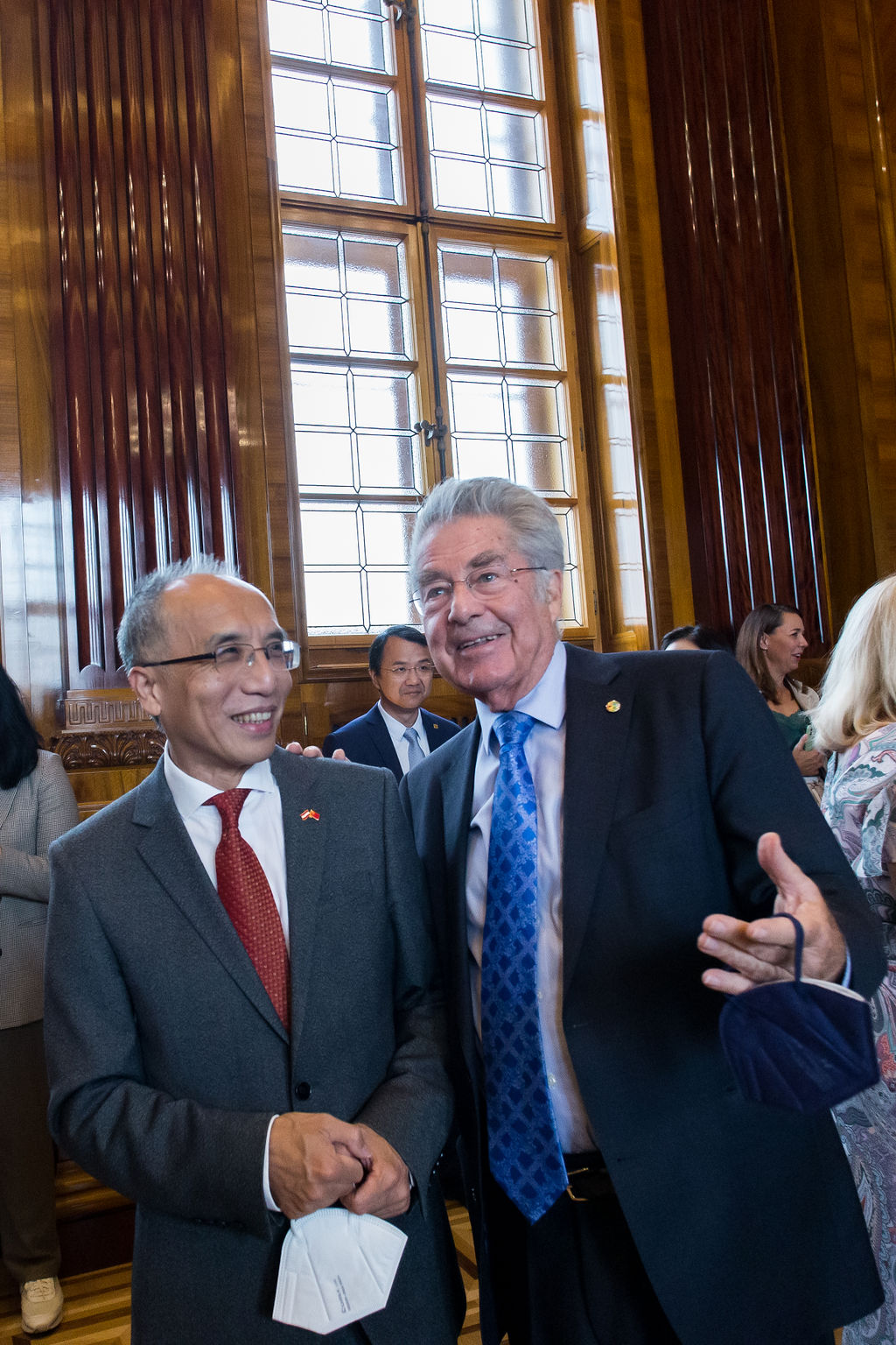 Nach der Begrüssung durch die CD-Herausgeber Andrea Fürnweger und Alexander Bursky sowie einer Grussbotschaft von General Robert Brieger, Chef des Generalstabes des österr. Bundesheeres, und einer Videobotschaft von Bundeskanzler Sebastian Kurz, gab es Festreden von Bundespräsident a.D. Heinz Fischer und S.E. LI Xiaosi, Botschafter der VR China in Österreich.