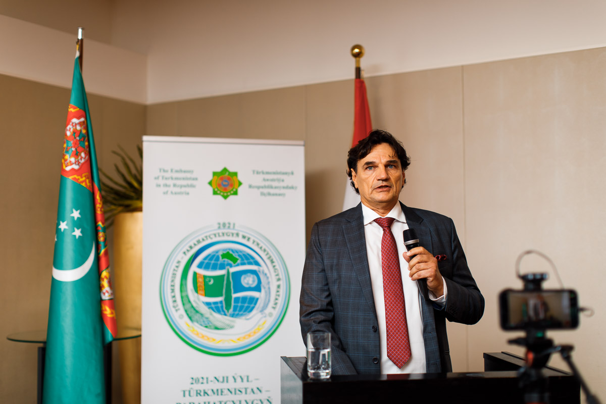 Anlässlich des 30. Jahrestages der Unabhängigkeit von Turkmenistan lud S.E. Silapberdi Nurberdiev, Botschafter von Turkmenistan in Österreich und bei den Internationalen Organisationen, zu einem Empfang in den Ballsaal des Palais Hansen Kempinski. Unterstützt wurde der Empfang von TUROPE und der Österreich-Turkmenischen Gesellschaft.