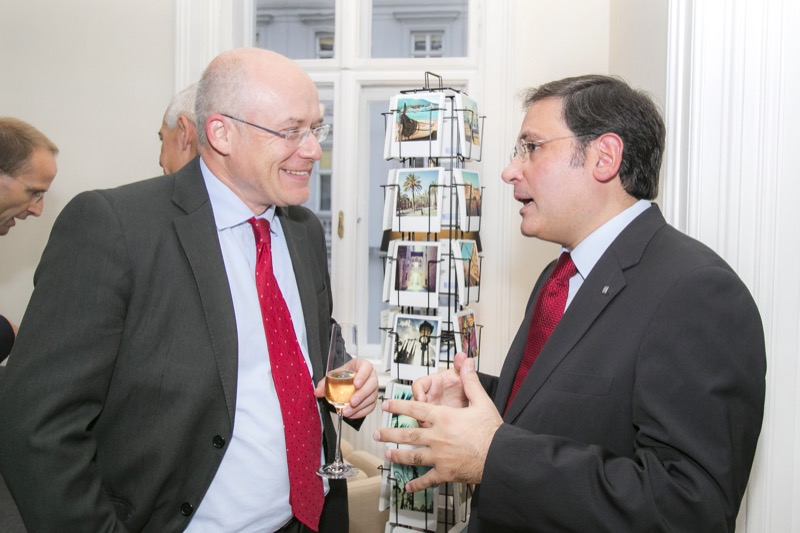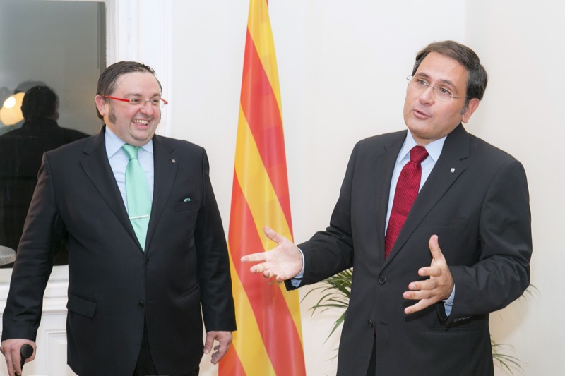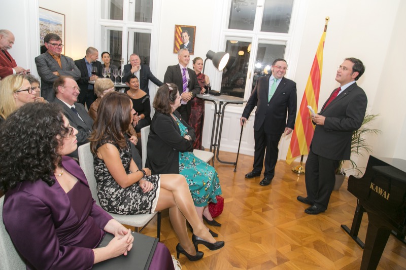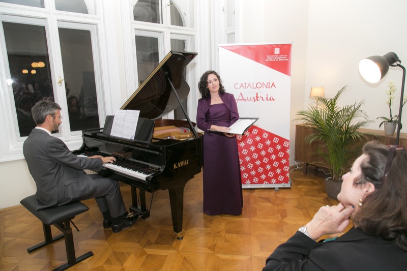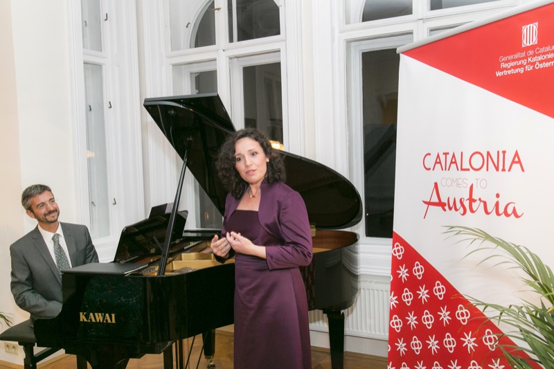Der Delegierte der katalanischen Vertretung in Österreich, Adam Casals, lud in die Räumlichkeiten der neuen Delegation, um den katalanischen Nationalfeiertag sowie die Büroeröffnung zu feiern. Nach den launigen Ansprachen des Generaldirektors für multilaterale und europäische Beziehungen der Regierung Kataloniens, Herr Manuel Manonelles, und dem Delegierten der Katalanischen Vertretung für Österreich, Herr Adam Casals, gab es eine musikalische Darbietung der Werke von Eduard Toldrà, wiedergegeben durch den Pianisten Emili Blanco und die Sopranistin Elena Copons. Kulinarisch wurden die Gäste mit einem katalanischen Degustationsmenü verwöhnt.