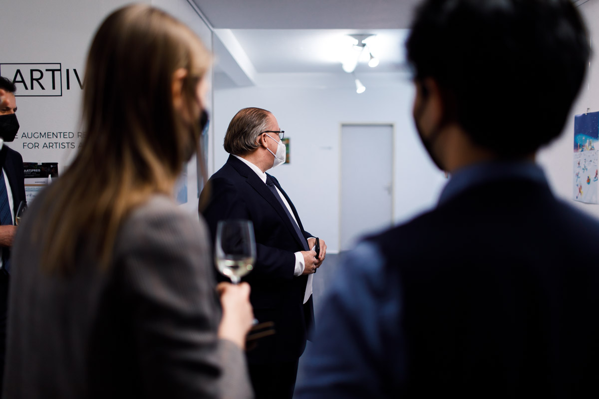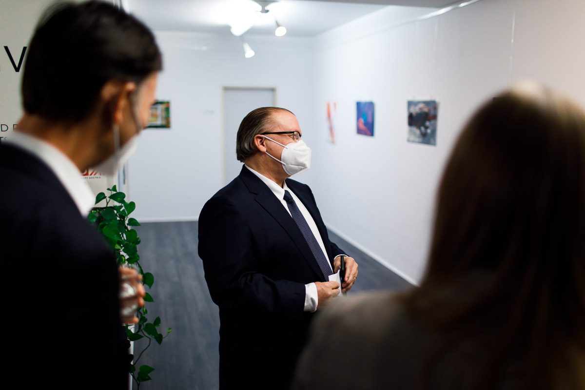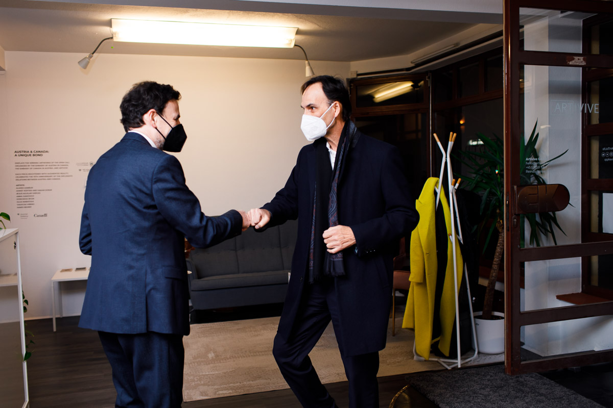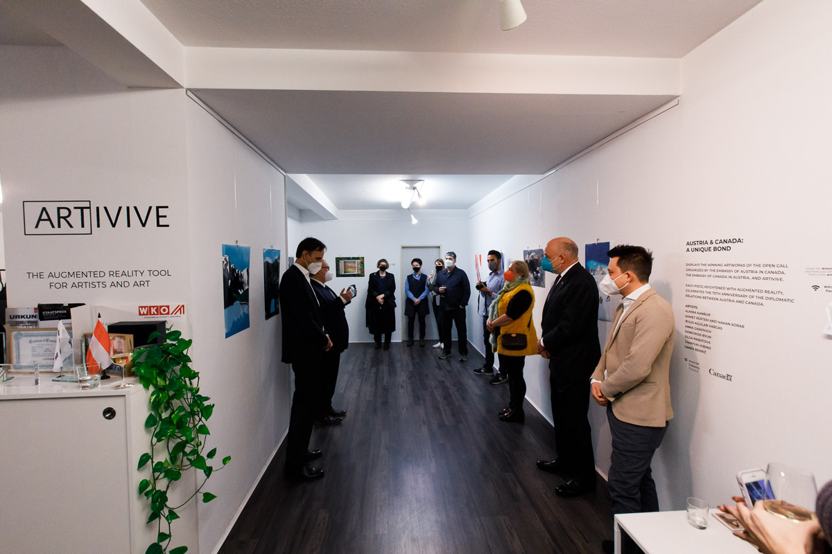 Anlässlich der Aufnahme diplomatischer Beziehungen zwischen Österreich und Kanada vor 70 Jahren lud S.E. Troy Lulashnyk, Botschafter von Kanada in Österreich, zu einer Ausstellung, bei der die Siegerkunstwerke des Wettbewerbs "Austria & Canada: a unique bond" zu sehen waren.
