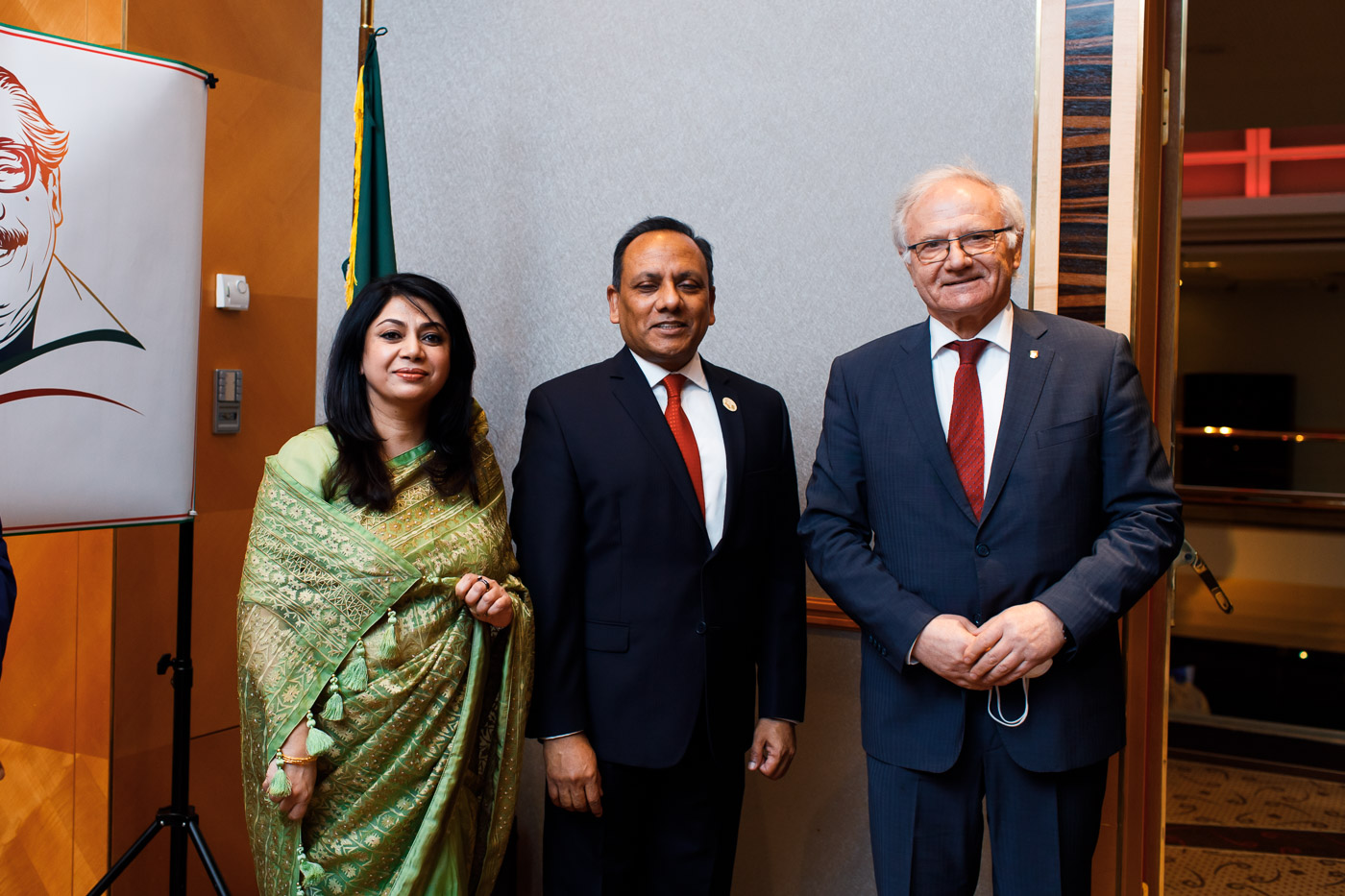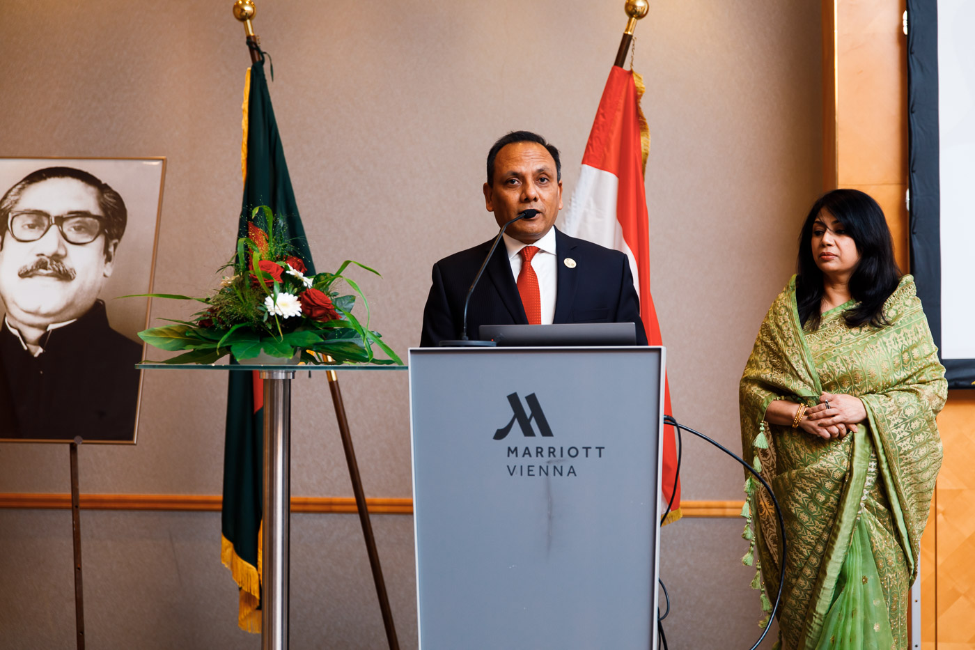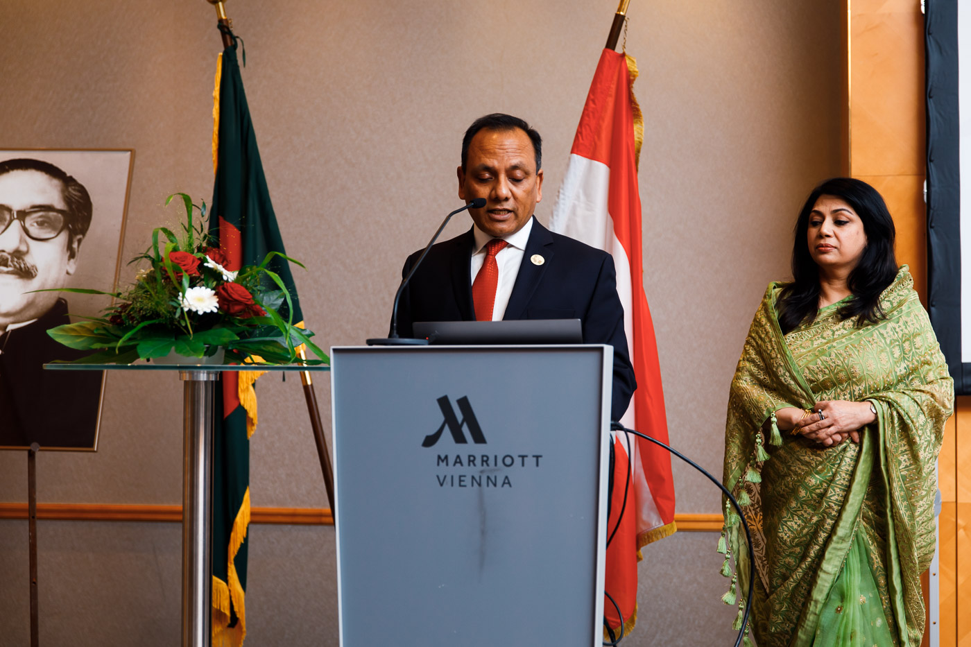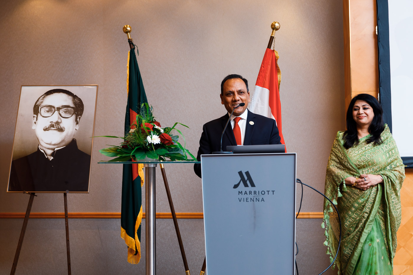 Anlässlich des Unabhängigkeits- und Nationalfeiertages der Volksrepublik Bangladesh lud S.E. Muhammad Muhith, Botschafter von Bangladesh in Österreich, und Frau Ruby Parveen zu einem Empfang in das Vienna Marriott. Auch auf 50 Jahre diplomatische Beziehungen zwischen Bangladesh und Österreich wurde angestossen.