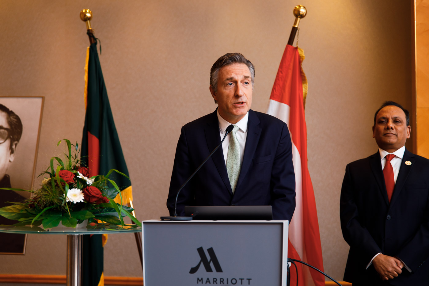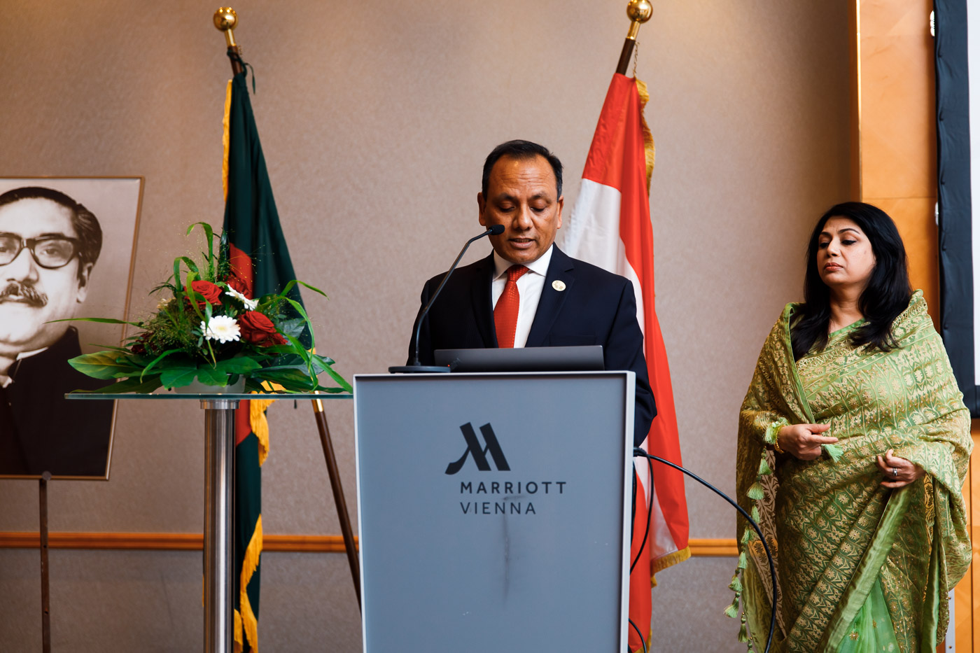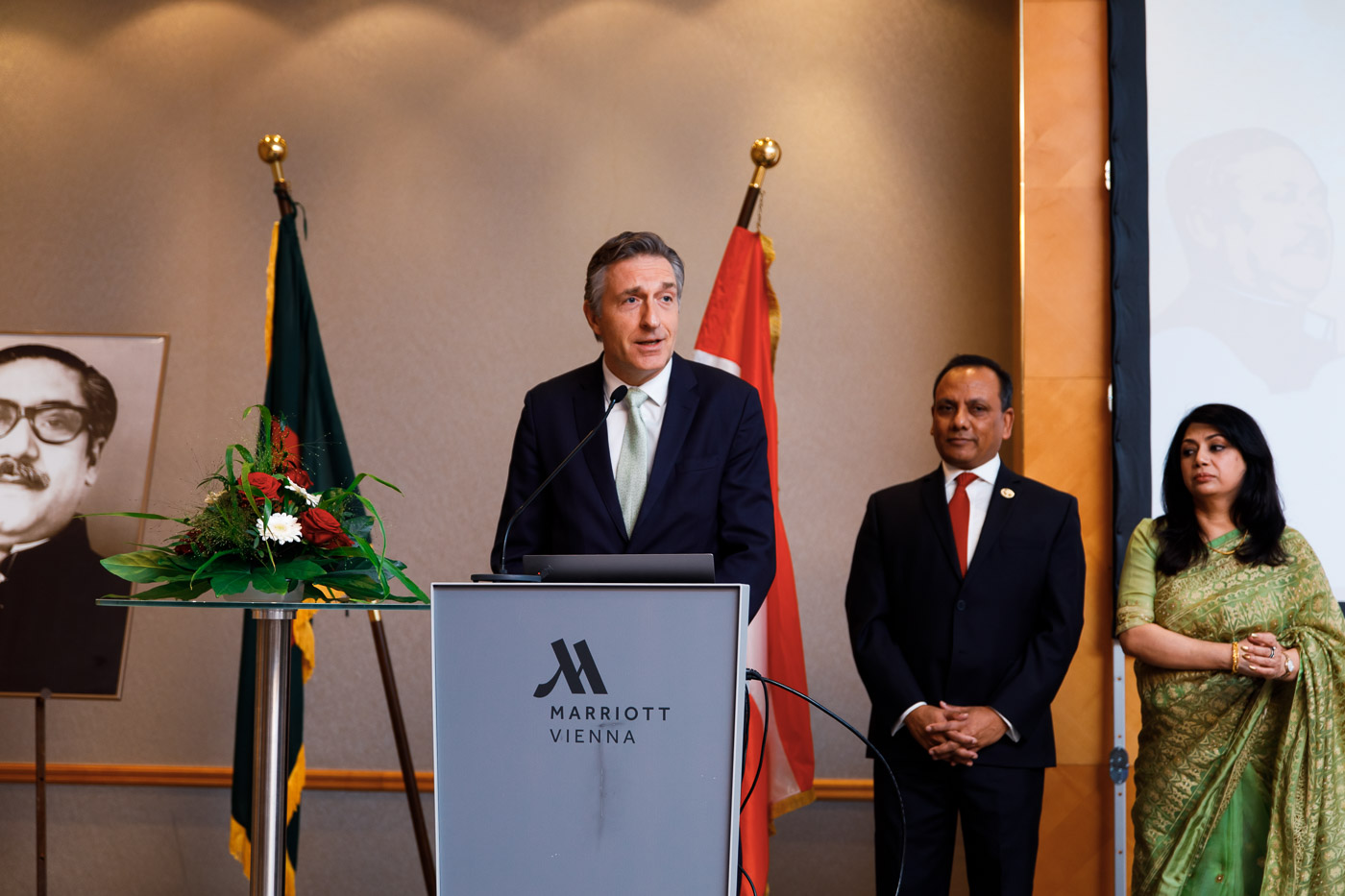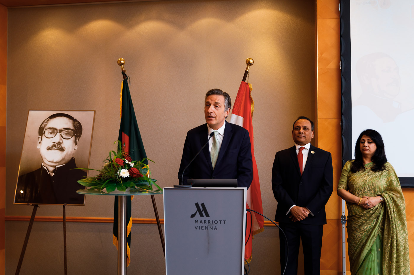 Anlässlich des Unabhängigkeits- und Nationalfeiertages der Volksrepublik Bangladesh lud S.E. Muhammad Muhith, Botschafter von Bangladesh in Österreich, und Frau Ruby Parveen zu einem Empfang in das Vienna Marriott. Auch auf 50 Jahre diplomatische Beziehungen zwischen Bangladesh und Österreich wurde angestossen.