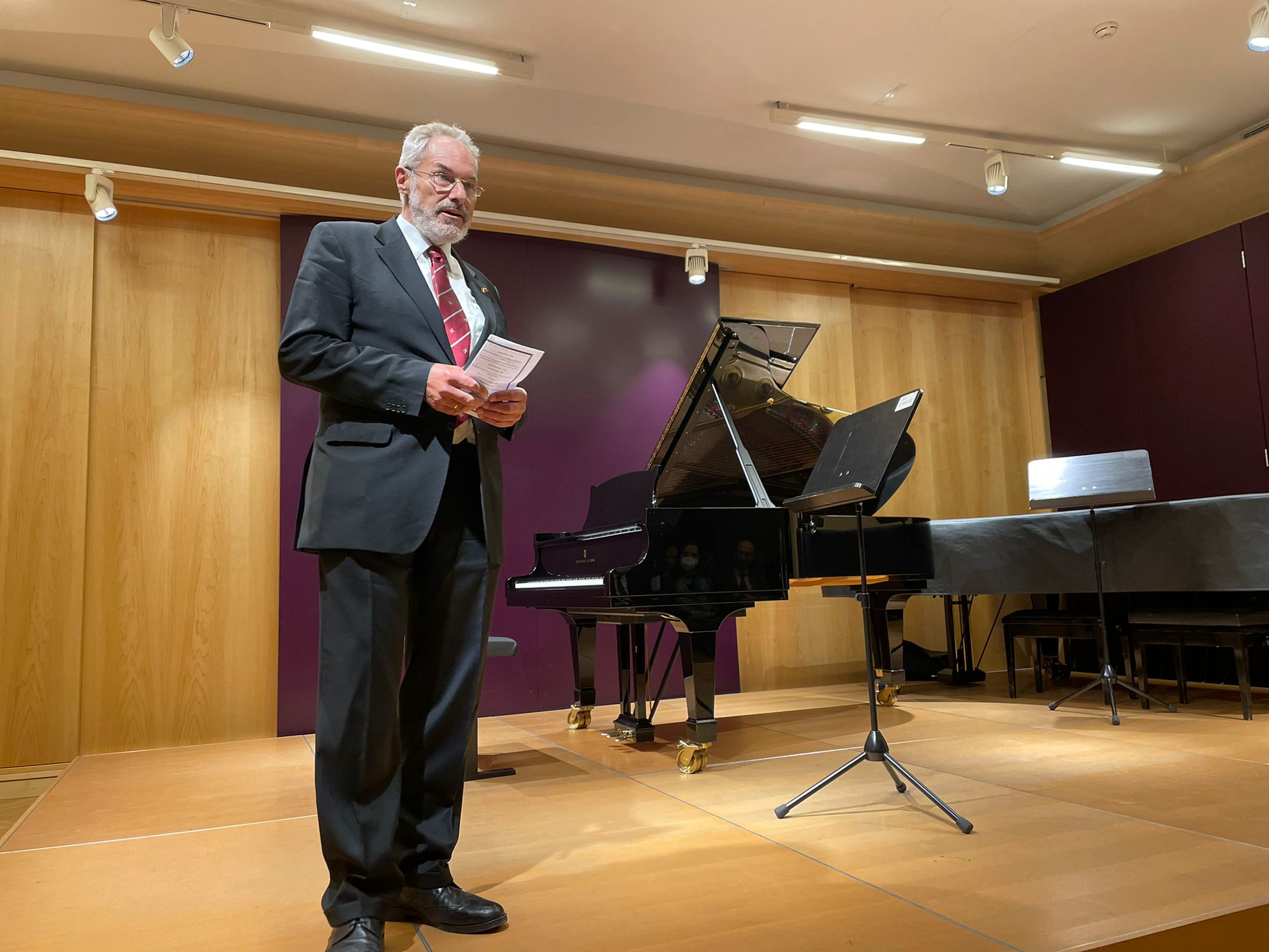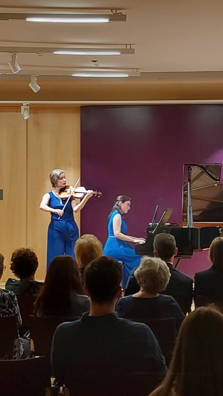 Die Österreichisch-Litauische und die Österreichisch-Rumänische Gesellschaft veranstalteten am 3. Mai 2022 im Vorfeld des Europatages ein Konzert im Festsaal der Universität für Musik und darstellende Kunst – mdw unter dem Motto „Musikalische Brücken Europa“. mdw-Professor Wolfgang Klos, Präsident der Österreichisch-Litauischen Gesellschaft, und mdw-Professorin Ioana Cristina Goicea an den Streichinstrumenten und Veronika Kopjova und Adela Liculescu am Klavier spielten Werke von Mozart, Fauré, Čiurlionis, Bartulis und Beethoven im Beisein des litauischen Botschafters Donatas Kušlys und der rumänischen Botschaftsrätin Melanie Blendea vor vollem Saal.