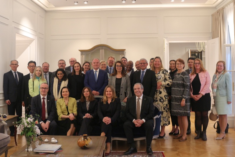 I.E. Corinne Kitsell, Botschafterin des Vereinigten Königreichs bei der UN, und S.E. Miguel Camilo Ruiz, Botschafter von Kolumbien, organisierten ein Zusammenkommen der 'Freundesgruppe für die Gleichstellung der Geschlechter und Stärkung von Frauen in der UNOV und UNODC mit der Generaldirektorin der UNOV/UNODC, Frau Ghada Waly, in der Residenz des Botschafters.