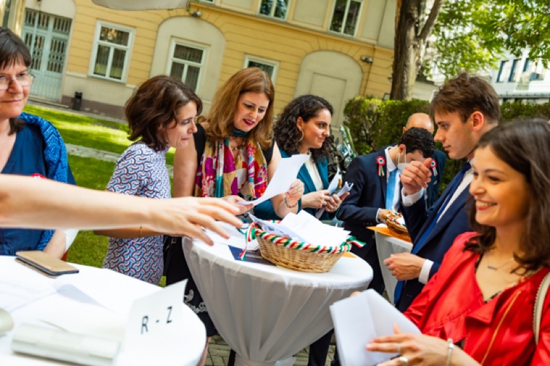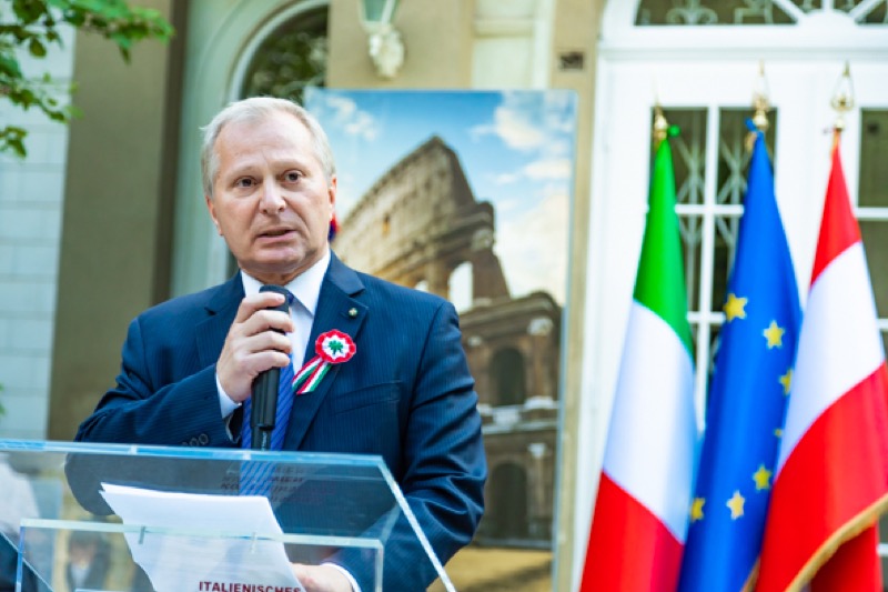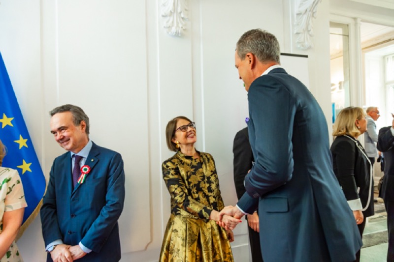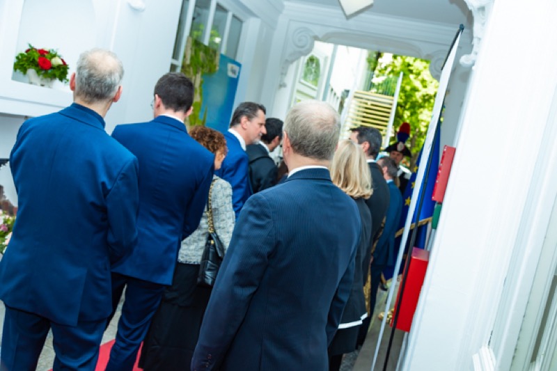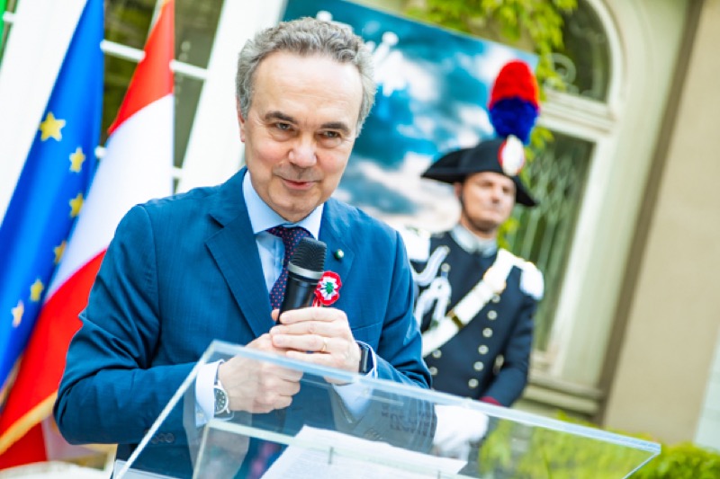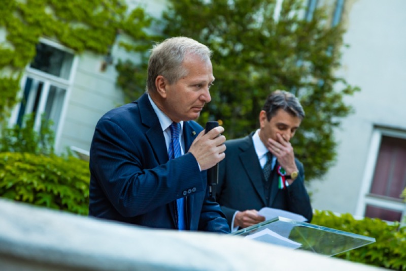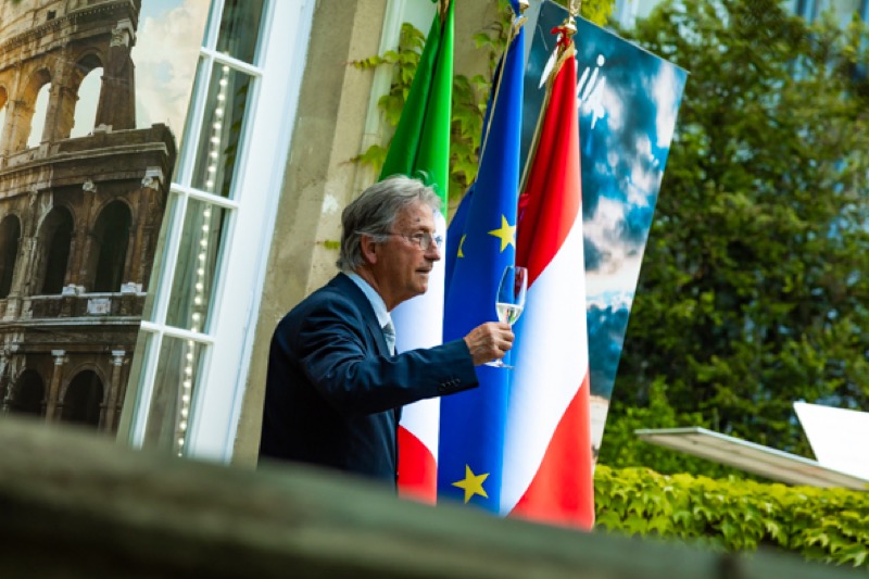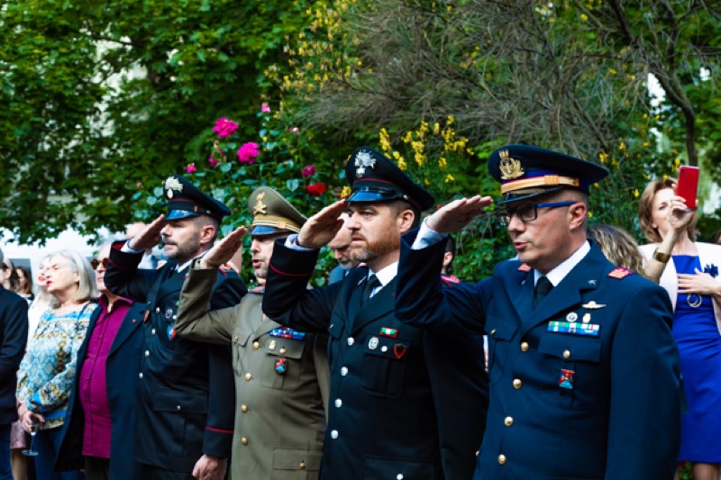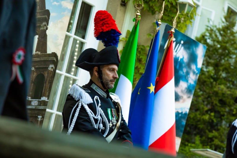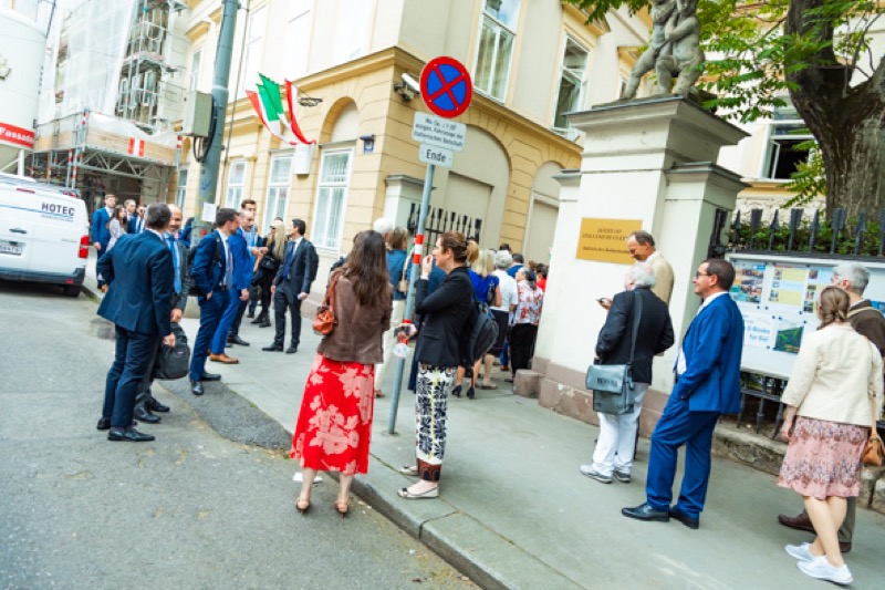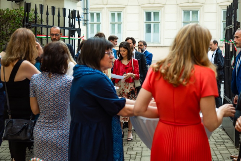 Anlässlich des Nationalfeiertages luden S.E. Stefano Beltrame, Botschafter der Republik Italien, S.E. Alessandro Cortese, ständiger Vertreter bei den Internationalen Organisationen und S.E. Stefano Baldi, ständiger Vertreter bei der OSZE, zu einem Empfang in den Garten des italienischen Kulturinstitutes.