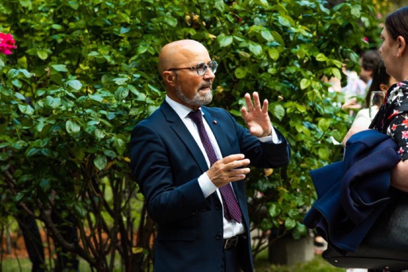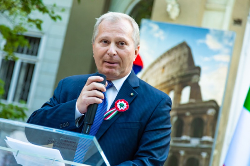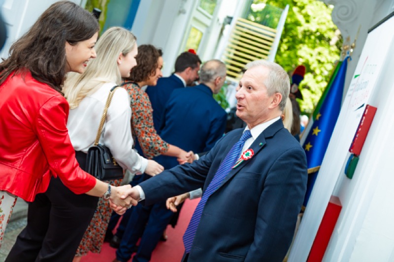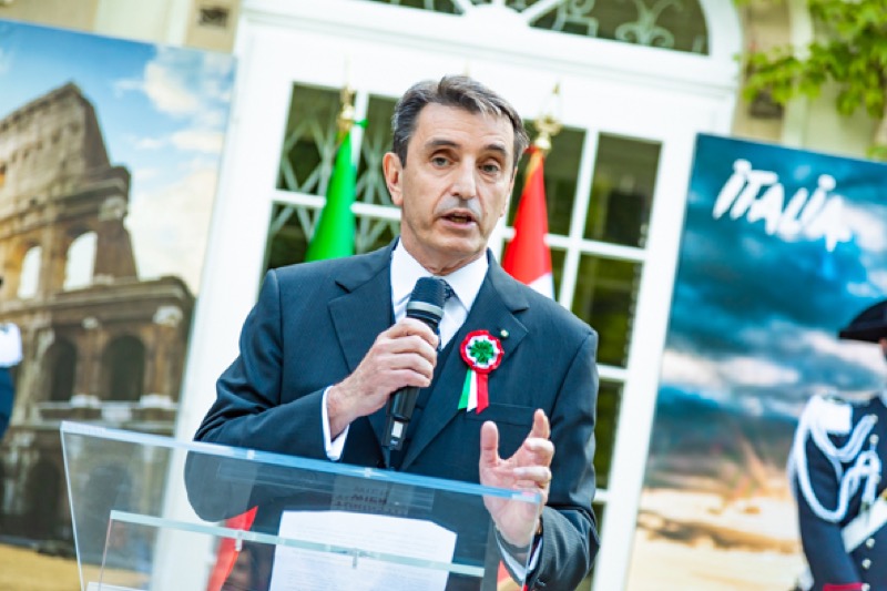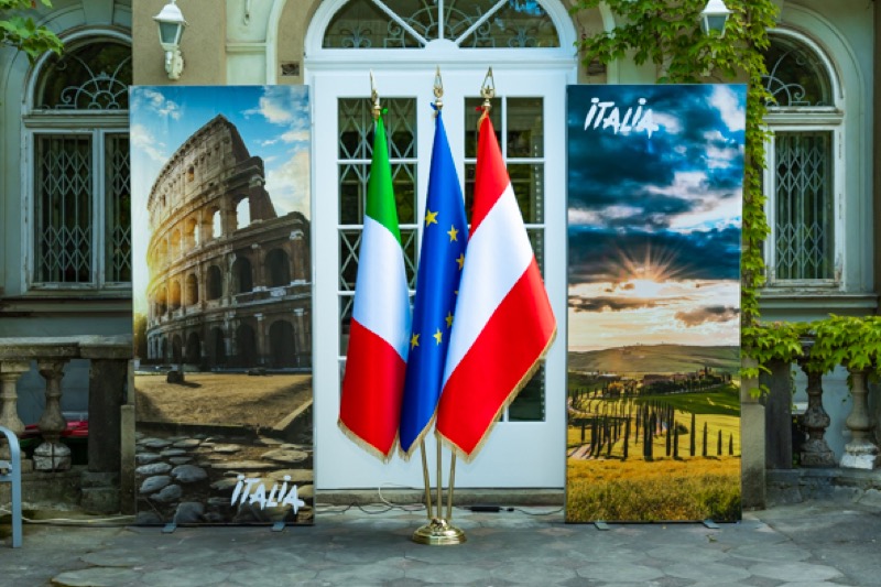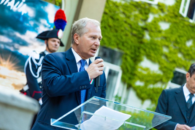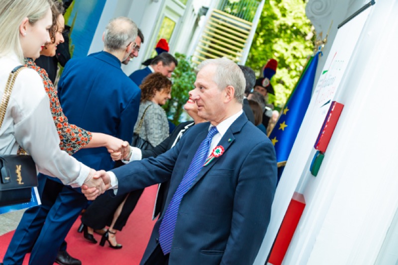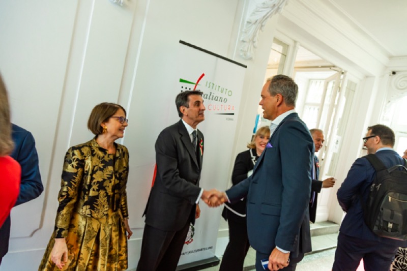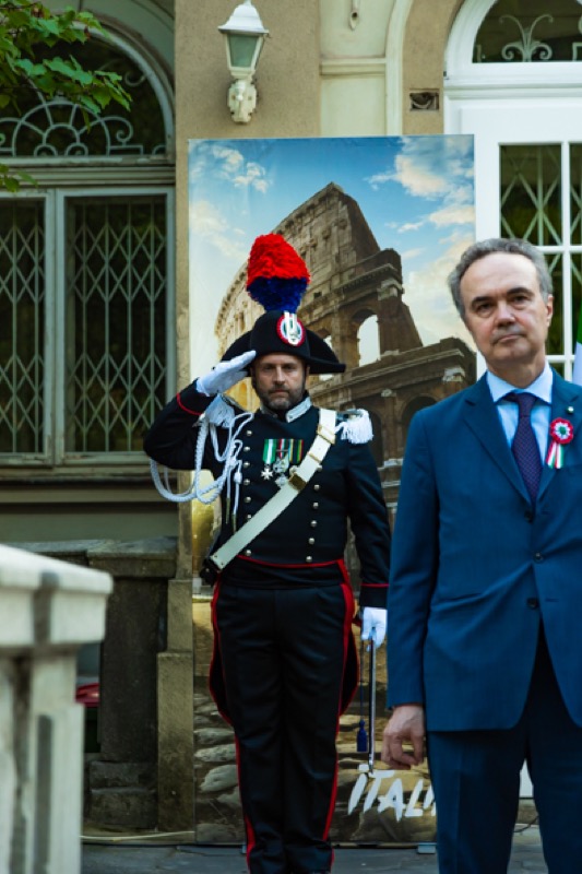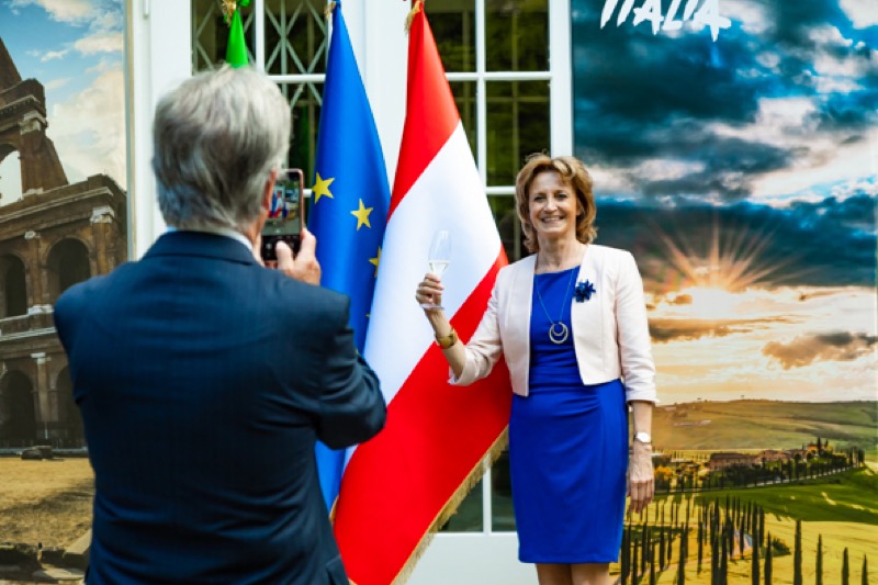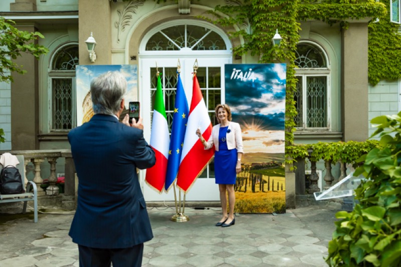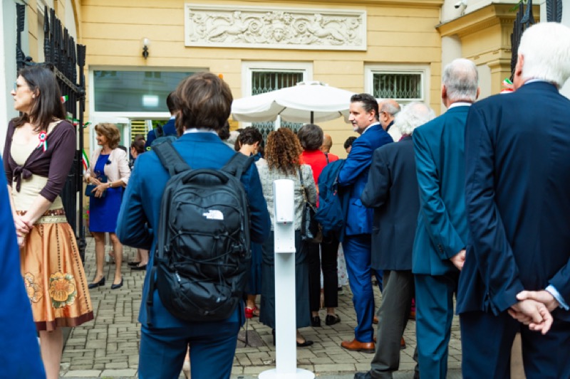 Anlässlich des Nationalfeiertages luden S.E. Stefano Beltrame, Botschafter der Republik Italien, S.E. Alessandro Cortese, ständiger Vertreter bei den Internationalen Organisationen und S.E. Stefano Baldi, ständiger Vertreter bei der OSZE, zu einem Empfang in den Garten des italienischen Kulturinstitutes.