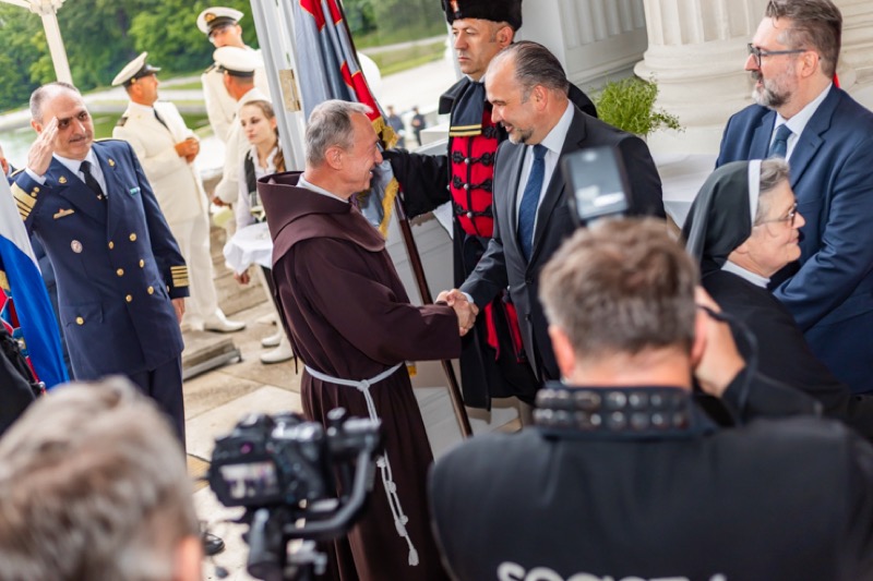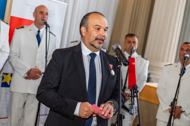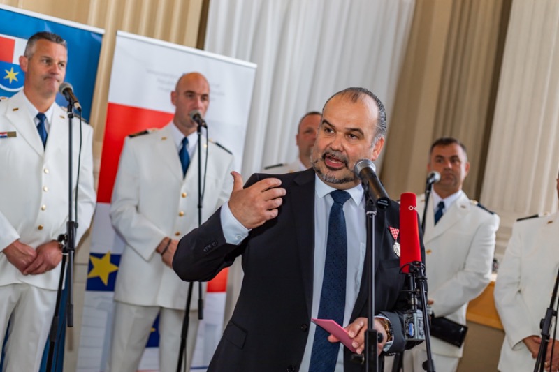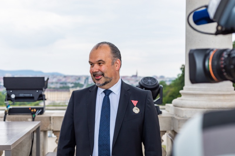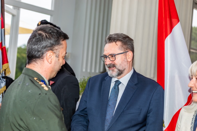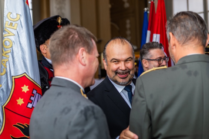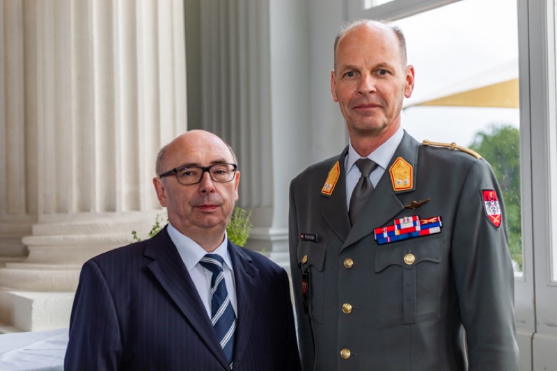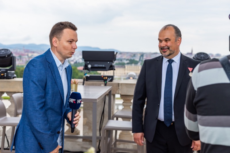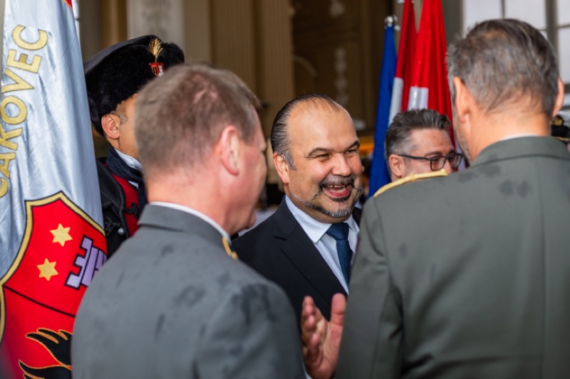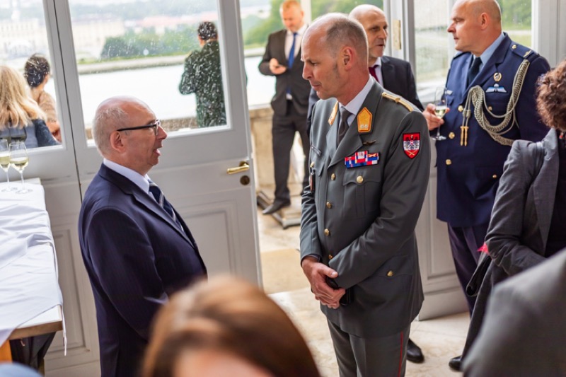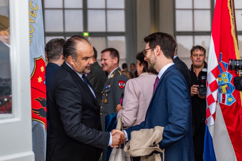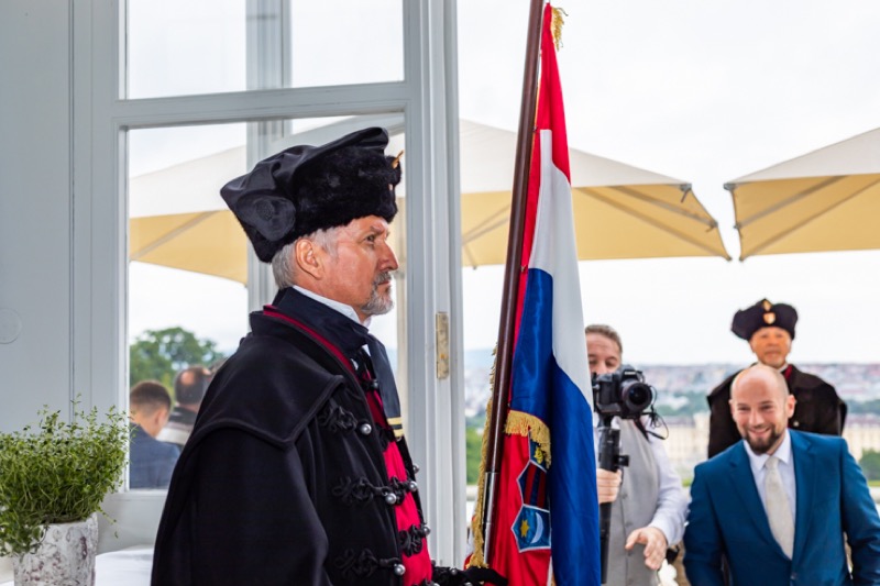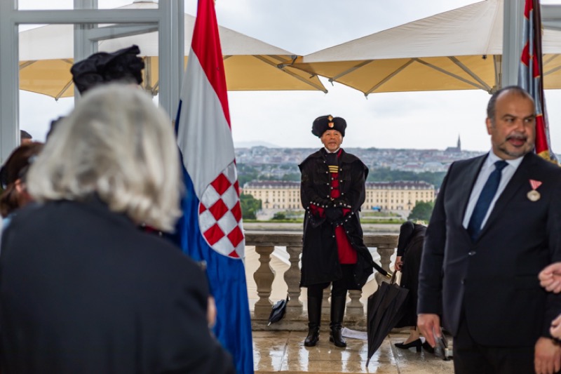 Anlässlich des Nationalfeiertages, des Tags der Streitkräfte und des 30. Jahrestages der internationalen Anerkennung Kroatiens, luden S.E. Daniel Gluncic, Botschafter der Republik Kroatien, S.E. Mario Horvatic, Botschafter Kroatiens bei der OSZE, der UNO und den Internationalen Organisationen in Wien sowie der Verteidigungsattaché Oberst Mijo Cubic zu einem Empfang in die Gloriette im Schlosspark Schönbrunn.