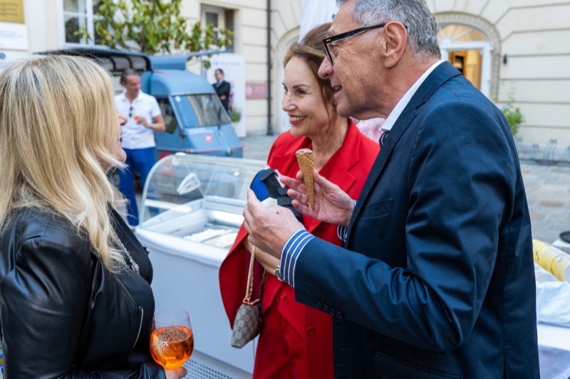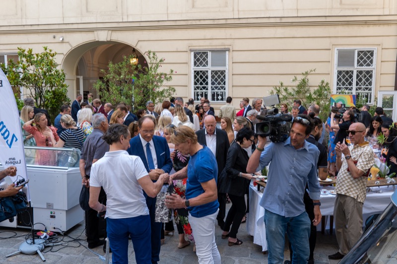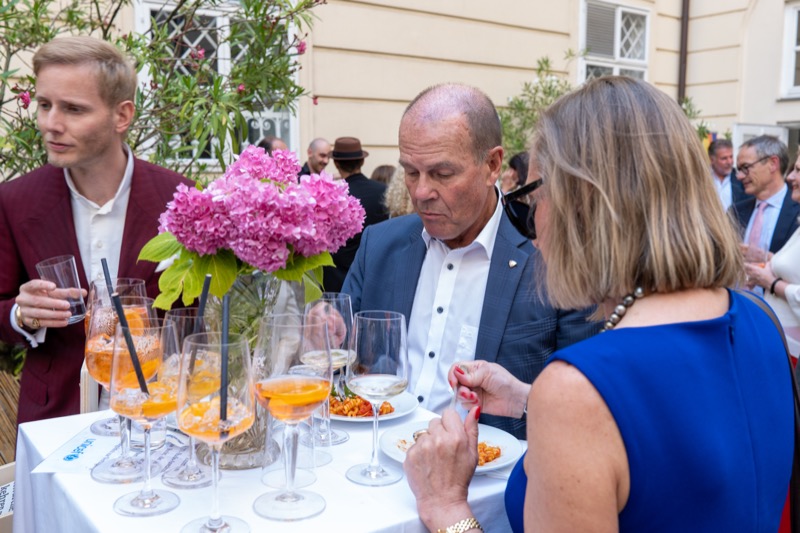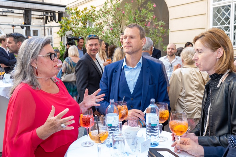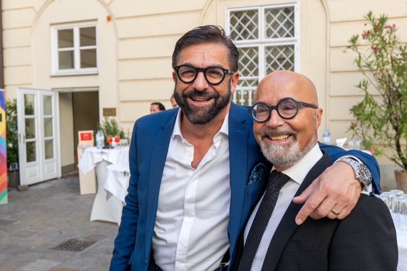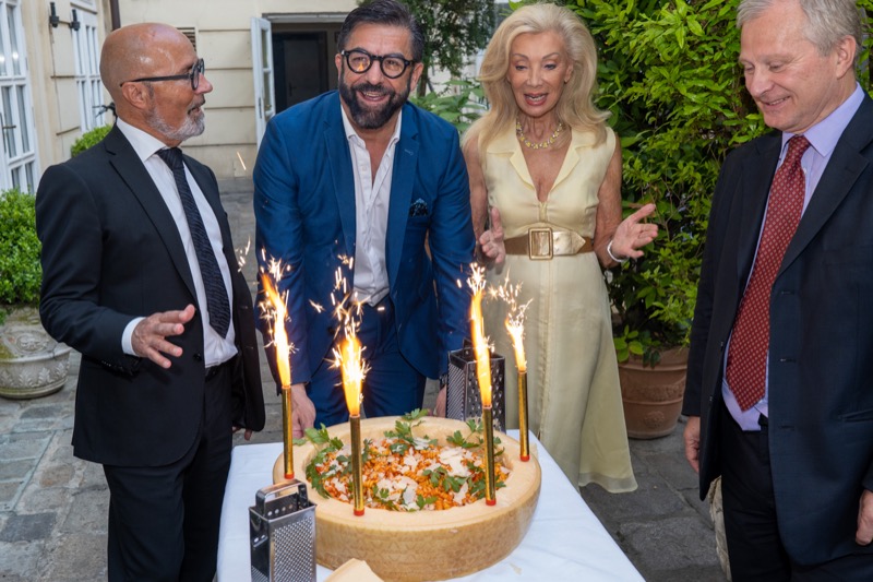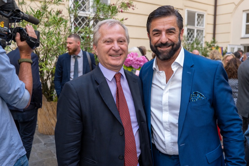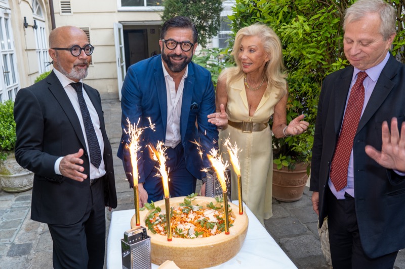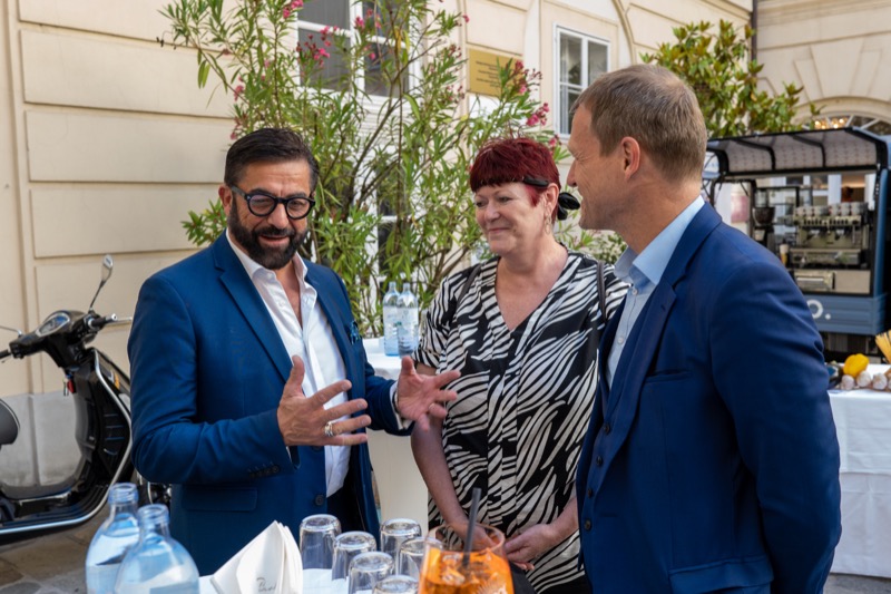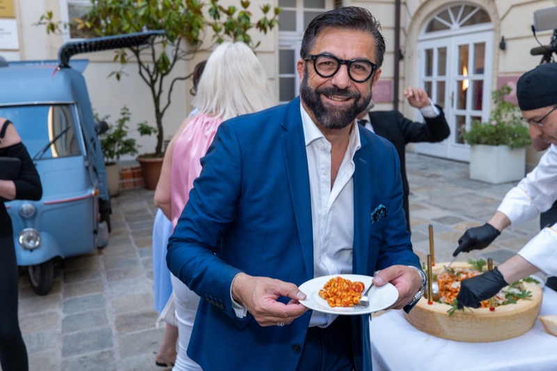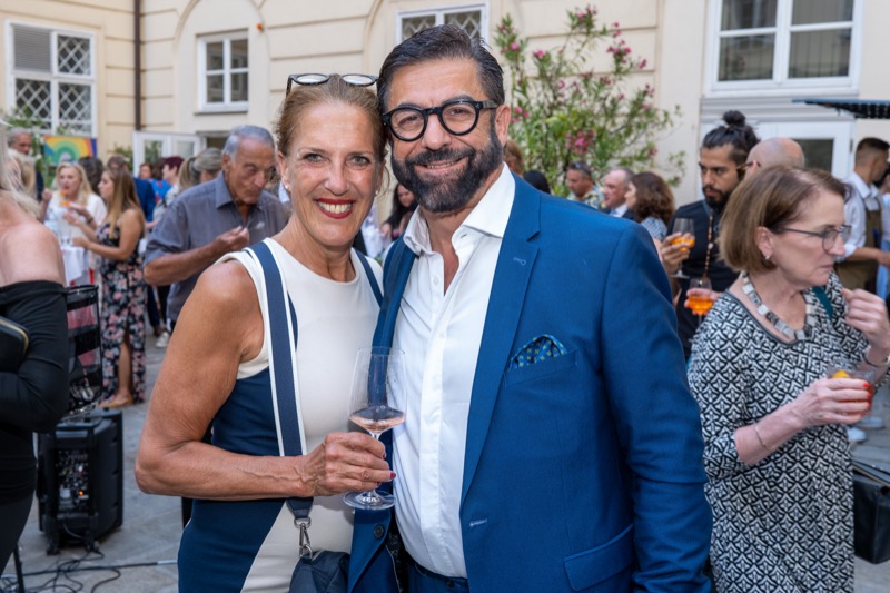 Der Journalist, Netzwerker und ehemaliger Künstlermanager von Donna Leon, Mauro John Maloberti, lud auch heuer wieder 100 Freunde und Wegbegleiter zu seinem Geburtstag in den Innenhof der beliebte Pizzeria Regina Margherita, Palais Esterhazy.