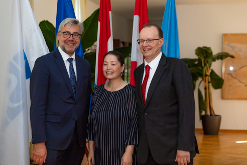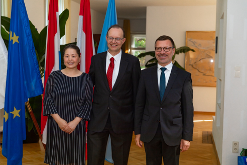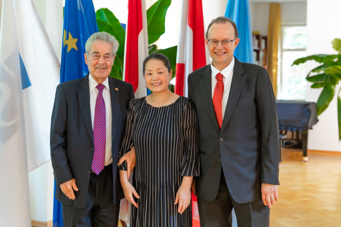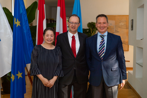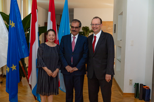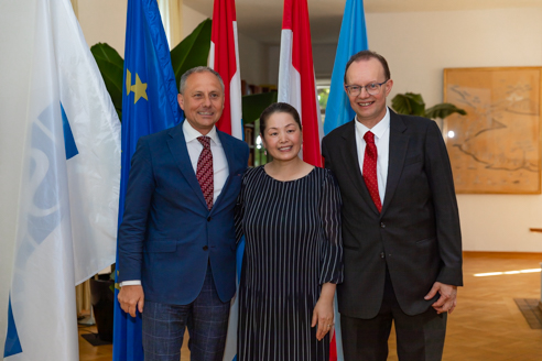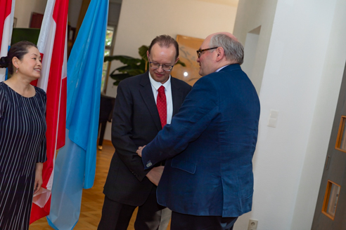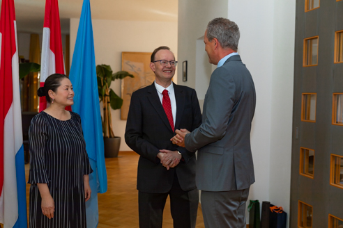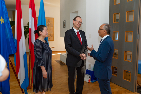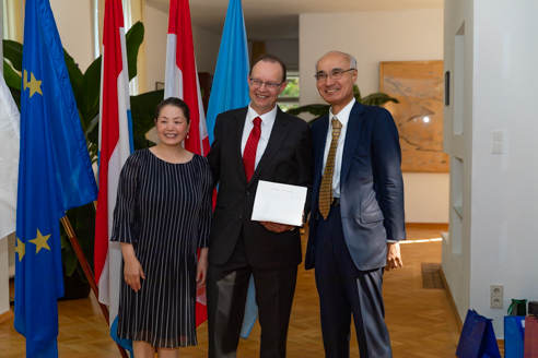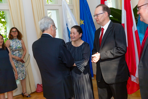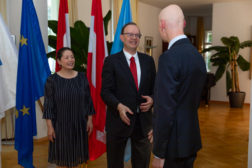 Anlässlich des Nationalfeiertages von Luxemburg und seiner Verabschiedung aus Wien luden der Botschafter von Luxemburg, S.E. Marc Ungeheuer, und Frau Lili Shan zu einem Empfang in die Residenz des Botschafters.
