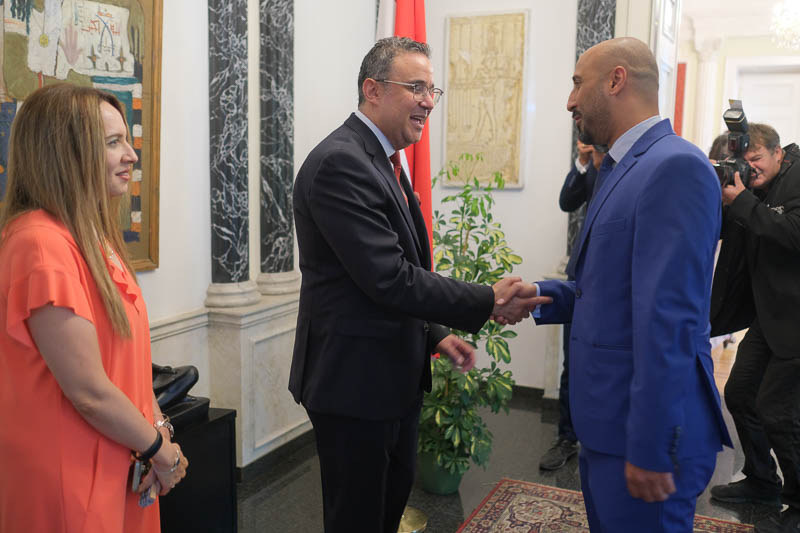 Anlässlich des 70. Nationalfeiertages der arabischen Republik Ägypten luden der Botschafter sowie ständige Vertreter Ägyptens bei den internationalen Organisationen, S.E. Mohamed Elmolla, zu einem Empfang in die Botschaft.