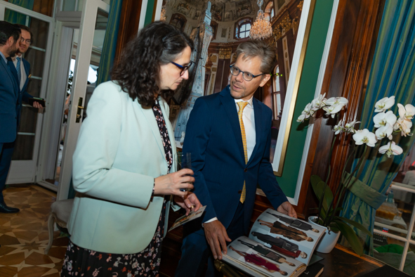 Der Schweizerische Botschafter in Österreich, S.E. Walter Haffner, und Frau Tamar Haffner luden zur Soirée Suisse in die Botschaft. Nach der Begrüßung folgte eine Präsentation der SpaceHopper und die Eröffnung des Akris Corner. Danach gab es den Empfang mit köstlichen Schweizer Spezialitäten und musikalische Umrahmung durch die Easy Riders.