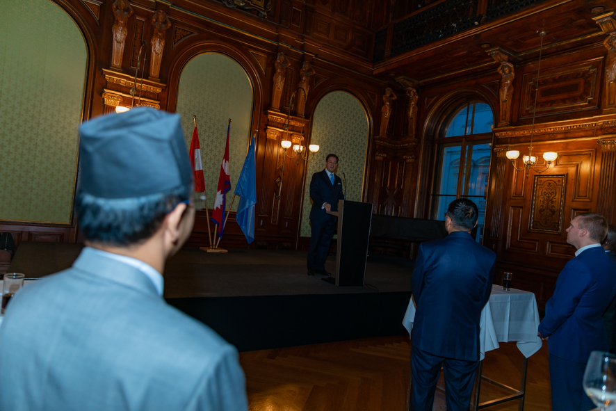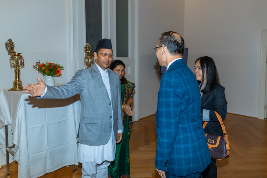 Anlässlich des Nationalfeiertages luden S.E. Bharat Kumar Regmi, Botschafter und ständiger Vertreter von Nepal, und Frau Shanti Poudel Regmi zu einem Empfang in das Haus der Ingenieure.