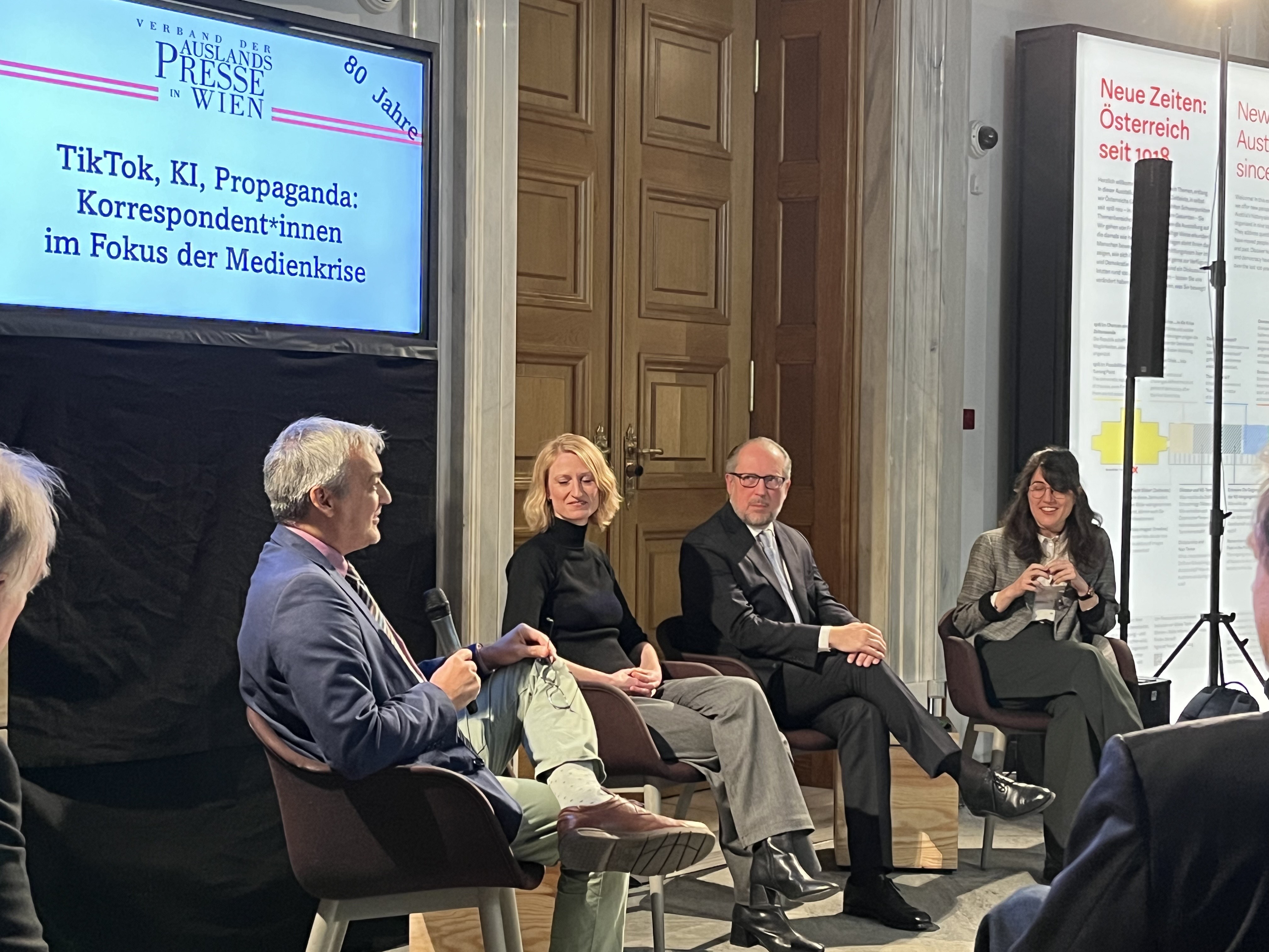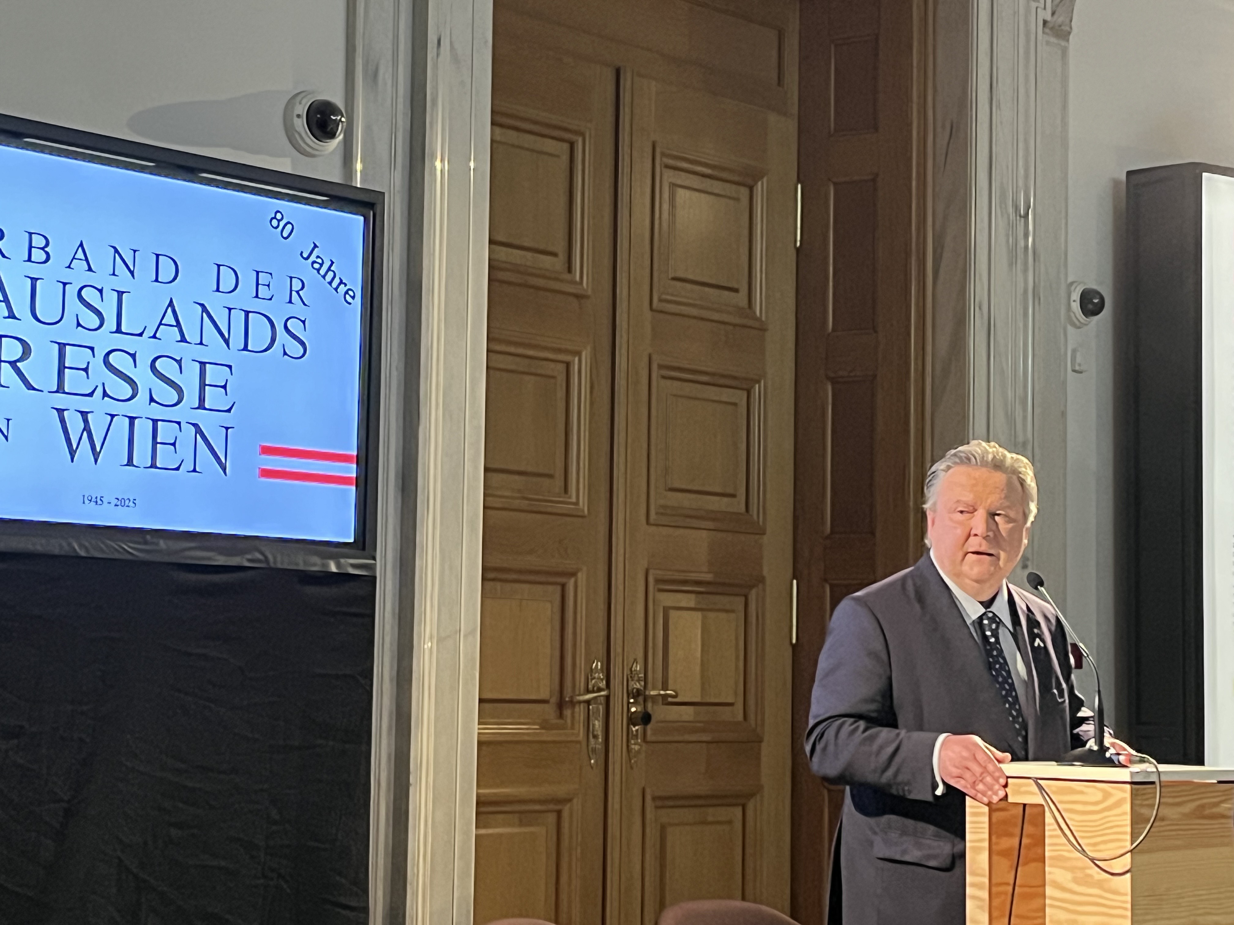 Zu einem Festakt zum 80jährigen Bestehen lud die Führung des „Verbands der Auslandspresse in Wien“ am Montag abend ins Haus der Geschichte Österreichs in die Wiener Hofburg. Präsidentin Meret Baumann, Korrespondentin der „Neuen Zürcher Zeitung“ (NZZ), betonte in ihrer Rede die Wichtigkeit, dass ausländische Journalisten „Österreich auch einen Spiegel vorhalten“. Erstmals zeigte sich dies 1949, als ausländische Korrespondenten über einen Korruptionsfall mit Hilfsgeldern aus den USA berichteten, während heimische Medien darüber nicht zu berichten wagten. Wiens Bürgermeister Michael Ludwig betonte ebenfalls die Bedeutung, dass ausländische Medien durch ihre Korrespondenten über Wien und Österreich objektiv berichten. Und der ehemalige Bundeskanzler und Außenminister Alexander Schallenberg erklärte in einer Podiumsdebatte zum Thema „Tiktok, KI, Propaganda: Korrespondent*Innen im Fokus der Medienkrise“, dass er die Rolle von Journalisten bei der Verteidigung demokratischer Strukturen immer geschätzt habe, schon als er Pressesprecher mehrerer Außenminister war. Céline Béal (Libération) erzählte über wirtschaftliche Zwänge, die Medienhäuser dazu veranlassten, teure Büros im Ausland zu schließen. Als freie Journalistin werde es immer schwieriger, die berufliche Existenz zu finanzieren. Katharina Wagner, früher ORF-Korrespondentin in Istanbul für die Türkei und den Iran, berichtete über die Schwierigkeit, die Wahrheit hinter der Flut offizieller Verlautbarungen zu finden. Der ORF unterhalte 16 Büros im Ausland, um die ÖsterreicherInnen über aktuelle Ereignisse in allen Sparten zu informieren. Der griechische Journalist Dimitris Dimitriakoudis, langjähriger Präsident des Verbands, erinnerte an die heiklen Perioden für Auslandskorrespondenten, vor allem 1986 in der Affäre um die Kriegsvergangenheit des späteren Bundespräsidenten Kurt Waldheim und später bei der Koalition aus ÖVP und FPÖ im Jahr 2000, die international für viel Kritik sorgte. „Wir Korrespondenten haben uns immer darum bemüht, das Bild Österreichs als demokratischer Staat zu vermitteln, auch als das Land von manchen Medien im Ausland als Nazi-Diktatur präsentiert wurde“, so Dimitriakoudis. In den 80er Jahren hatte der Verband den Mitglieder-Höchststand von über 600 ständigen ausländischen Korrespondenten erreicht. Heute seien es nur mehr hundert. Aber noch immer biete der Verband seinen Mitgliedern Hilfe bei der Akkreditierung und Zugang zu offiziellen Stellen an. Es werden laufend Pressekonferenzen und auch Pressefahrten in die Bundesländer organisiert. Bis jetzt hätten alle Bundeskanzler und Außenminister die Einladung zu Gesprächen gerne angenommen. Nur die FPÖ habe dem Verband ausgerichtet, dass die Partei nur an Kontakten mit heimischen Medien interessiert sei, berichtete Verbandspräsidentin Baumann.