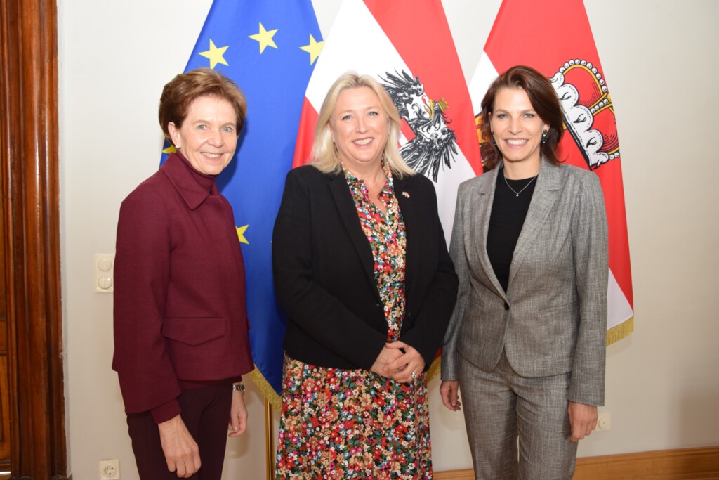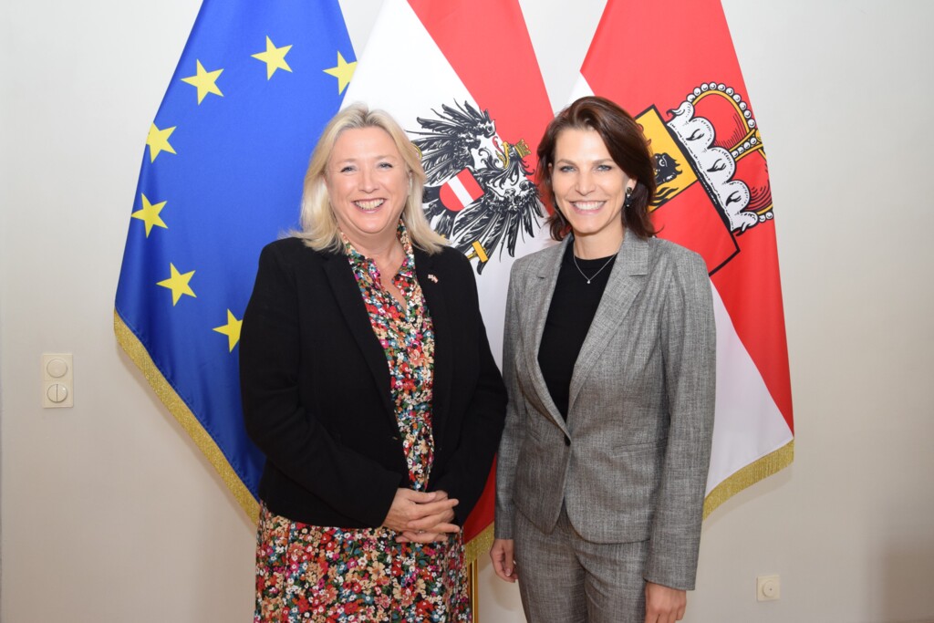 Etwas mehr als 1.000 britische Staatsangehörige leben in Salzburg. Vertreten werden sie unter anderem von Botschafterin Lindsay Skoll. Sie übernahm das Amt vor vier Jahren. Heute stattete sie Landeshauptfrau Karoline Edtstadler und Landtagspräsidentin Brigitta Pallauf im Chiemseehof einen Arbeitsbesuch ab.