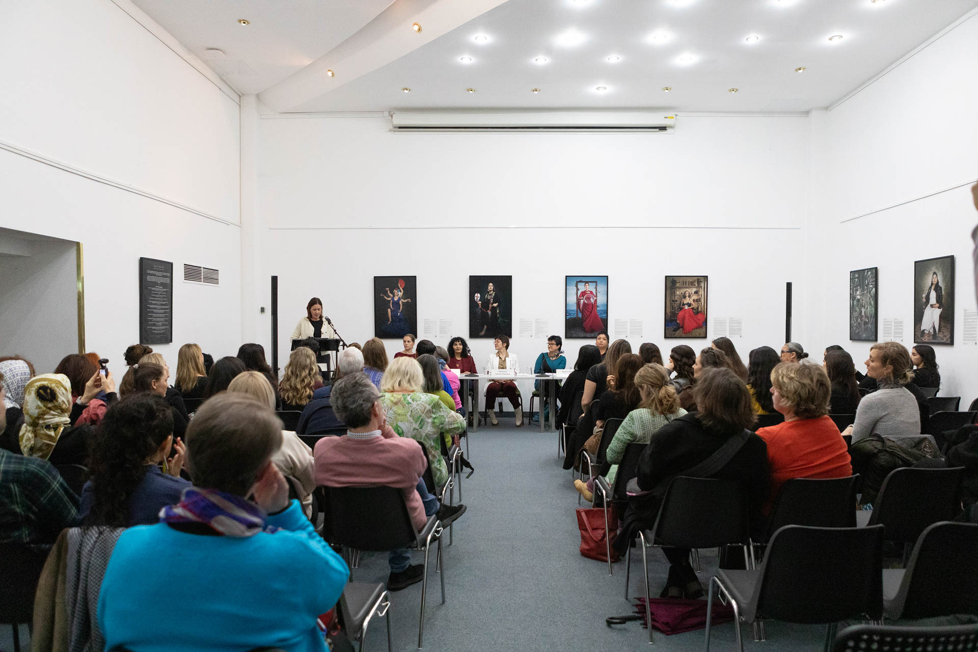 Ein zentraler Bestandteil der Eröffnung war die Podiumsdiskussion „Gewalt sichtbar machen. Resilienz stärken. Räume schaffen“. Katharina Kräftner (UN Women Austria), Saya Ahmad (Bezirksvorsteherin Alsergrund), Hanife Ada (Verein Yetis Batis) und Birgit Koch (Kunsttherapeutin, Hemayat) diskutierten über strukturelle Ursachen von Gewalt an Frauen, die gesellschaftliche Verantwortung und notwendige Veränderungsprozesse. Moderiert wurde das Gespräch von der Sozialwissenschaftlerin und Aktivistin Marcela Torres Heredia.